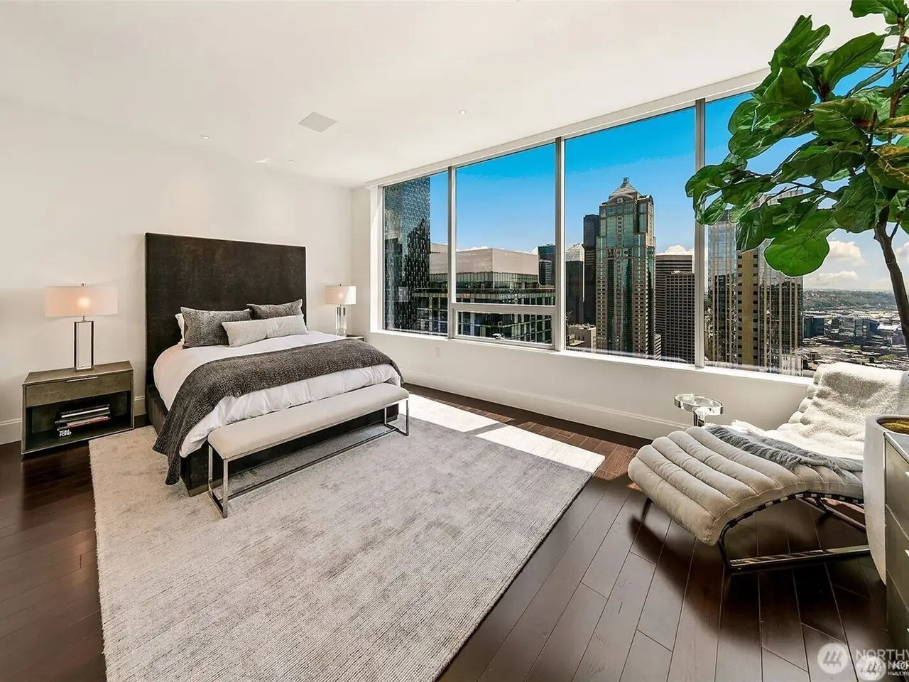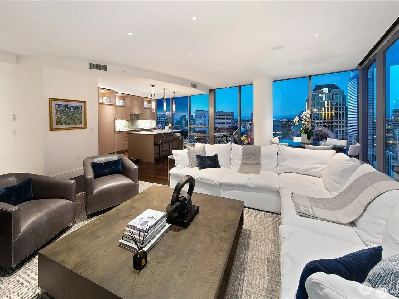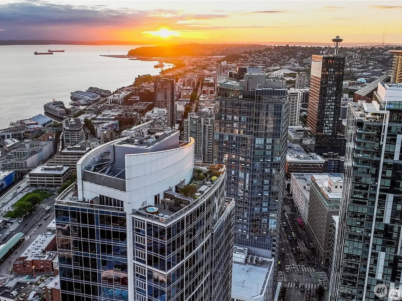 PENTHOUSE perfection - Perched atop the southeast corner of one of Seattle's most coveted buildings, this exceptional two-level penthouse offers a rare blend of uncompromising luxury, privacy, and awe-inspiring views. Wrapped with floor to ceiling windows this home is flooded with natural light. A sky-high sanctuary capturing the very essence of PNW living, views stretch across the Sound to the Olympics, including views of the Seattle Great Wheel. Timeless elevated finishes through out the home. Arguably the best PRIVATE rooftop deck in the city, includes kitchenette, beverage center, kegerator, Jacuzzi, outdoor TV & speakers, gas fireplace, built-in Wolf BBQ. World class building & location.PIKE PLACE Market is you next door neighbor-2parking