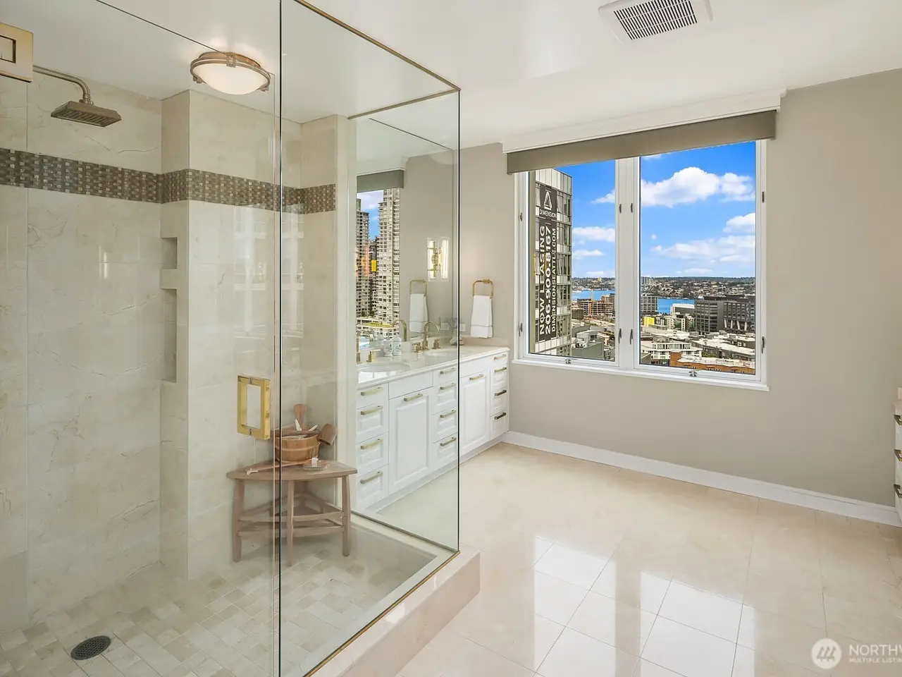 Contemporary design fuses with iconic views at Seattle Heights. Nestled above the vibrant Downtown core, the spacious penthouse composes one-half of the 25th floor. Formal living and dining unite with warm hardwood floors. A generous kitchen serves as the home's anchor with bright white cabinets, slab counters and brass fixtures thoughtfully selected to inspire culinary feats and effortless entertaining. Tranquility abounds in the primary suite with a private patio, 180-degree views, spa-like five-piece bath, and walk-in closet. An unrivaled suite of amenities includes 24-hr doorkeepers, concierge, fitness center, indoor pool and spa, rooftop terrace, and recreation space. Discover resort living within reach of the iconic Pike Place Market.