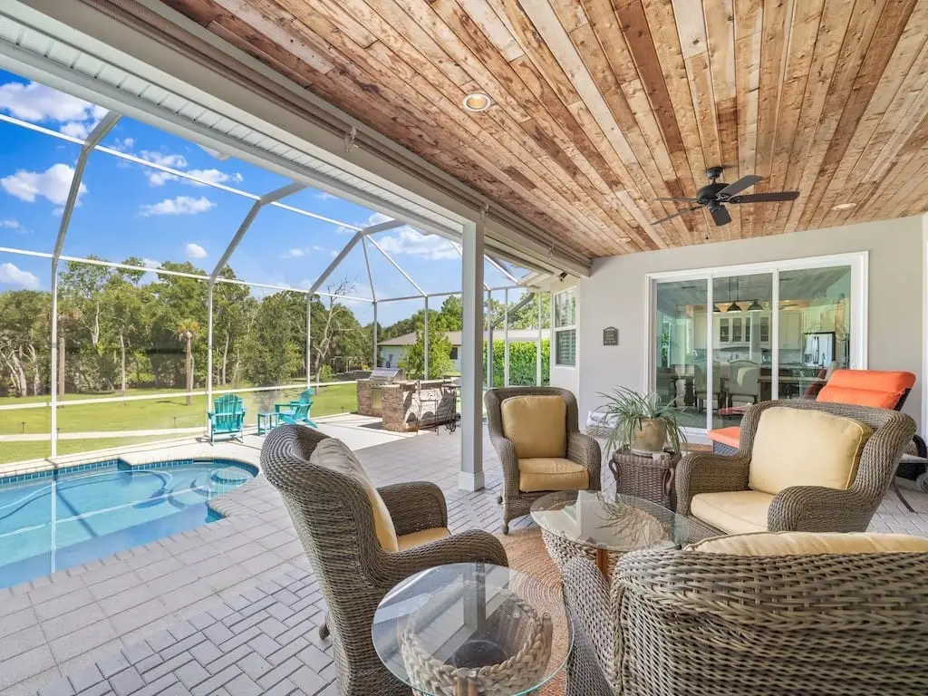 Majestic Florida home on1.22 acres along the peaceful Sebastian River w/private dock. Enjoy a crystal clear pool, spa, firepit, summer kitchen, & lighted paver patio w/ screen enclosure. This 4BR, 3.5BA, 3,884 sq. ft. home features formal living & dining, family room, office/den, laundry room, & 3-car deep garage w/epoxy floors. Recent updates include roof, impact windows, doors & sliders, A/C, pool pump, lighted paver walking path to dock, quartz counters in Laundry & Owner Bath, Refrigerator & 500-gal propane tank. A rare blend of luxury, privacy, & timeless riverfront charm!