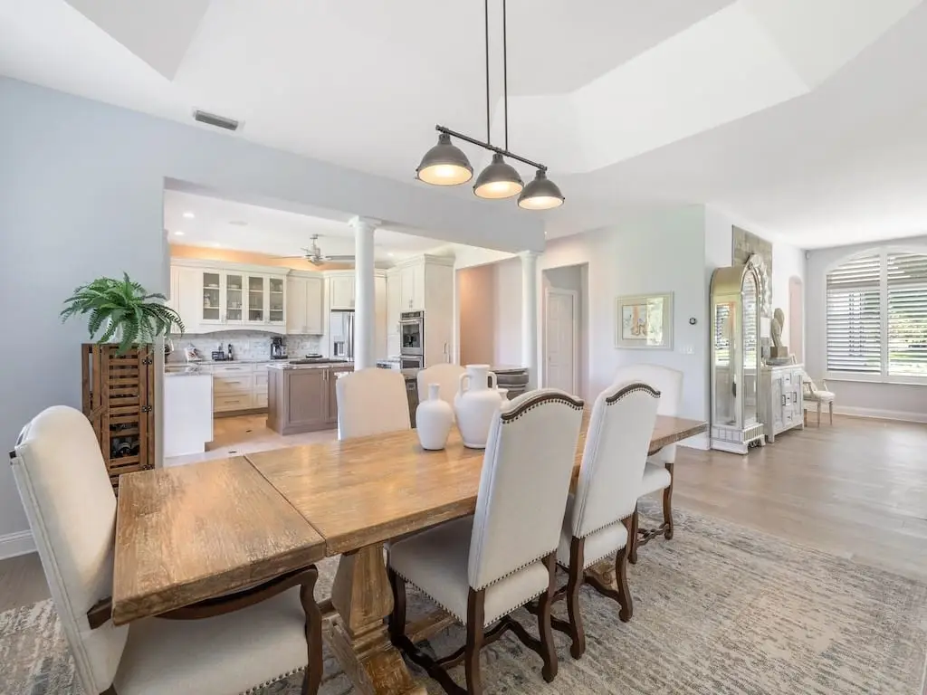- Formal living and dining areas