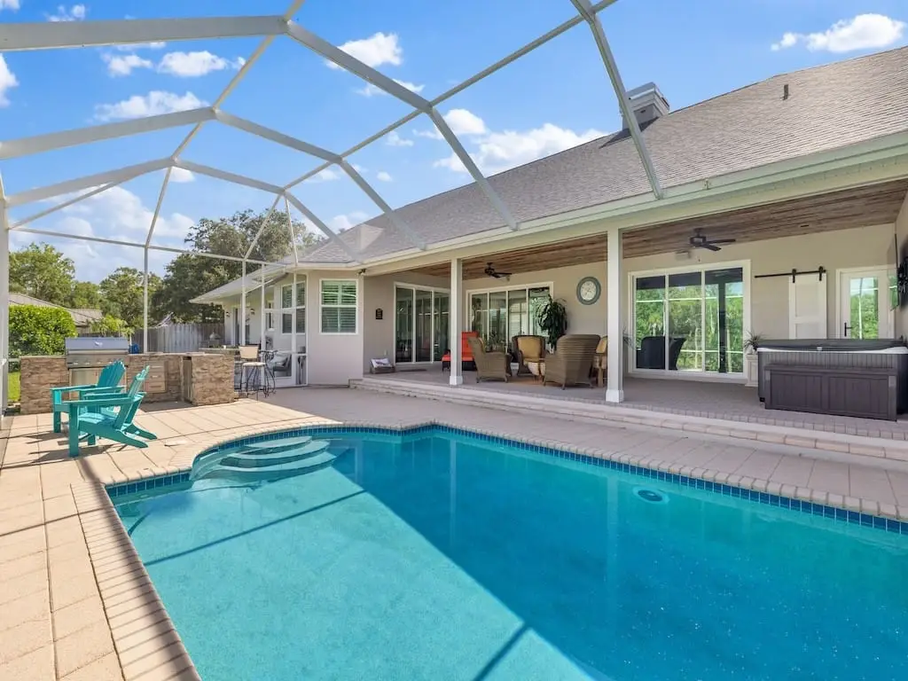 - Crystal clear pool and spa with firepit