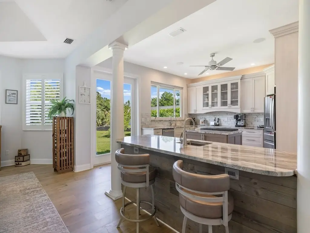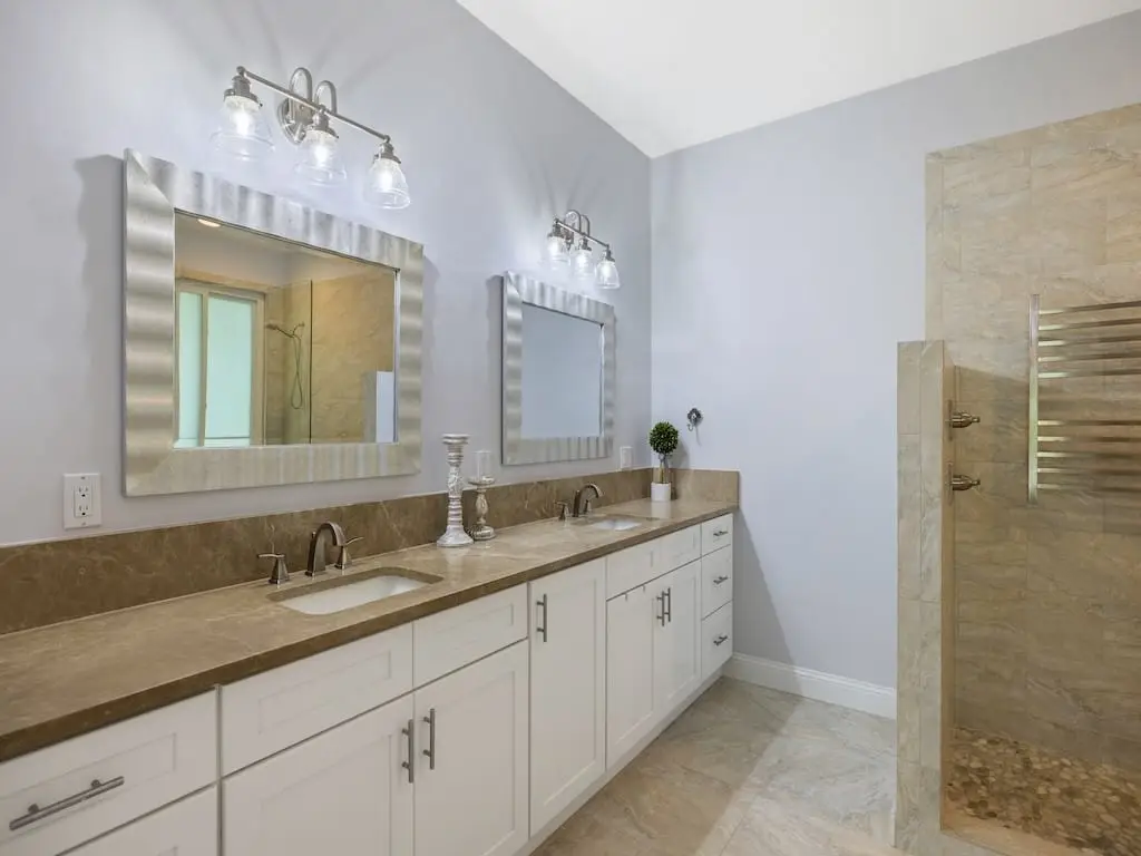 - Quartz counters in laundry and owner bath