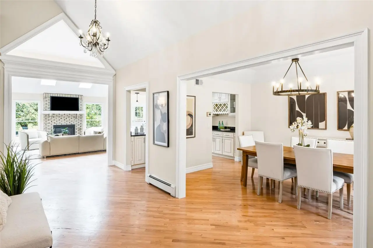 Nestled on a private one+ acre lot and framed by mature landscaping and water views 2 White Pine Lane offers an incomparable lifestyle opportunity in a peaceful setting surrounded by natural beauty. The picturesque waterside community of Poquott offers residents beautiful stretches of private beaches and the prime location of this home ( steps away from Van Brunt Manor Beach) makes it the perfect location to enjoy your own private beachfront retreat and numerous waterfront recreational activities. This well-built Farm Ranch has great curb appeal that is highlighted by colorful plantings, a covered front porch, side entry Carraige style garage doors, white picket fence and cultured stone accents. A spacious & gracious entrance foyer welcomes you to the sun filled interior and the unique floor plan offers a great combination of formal and open concept living spaces. There is also a main level primary suite with a brand new & beautifully renovated spa like bathroom, a large updated eat in kitchen overlooking backyard where you can enjoy relaxing by the pool or entertaining family and friends on the lovely decking overlooking park like grounds. Additional amenities include oak flooring, recessed lighting family room with fireplace, updated bathrooms, second story loft area overlooking main living space and more! Additional Village amenities include deep water mooring and beach rights, private security, community dock, tennis, parks, playgrounds and year-round community events. Enjoy sunny days at the beach and magical sunsets at the dock, a priceless lifestyle opportunity awaits you!