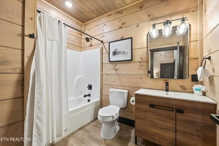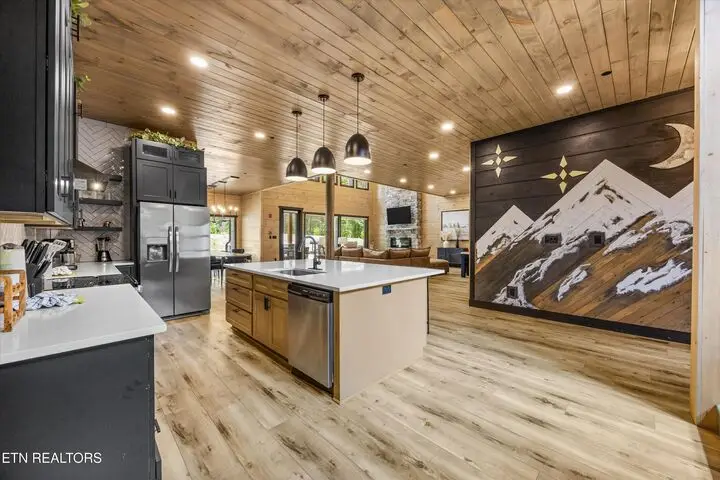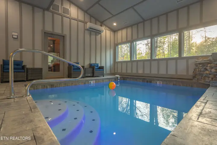 Discover your perfect creek side mountain retreat. Stunning two-story Modern new construction home. Located just moments from the parkway, this property offers convenient access to Sevierville, Pigeon Forge, Gatlinburg, and the world-renowned Dollywood, making it ideal for both full-time living and vacation getaways. Key Features: •Spacious Living: 4,350 Sq' 4 well-appointed bedrooms and 4 full bathrooms provide ample space and comfort for family and guests. . Comfortable accommodations: the home is designed to sleep 16 to 18 guests comfortably perfect for large families or vacation rental. •Entertainment Paradise: Enjoy movie nights in your private theater room, perfect for creating unforgettable experiences. An indoor pool allows for year round enjoyment. •Chef's Dream Kitchen: An oversized kitchen with modern appliances and abundant counter space ensures cooking and entertaining are a joy. •Cozy Ambiance: Gather around the inviting fireplace that serves as the focal point of the main living area. •Natural Beauty: A serene creek borders the subdivision, offering a peaceful outdoor experience and beautiful views and walking trails. •Low Maintenance: Built with durable hand hewn looking concrete siding. This home ensures easy upkeep for years to come. This property seamlessly combines luxury, convenience, and natural beauty. Don't miss this opportunity to make it your own and enjoy all that the Smoky Mountain area has to offer!
