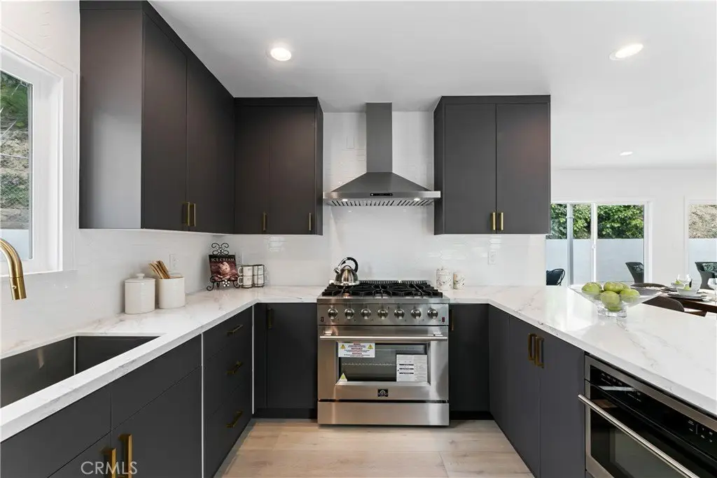 Welcome to your dream home, South of the Boulevard in Sherman Oaks! This beautifully just completed modern residence offers three spacious bedrooms and four luxurious baths, all enhanced by high-end finishes. Step inside to discover an open floor plan adorned with elegant laminate flooring, seamlessly connecting the living, dining, and kitchen areas. The en suite primary bedroom provides a serene retreat with its sophisticated design and ample closet space. Enjoy the convenience of an attached direct entry garage and an oversized circular driveway, making parking a breeze. Relax and entertain in your private oasis featuring a sparkling pool and a cozy fireplace in the living room and outside on the patio. Laundry on the main floor adds to the home's practical charm. Nestled in a walkable neighborhood, you're just moments away from premier shopping and dining options. Plus, with easy access to the 101 freeway, your commute will be a breeze. This stunning home is a perfect blend of modern luxury and everyday convenience. Don't miss out on this exceptional opportunity!