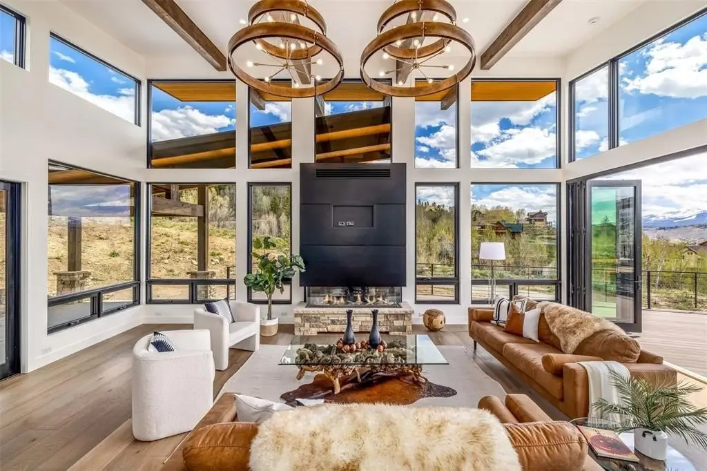 This new contemporary masterpiece has been thoughtfully site-planned to capture some of the most inspirational views available in today's market. The clean wooden beams support a modern roofline that gently transitions upward to frame the Tenmile and Gore Ranges through expansive walls of windows. The artful design of the residence boasts an open floor plan with exceptional visual connectivity between spaces, perfect for the most intimate or the most social of gatherings. The stunning kitchen is outfitted with Monogram and Dacor, bringing in the latest in gourmet technology. The grand suite is dedicated to its own private wing off the main level for the utmost convenience. The owner will enjoy a sumptuous sanctuary with a modern-styled bath and inspiring sunrises that will start each day with purpose. The gracious deck off the great room will surely accommodate all of your friends and family, providing a perfect spot to toast to the day and enjoy breathtaking sunsets. The lower level of the home anchors the "fun zone" enjoyed by all ages, featuring a large family room and entertainment area served by a walk-behind bar. The enormous three-car garage has room for your Sprinter Camper Van and ceilings high enough to install lifts for your classic cars, rafts or drift boats. There is also a structurally isolated elevator shaft, giving the buyer the option to install an elevator in the future.