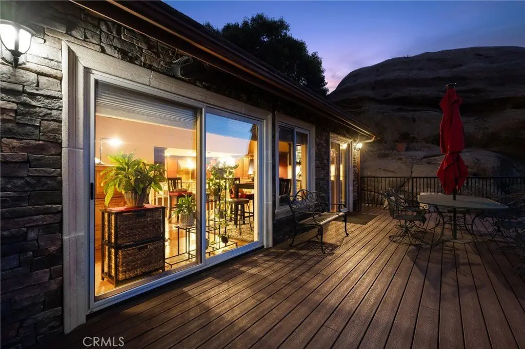 Calda e accogliente casa personalizzata a Santa Susana Knolls con vista magnifica! Questa splendida e unica casa personalizzata è stata progettata per massimizzare la vista mozzafiato sull'incantevole quartiere di Santa Susana Knolls. Entrate in un luminoso soggiorno impreziosito da un camino rustico e con vista sulla sala da pranzo, sulla cucina gourmet e sul soggiorno. Un'area salotto appartata, ombreggiata dal maestoso masso, offre un momento di pace e meditazione per rilassarsi e distendersi. La cucina ristrutturata è il sogno di ogni chef, con elettrodomestici in acciaio inox tra cui una cucina a gas di grandi dimensioni, frigorifero, compattatore per rifiuti, microonde, cantinetta per vino e cassetto scaldavivande. I ripiani in granito, le lampade a sospensione, un paraschizzi personalizzato e una graziosa finestra con vista sul giardino sopra il lavello esaltano la bellezza di questo cuore della casa. L'ampia dispensa con cassetti estraibili, i mobili con chiusura automatica con dettagli di design personalizzati e l'isola centrale con posti a sedere aggiuntivi aggiungono pratici vantaggi apprezzati da tutti. Lo studio/soggiorno è a pochi passi e offre un angolo bar e uno spazio molto flessibile per un ufficio, una sala multimediale, una sala giochi: a voi la scelta! Porte scorrevoli in vetro vi danno il benvenuto sull'ampio terrazzo posteriore, con una vista mozzafiato in ogni direzione. Luogo ideale per intrattenere gli ospiti, il terrazzo offre spazio per sedersi, ballare o giocare. Tornando all'interno, le 2 spaziose camere da letto secondarie dispongono ciascuna di un grazioso balcone con una splendida vista sulle montagne e sul tramonto. Il bagno in comune è stato ristrutturato con mobili su misura, ripiani in pietra, doppi lavandini e vasca da bagno. La suite principale si trova in fondo al corridoio, offrendo maggiore privacy, un'ampia cabina armadio, un bagno principale ristrutturato con una cabina doccia di grandi dimensioni e una vista serena sulle montagne. Una serie di porte scorrevoli in vetro conduce a un'area relax privata. Al piano inferiore si trova uno spazio dalle molteplici possibilità, con ingresso indipendente, bagno completo, area aperta e una stanza aggiuntiva. Ideale come suite per i suoceri, alloggio per la domestica, ufficio, studio d'arte, biblioteca o sala musica. Anche la lavanderia e il condotto per il bucato si trovano al piano inferiore, con ulteriore spazio di stoccaggio. Uscite in un grazioso giardinetto e poi, dietro l'angolo, raggiungete la spa con le sue acque frizzante, una pompa di recente ricostruzione, un impianto di riscaldamento potenziato e una vista mozzafiato. Arretrato rispetto alla strada, troverete un ampio giardino anteriore e un parcheggio per 6 auto o spazio per un camper. Sebbene il Susana Knolls sia un complesso rurale con una ricca fauna selvatica, siete a pochi minuti dall'autostrada 118, dalla stazione ferroviaria e dai ristoranti e negozi della Simi Valley.