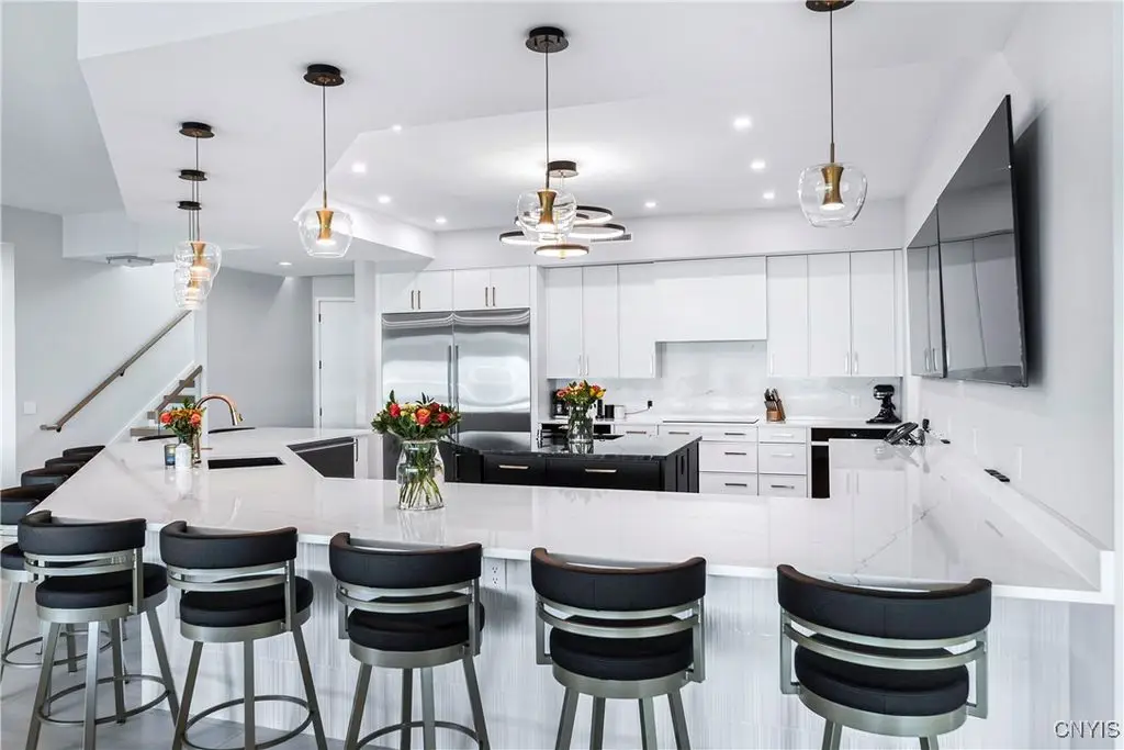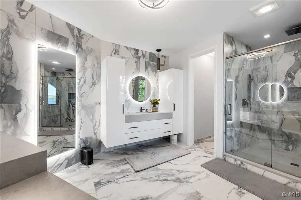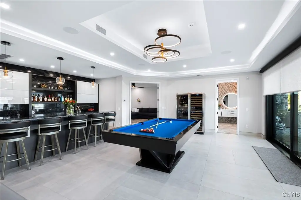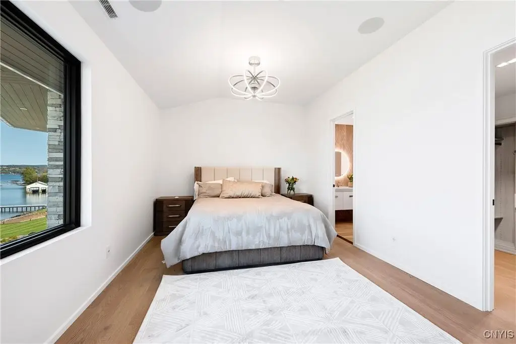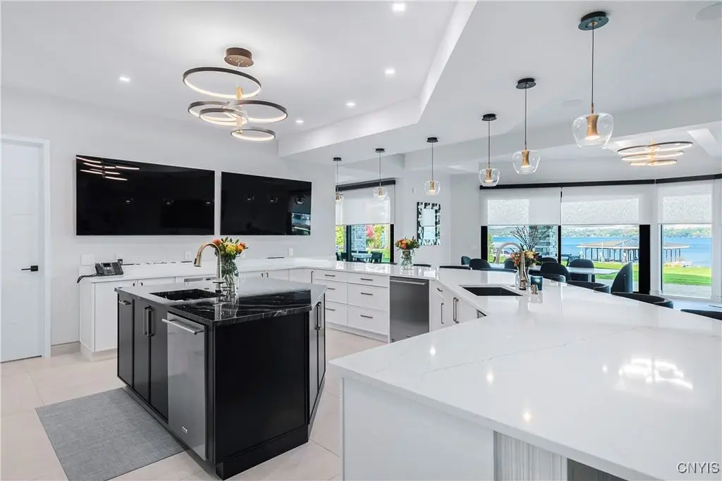 Wow, prepare to be amazed by this stunning custom-built contemporary home situated on 200 feet of pristine lakefront on Skaneateles Lake. With a fully developed waterfront perfect for all your lakeside and boating activities, this newly constructed "Mansion" offers luxury living at its finest. Featuring 9 bedrooms, 14 baths, 2 Chef's kitchens, a guest suite, and a full glass elevator accessing all levels of the home, no detail has been overlooked. State-of-the-art technology including Savant WIFI controlled custom blinds and lighting scenes, along with top-notch infrastructure, ensure convenience and comfort. Boasting over 12,000 square feet of living space with an adaptable floor plan, each bedroom comes complete with its own en-suite bath and custom California closets. The home exudes both space and privacy, providing a truly luxurious living experience. Located in the prestigious Skaneateles School District and just minutes from the charming Village of Skaneateles, this home offers an extensive list of impressive features and amenities. Don't miss the opportunity to make this incredible property your own.