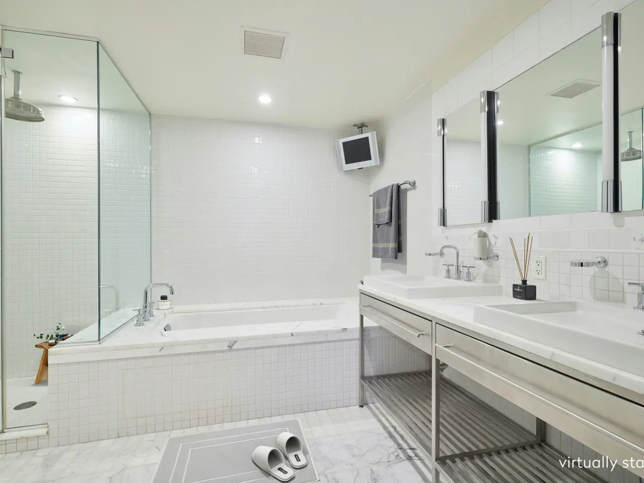 Enjoy soaring 13-foot ceilings in this 1,742sqft 2 bedroom, 2 bath Condo loft on one of SoHo's premiere cobblestone streets. The oversized square living room features an exposed brick wall, floating gas fireplace, 4 soaring windows overlooking Greene street, a spacious pantry, and is open to a well-appointed kitchen with Sub-Zero, Miele, and Fisher & Paykel stainless steel appliances. Down the bedroom hallway you'll find a GE washer and dryer, full bathroom, and storage closets. The generously sized primary bedroom has a private dressing room and en-suite 5 piece marble bathroom. Apartment 2A comes with zoned central air and a storage unit in the basement. 109 Greene Street is a boutique condominium with a full-time doorman and keyed elevator access. Building Name: The Lofts of Greene Size: 2 bedrooms, 2 bathrooms Sq Feet: 1,742 Ceiling Height: Over 13" Fireplace: Yes, Gas Air conditioning: Yes, Central Laundry: washer and dryer currently in the apartment (also machines in the basement) Storage: Yes, in the basement Gym: No Elevator: Yes Neighborhood: Soho Doorman: Full Time Superintendent: Yes, full time (but not live in) Building Allows: Corporate ownership, pied a terre, 90% Financing, Pets