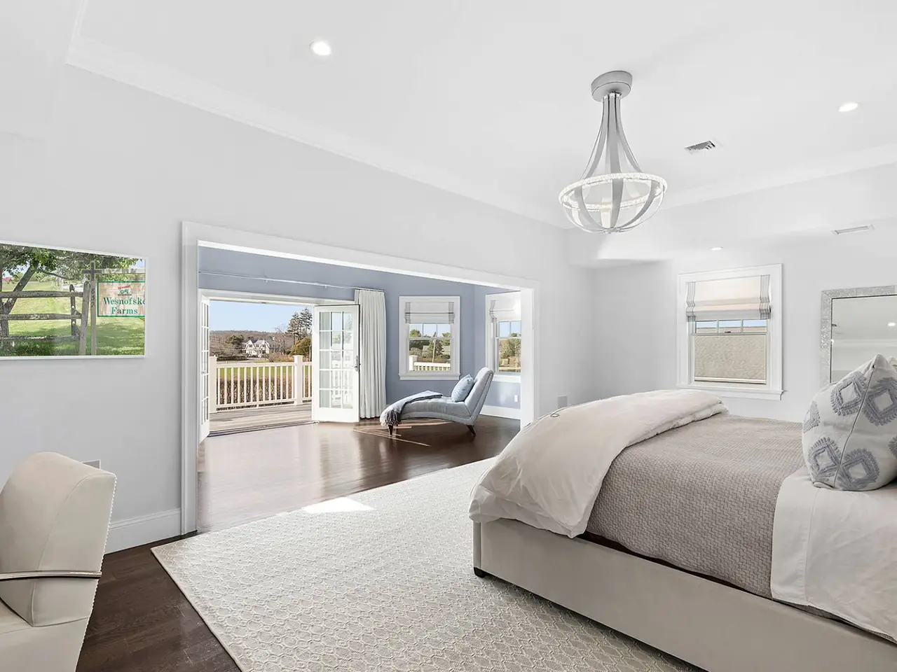 Luxurious master bedroom with balcony