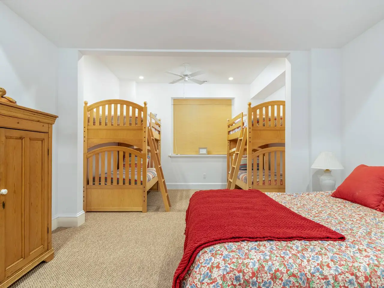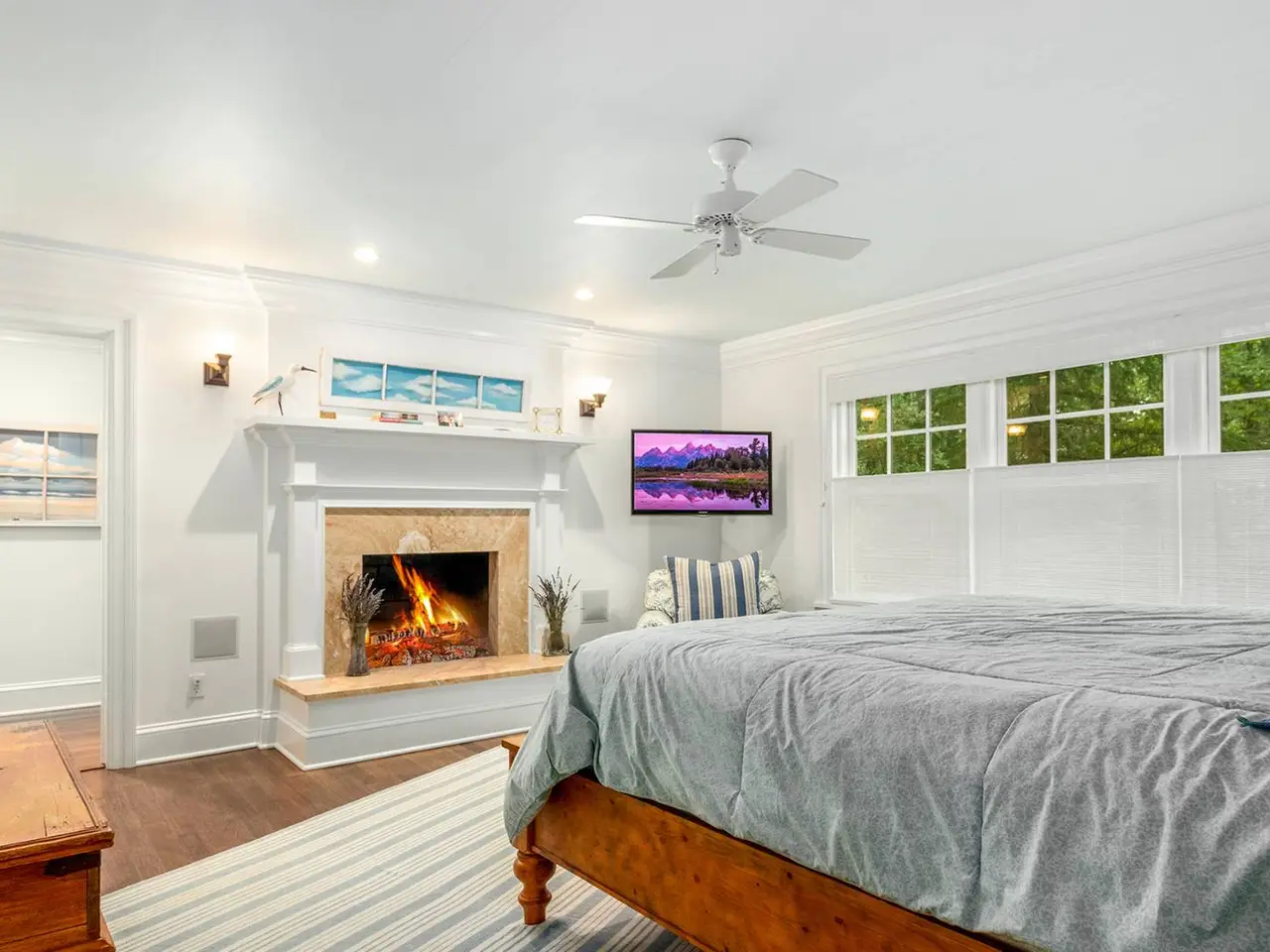 This beautiful home offers great style and large open space and all amenities. Open cathedral living room with fireplace, Huge kitchen with center island and stools for the 'in the kitchen parties', open dining room with fireplace, screened in porch for summer entertaining. The kitchen, dining room, living room and screened porch all connected. All very large public rooms plus a large first floor master bedroom with fireplace. ensuite , with two additional bedrooms, second floor large master bedroom with fireplace ensuite, with two additional bedrooms, finished basement with entertaining area, with flat screen TV and bar area, two bedrooms and two baths. Cozy, private, nicely furnished. The exterior has a salt water pool and very private grounds. A most enjoyable atmosphere. Listing ID: 738205