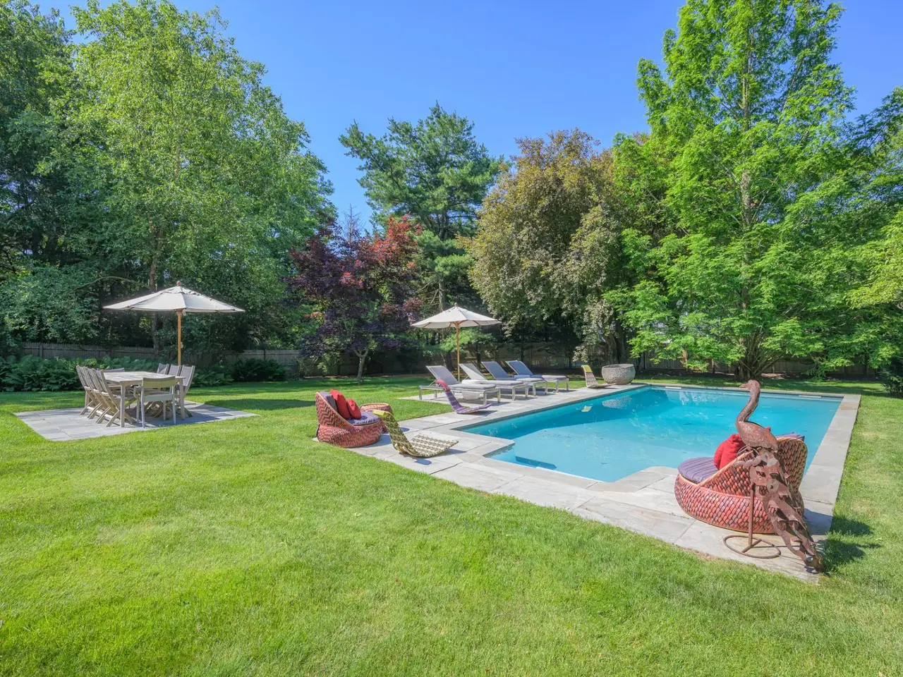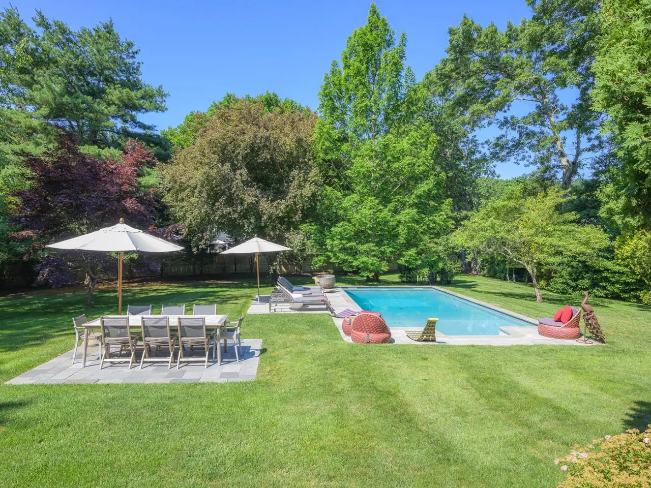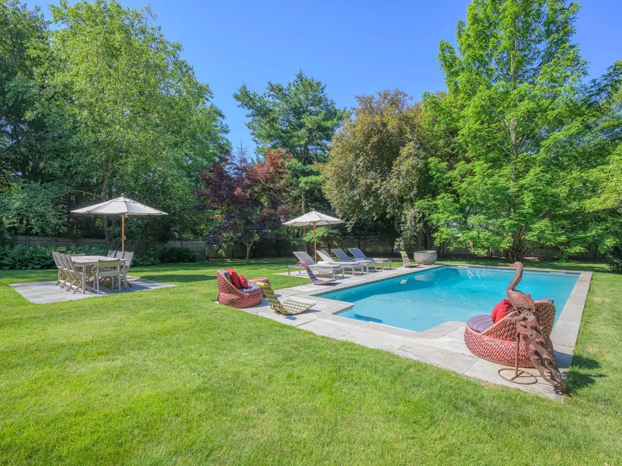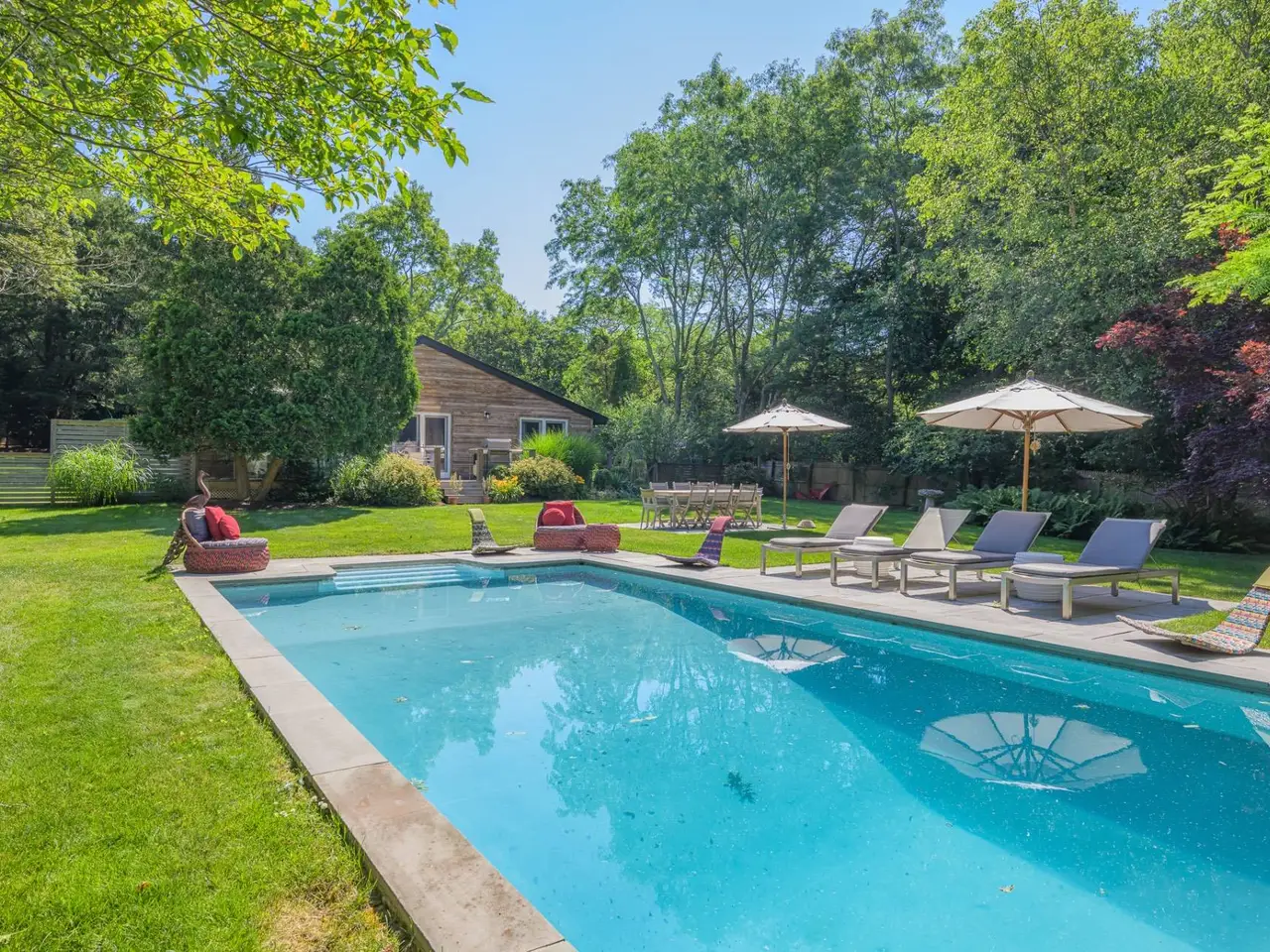 A rare opportunity with great charm in Southampton, sits this updated and well-appointed contemporary with a separate accessory apartment. Conceptualized by world-renowned designer, Elsa Soyars, the single-story four bedrooms and two full baths main house offers charm, style and timeless elegance on 1.03 acres. The bright foyer with vaulted ceilings, opens to a lovely living room and dining area with a wood-burning fireplace. The open floor plan includes a stylishly-renovated kitchen with French doors leading to the outdoor space, which is secluded and tranquil, featuring a deck overlooking the heated swimming pool, multiple entertaining areas and a broad lawn with beautifully mature landscaping. The cottage offers an additional approximately 600 square feet of living space, which has two floors and separate from the main house, has a renovated kitchen and full bath, central air conditioning with a second floor studio, as well as a spacious private outdoor patio and parking area. This gem presents a great potential investment or an opportunity to create a serene Hamptons retreat, conveniently located just outside Southampton Village and world-class shopping, restaurants, bay and ocean beaches. Listing ID: 914528