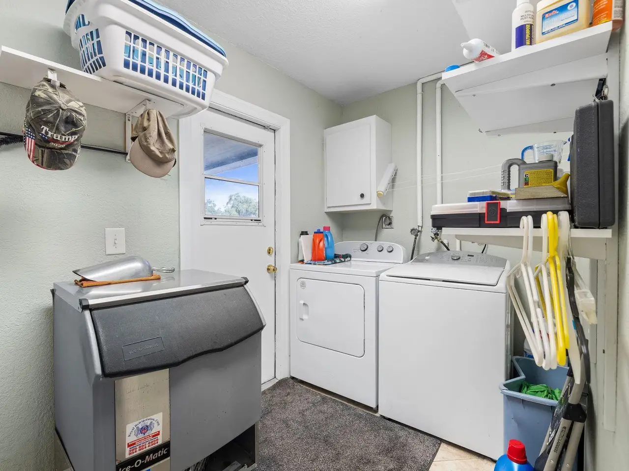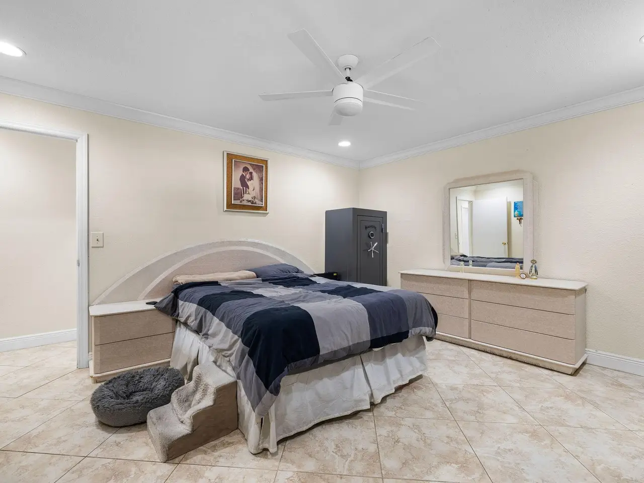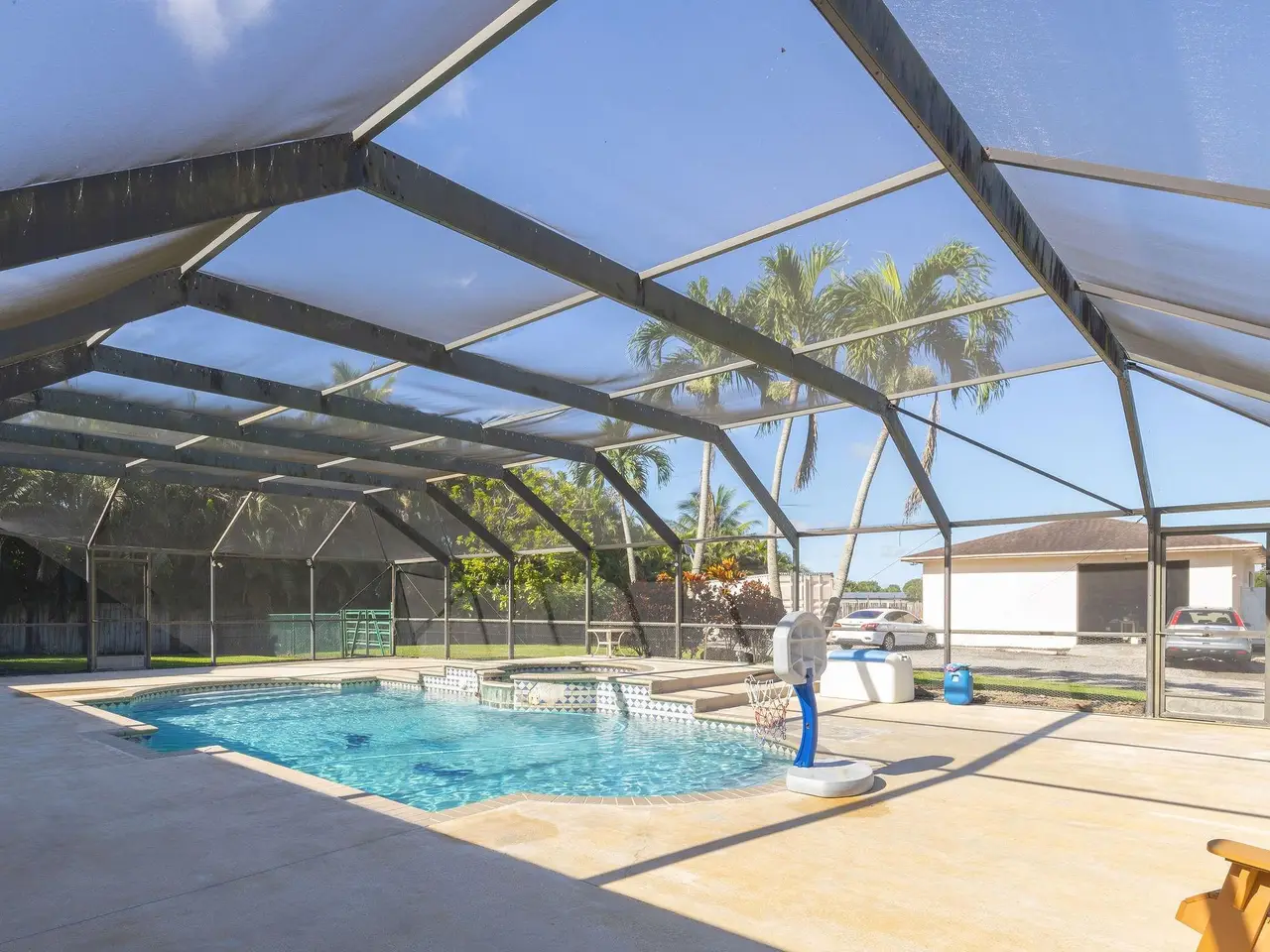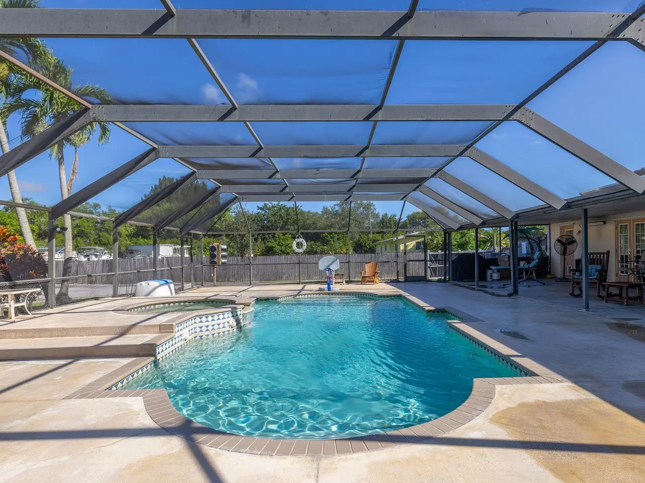 Versatile 4-bed, 3-bath residence designed for comfort and flexibility. Main home offers 3-bed, 2-bath, while the attached 1-bed, 1-bath separate living quarters include full kitchen, living area, private entrance, separate driveway, and direct pool access—ideal for multi-generational living or rental income. Energy-saving features include whole-home solar panels & a 120-gallon solar water heater, with a generator powered by a 500-gallon propane tank providing backup power for entire home. Roof installed in 2018 and a 5-ton Trane AC installed 2019. Screened-in patio, heated pool, & a sprinkler system fed by a 200-ft deep well with Goul pumps. 1,200 sq ft/6-car garage with water & electric, with a 2,500 sq ft concrete pad. Ample space for cars, projects, hobbies, or a home-based business.