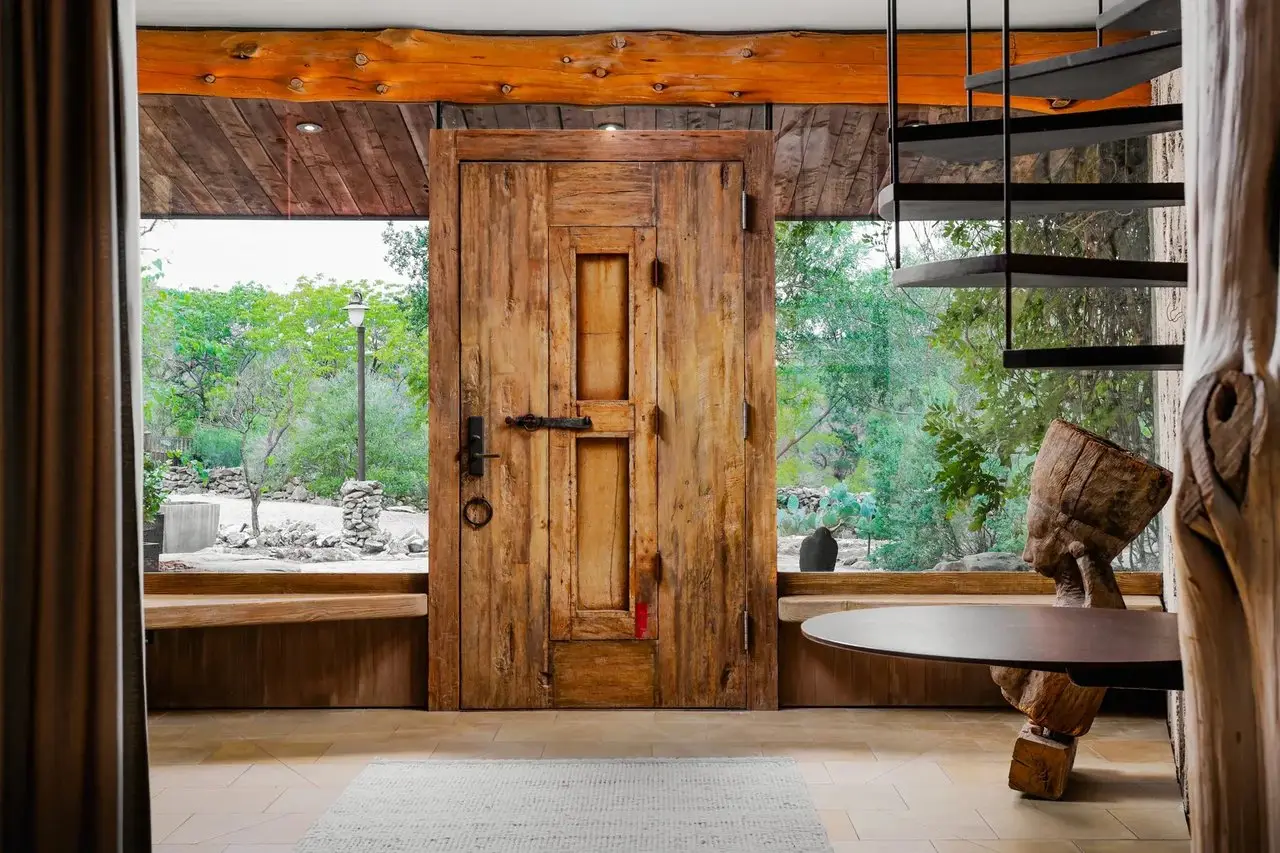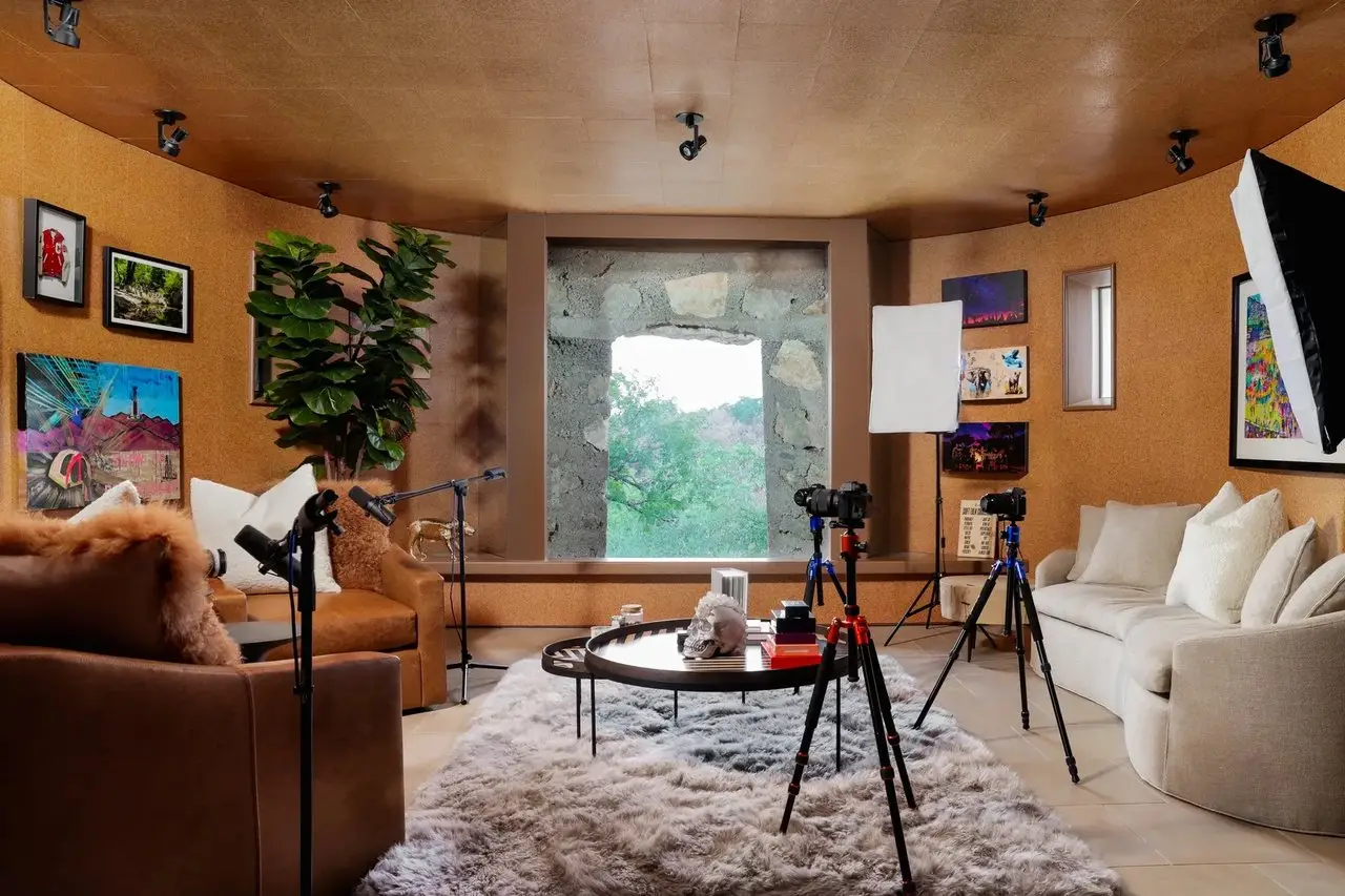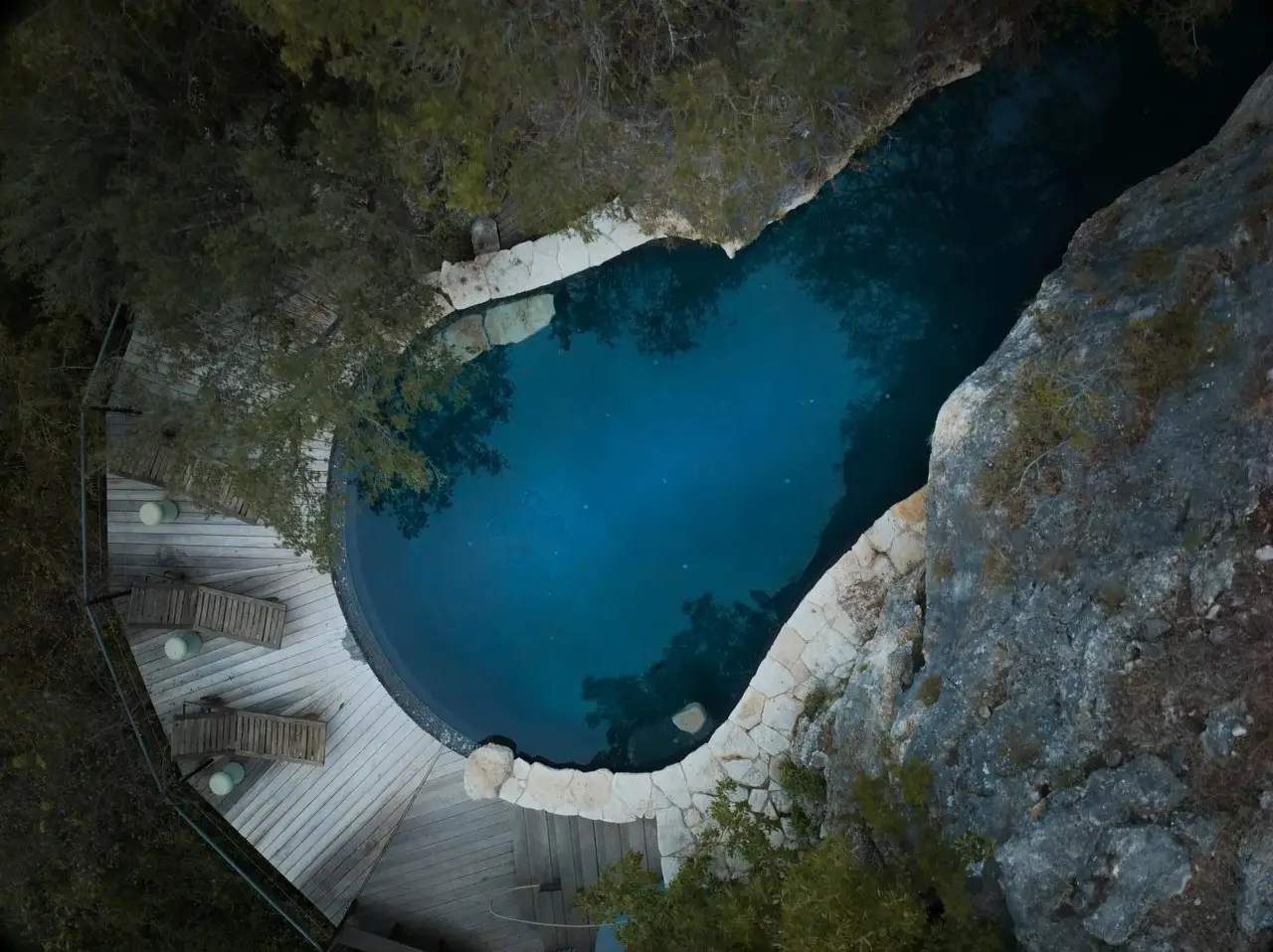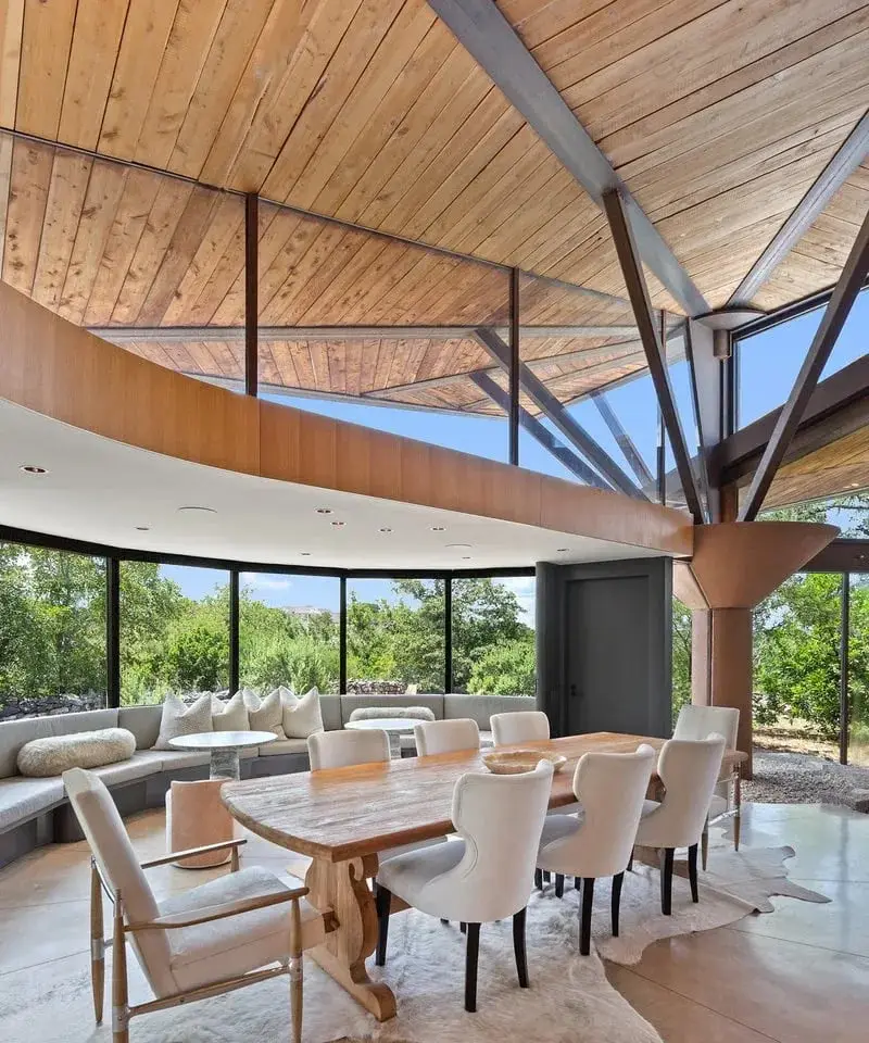 Architecturally Significant Compound in Spicewood | Once-in-a-Lifetime Retreat in Spicewood Once in a lifetime chance to own this culturally and architecturally significant home in the Hill Country, designed by John Covert Watson, an intern of Frank Lloyd Wright’s. Set on 30 stunning acres in Spicewood, The Retreat at Lick Creek Lodge is a one-of-a-kind compound offering the architecture lover the opportunity to be surrounded both by exquisite design and natural beauty. Defined by its hyperbolic parabola roof which resembles a splayed deck of cards, this home is striking inside and out. The roof creates a semi-circular motif that is repeated throughout the house, from the entry rotunda to the arching wall of glass that spans the living room and looks out to the tangle of nature enveloping the home. Interiors Celebrating Local Materials | Memorable Entertaining and Private Hideaways The interior is a celebration of the Texas Hill Country, making use of locally harvested cedar and nearby-quarried desert masonry contrasted with concrete, steel and glass. Cork floors plus rich oak and maple cabinetry add warmth and richness. An extraordinary entertaining space, the living room arches around a limestone fireplace and looks out over the rolling hills; it has hosted galas and concerts when not serving as a private retreat. The floorplan offers many unique hideaways, from a secret-door-accessed office to a serene meditation room. Roam 30 Acres with a Grotto Pool | Miles of Views with Resort Amenities The 30-acre property is set on a cliff over the Pedernales river and overlooks steep ravines and miles of green hills. Step down the hillside to the grotto pool, half-hidden in a rocky crevasse, where you can swim as if you were on a desert island. The ultra-private compound includes a large guest house and office at the front of the property; you will wend your way along gravel paths and native landscaping to reach the main house. Just 40 minutes from Austin, this property offers multiple uses, from a close-in family retreat to executive escape or small resort rental. Regardless, this property will continue to fascinate, inspire and restore its owners for years to come.
