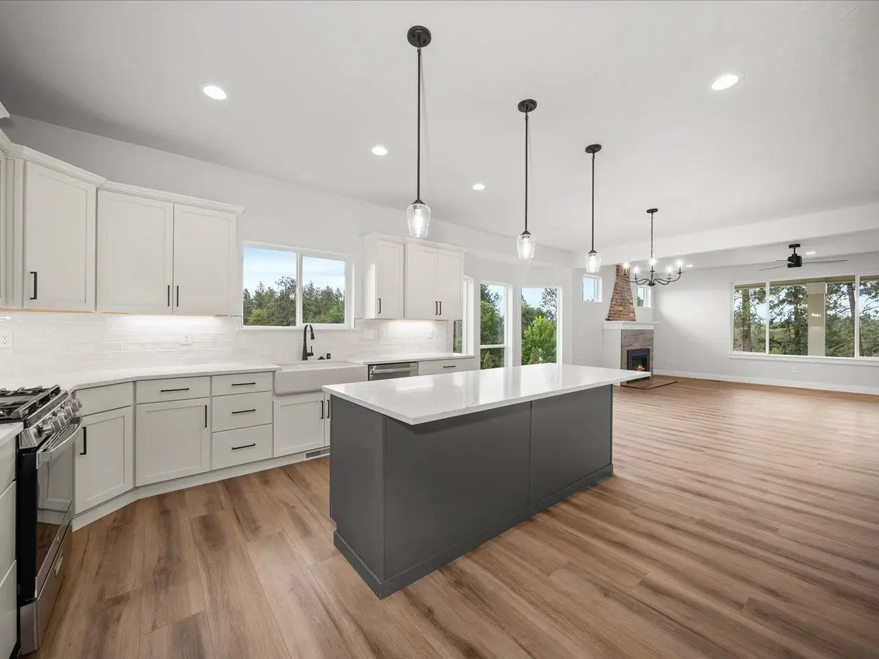 New white kitchen with huge island