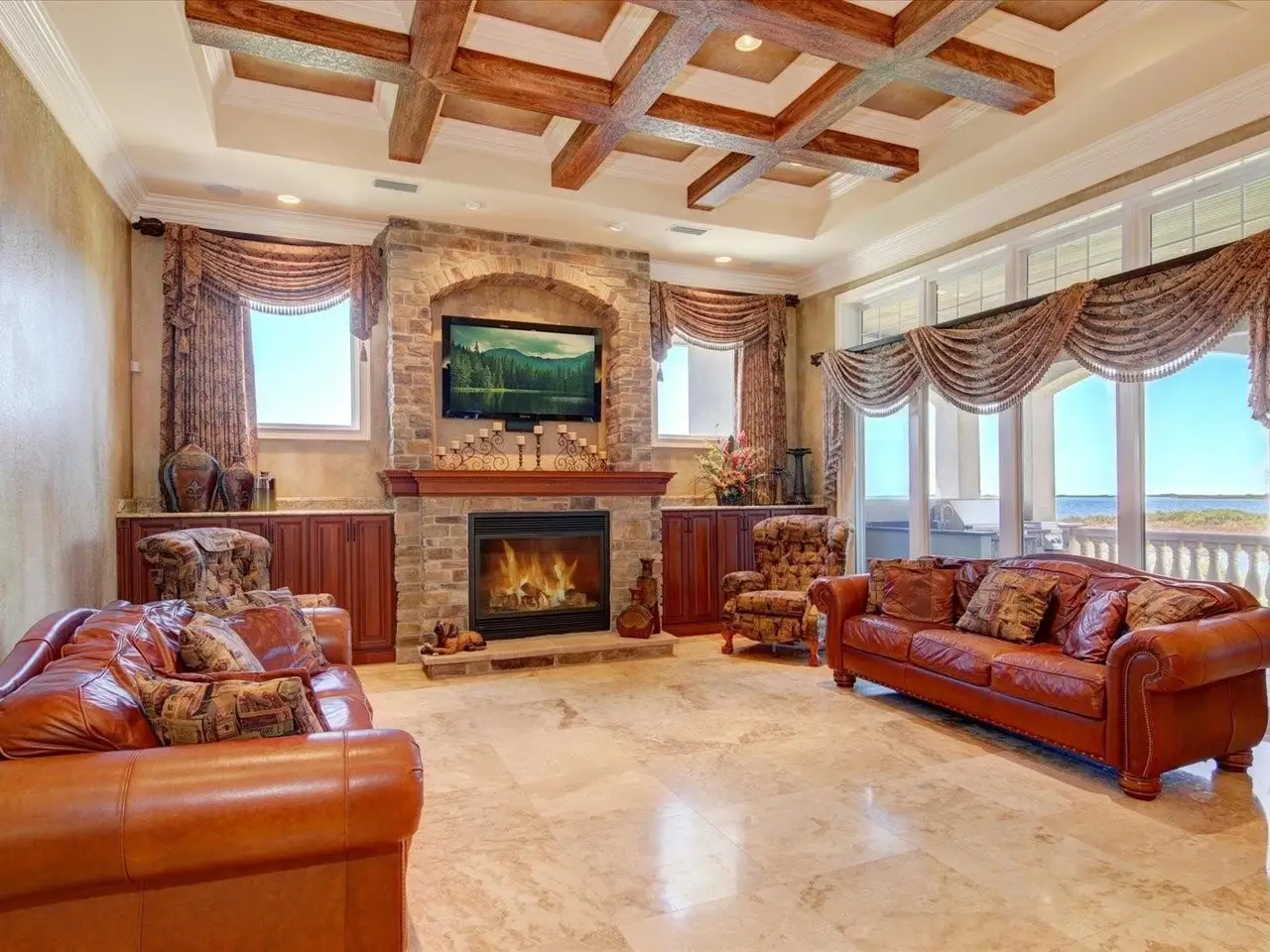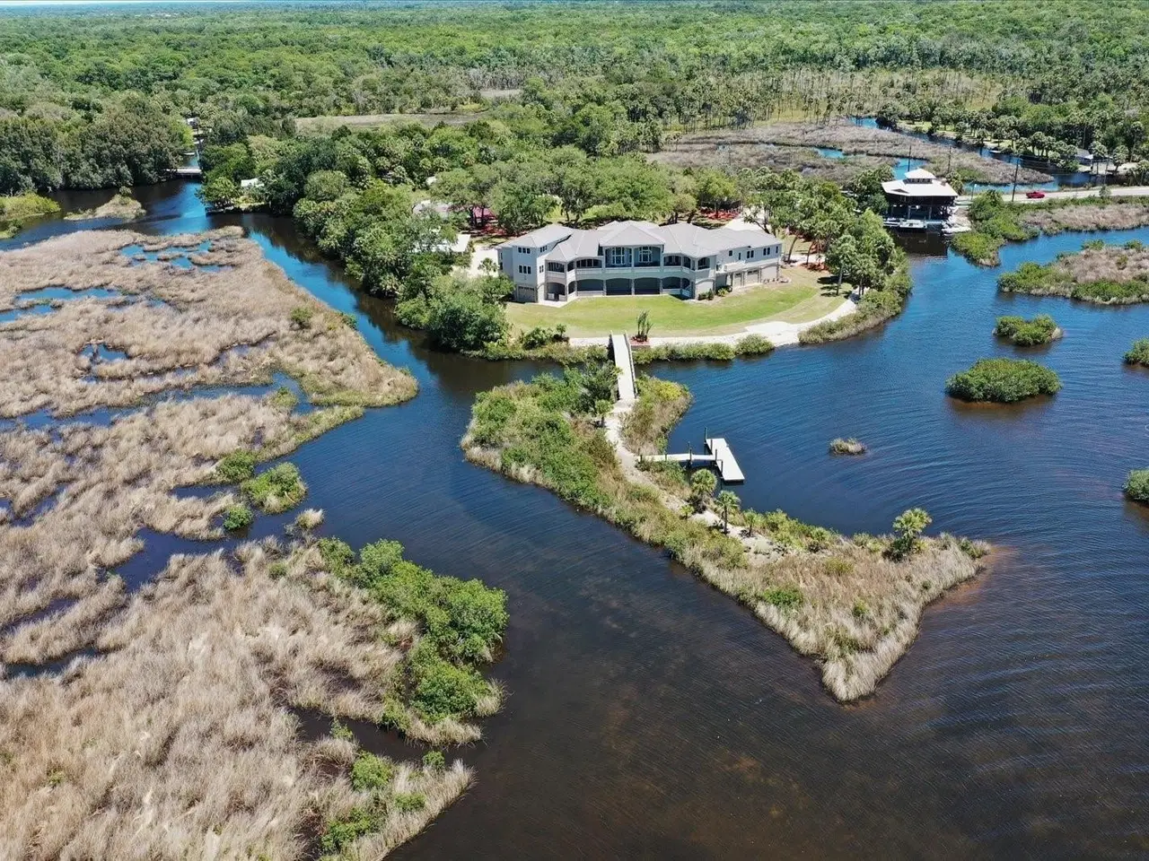 BUILT TO WITHSTAND A CAT 5 HURRICANE, LIVING SPACE OF THE HOME COMPLETELY UNTOUCHED BY HURRICANE HELENE! Some repairs being made to outbuildings and garage doors below the home. MOVE IN READY! TROPICAL GULF OF MEXICO LUXURY ESTATE – This stunning Gulf front property, comprised of over 23 acres, with over 1,100 feet of waterfront on the Gulf of Mexico, with incredible water views from every room is a one-of-a-kind opportunity. The residence is comprised of 5 bedrooms and 5/2 bathrooms in over 8,950 sq ft of living area. Bathed in sunlight, the split plan residence comprises a large entrance hall, living room, generous dining room, butler’s pantry, gourmet kitchen, 350-bottle wine cellar, large walk-in pantry, informal dining area, family room, billiard room, library, professional built 28 seat home theatre, exquisite master suite, opulent en-suite, all showcasing breathtaking views of the Gulf of Mexico. Gated, safe & secure, with a generator that will run the entire home for a month. Outside, a magnificent west facing terrazzo terrace extends the entire length of the home, with an outdoor kitchen with breathtaking Gulf views. Outdoor highlights also include a boat ramp, rustic boat house, a historical rustic guest house, a bridge which leads to an island with a floating boat dock, and double (lighted) tennis courts all amid the beautiful coastal wilderness. A car collectors dream featuring a 40+ car garage, with height for car racks and 12 garage doors, including a utility door, for Helicopter or RV and spans the entire space under the home. The 30,000 sq. ft. motor court makes landing a helicopter easy! The region is a prime spot for water sports and fishing. One of Florida’s most captivating Gulf Coast homes, this private, opulent home is cleverly designed to maximize its position overlooking the Gulf of Mexico.