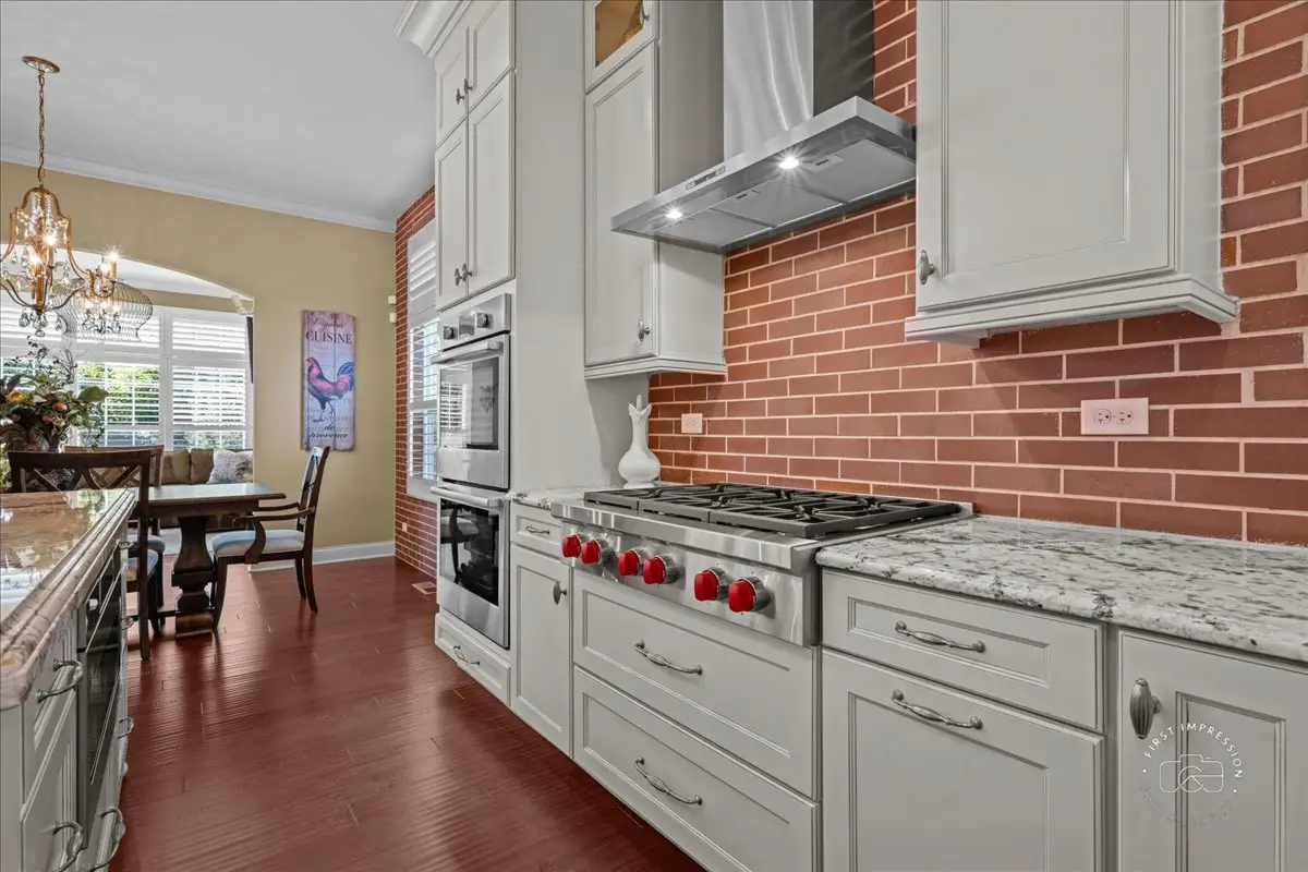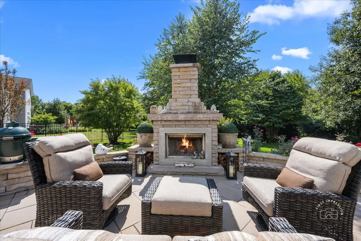 This stunning true ranch home is deceiving from the outside, offering nearly 2,900 sq. ft. of thoughtfully designed living space with an exceptional custom floor plan and high-end finishes throughout. From the moment you step inside, you'll notice the architectural details including custom crown moldings, baseboards, and cabinetry. The gourmet kitchen features granite countertops, premium appliances, and an open flow perfect for both daily living and entertaining. Offering three spacious bedrooms, 2.5 baths, and a versatile first-floor office, this home balances comfort and functionality. The outdoor living space is extraordinary-a fully fenced yard backing to a tree line, beautifully landscaped with mature trees, sprinkler system, and an expansive paver patio complete with outdoor fireplace and built-in grill. Perfect for gatherings large or small. Additional highlights include a three-car garage and a full unfinished basement for future expansion. Ideally located just minutes from downtown St. Charles, St. Charles North High School, I-90, shopping, and more, this newer custom-built home offers privacy, luxury, and convenience in one package.