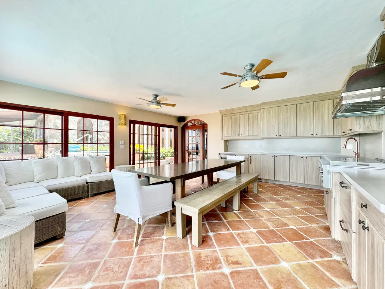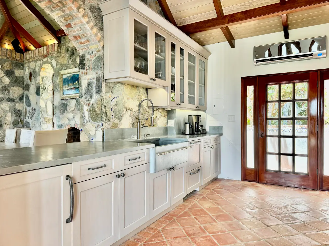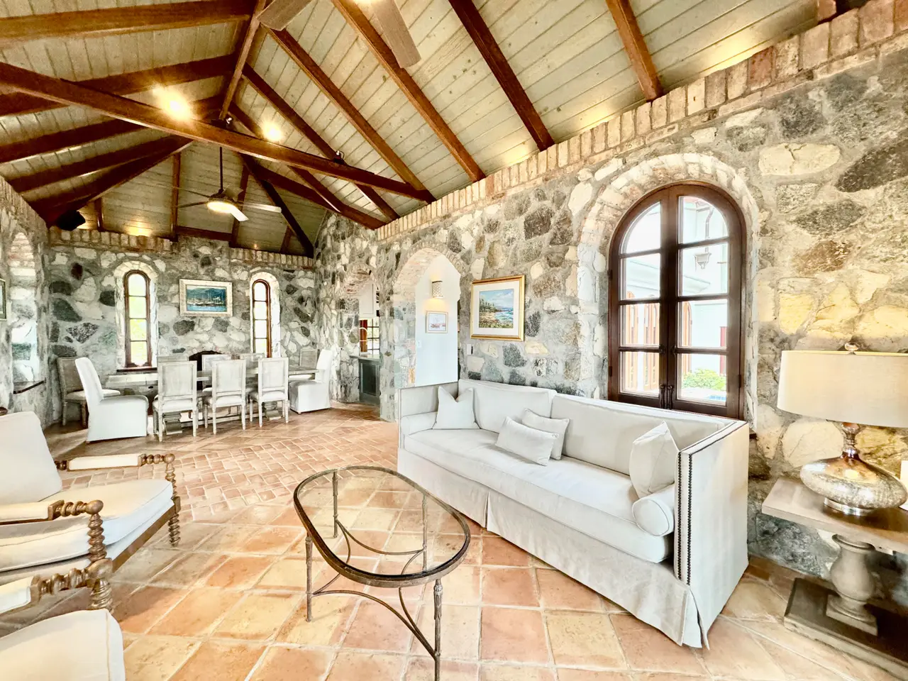 Prepare to be 'wow'ed by this magnificent Bordeaux Mountain villa. This expansive property encompasses a solid masonry home offering three bedrooms and three en suite bathrooms, and a three bedroom, two bathroom cottage. Perfect for large families, this home boasts a fully remodeled kitchen with top of the line stainless steel appliances, a jacuzzi, swimming pool, and a pool entertainment room. The stone work throughout the home is a work of art. The property's serene location offers beautiful views of Coral Bay and down island, while facing east to capture the cooling trade winds. This gated compound features two separate structures, ample parking, and is only seven minutes from Maho Bay, the North Shore Beaches, and the Virgin Islands National Park. Make this villa an investment property or family home!