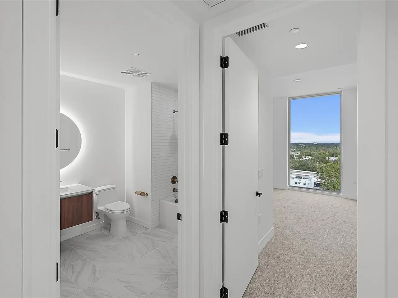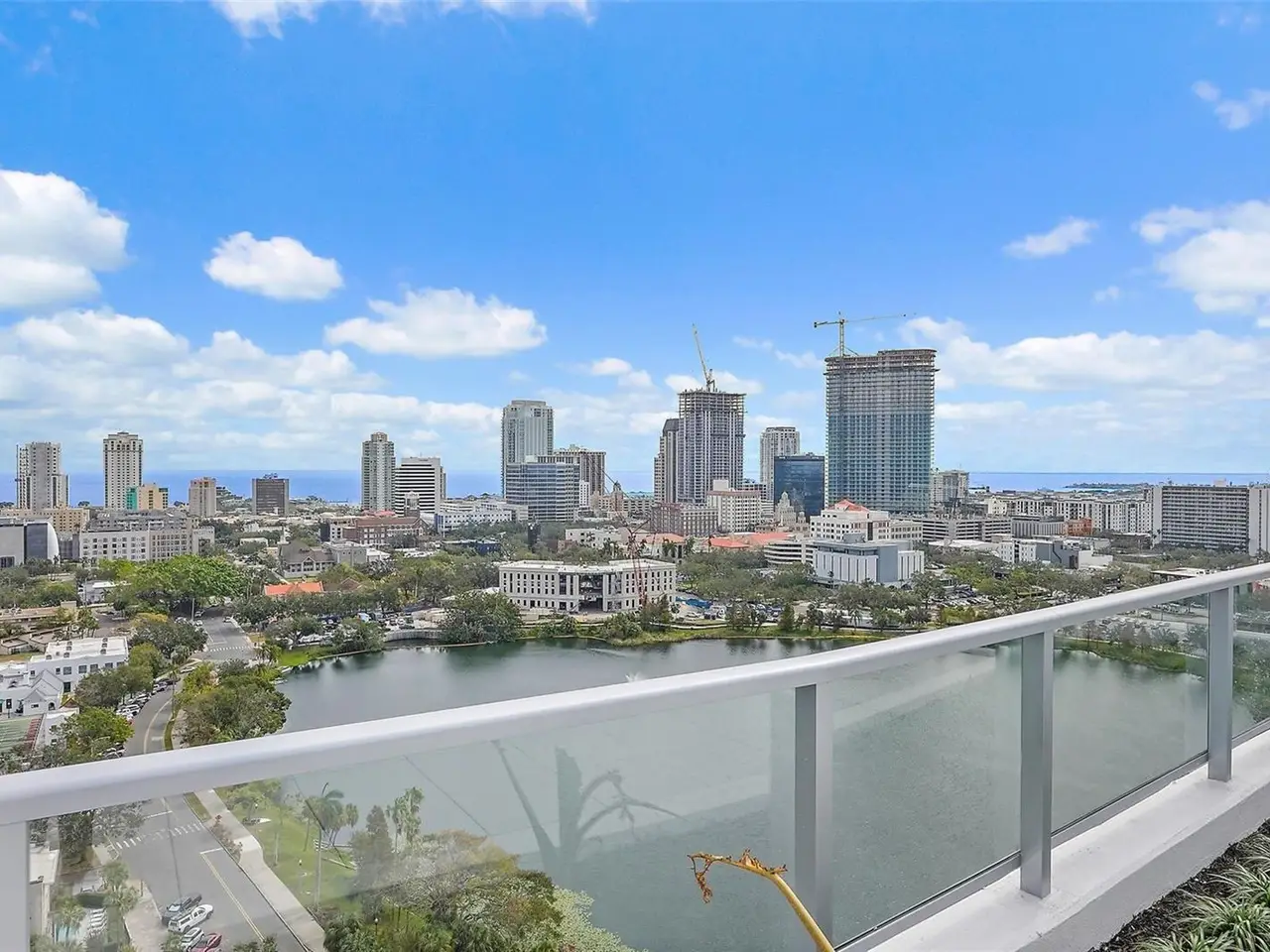 Welcome to one of the largest floor plans at Reflection, this exquisite two-bedroom, two-bathroom condo offers a generous 2,048 square feet of luxurious living space. The Citrine floor plan is part of an exclusive collection of 88 high-end residences, designed for those who appreciate elegance and comfort. As you enter the spacious great room, you'll be captivated by the floor-to-ceiling glass that floods the space with natural light and showcases breathtaking views of the city skyline, Mirror Lake, and Tampa Bay. Step out onto your expansive terrace and embrace the serene atmosphere. The condo features gorgeous porcelain tile floors and soaring 10-foot ceilings throughout the main living areas, enhancing the open and airy feel. The modern chef's kitchen is a culinary dream, boasting quartz countertops, a large island with a striking double waterfall edge, top-of-the-line Bosch stainless steel appliances, and a wet bar, all panel-ready for a seamless look. Enjoy the views while cooking with the grand kitchen window positioned over the sink. Retreat to the large primary suite, complete with an opulent European wet room and upgraded plumbing fixtures, along with a spacious walk-in closet. The second bedroom is equally impressive, featuring a generous closet and a stunning floor-to-ceiling glass panel window that further highlights the exceptional views. This residence comes with two dedicated parking spaces, ensuring convenience for you and your guests. Residents of Reflection enjoy exclusive access to the impressive 12,000-square-foot amenity rooftop, featuring a glass facade, an air-conditioned fitness center, and a stylish social club. Unwind in the tropical pool and spa, gather around the fire pit with ample seating, or host gatherings in the outdoor kitchen and wet bar - all while taking in unparalleled panoramic views. Health and safety are top priorities at Reflection, with state-of-the-art features including an advanced electronic air filtration system, MERV 13 filters, water softening systems, copper buttons in the elevators, touchless doors, and much more. Don't miss the opportunity to own this exceptional condo that combines luxury, convenience, and breathtaking views in one of St. Petersburg's most sought-after addresses.