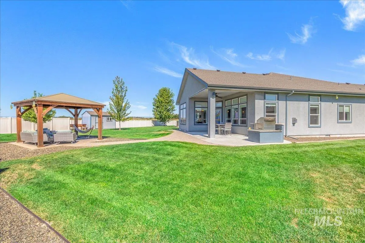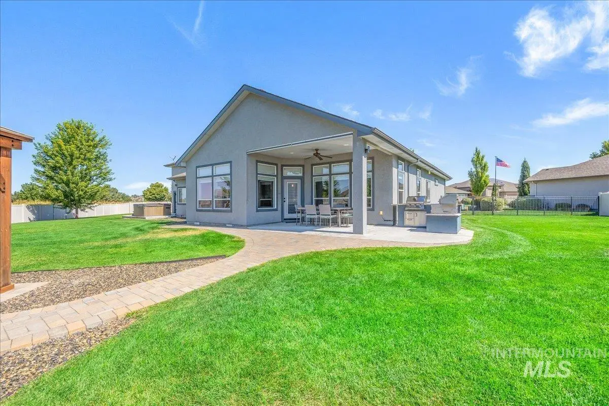 This home truly has it all -- style, function and space. Meticulously maintained single level home on a rare .51 acre lot in The Lakes at Pristine Meadows. Perfect blend of comfort and luxury with 3 spacious bedrooms, 2.5 bathrooms, dedicated office, and an expansive 40 ft RV garage. Featuring soaring vaulted ceilings, beautiful chef's kitchen with high end appliances, granite counter tops, large island and huge butler's pantry. Outside is a massive fully fenced yard with a big covered patio, an entertainer's dream w/ built-in gas grill, relaxing hot tub, shed for your lawnmower, and garden boxes for growing fresh vegetables; plus room leftover for whatever you envision. Step into the garage to find plenty of space for all your toys, custom built-in cabinets, EV charger, RV plug, and a built-in shower, perfect for washing off after a day of adventure-- for you or your 4 legged friends. Community features a private 5 acre lake, ideal for fishing, kayaking or simply enjoying the serene surroundings.