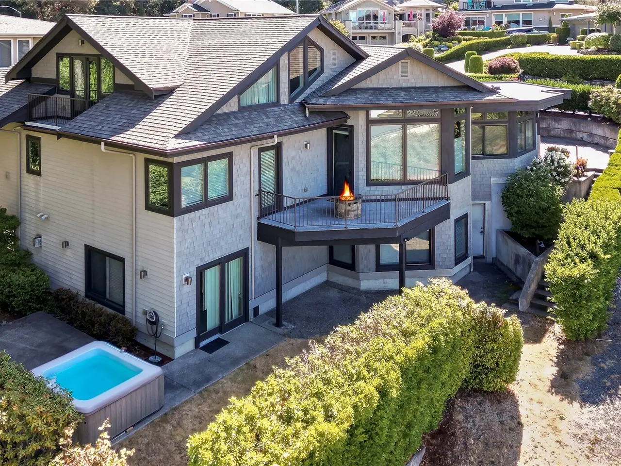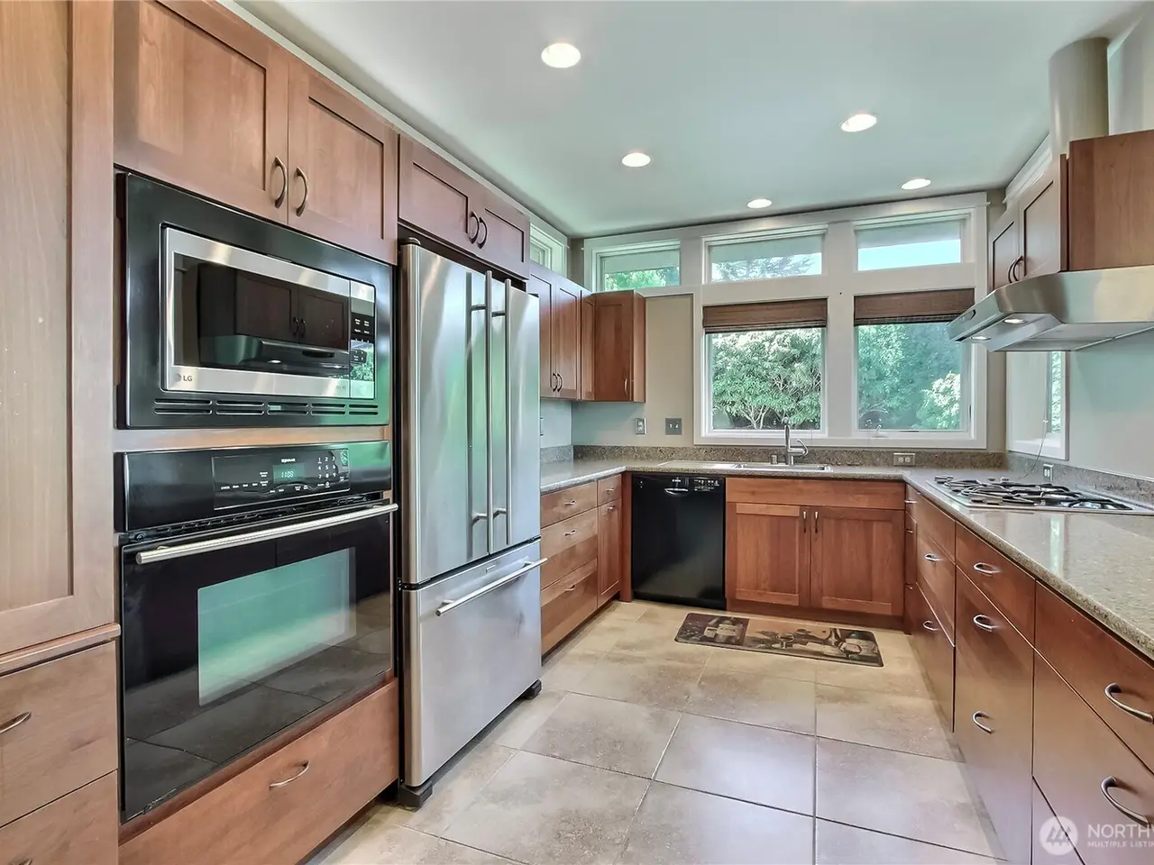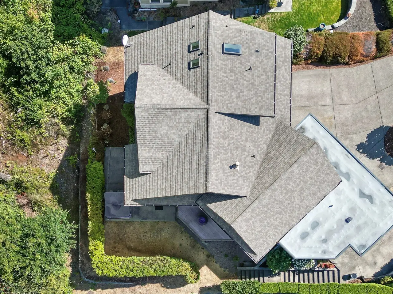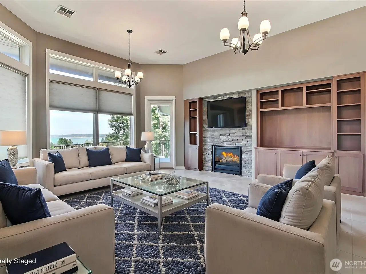 Luxury Northwest Contemporary Danielson-built home in a private 10-home enclave bordering a nature preserve, with sweeping Sound views from virtually every room. High-end finishes include granite counters, custom cherry cabinetry, Jenn Air and Bosch appliances, radiant tile floors on all levels, two gas fireplaces, central air conditioning, tankless water heater, and Trex decking. Main level features a spacious utility room and walk-in pantry. Upstairs offers a vaulted primary suite with Juliet porch, 5-piece bath and loft with built-ins. Lower level has private entrance, bedroom with walk-in closet, three-quarter bath and rec room with patio -- perfect for guests or multigenerational living. Exceptional quality and thoughtful design throughout!