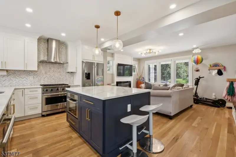 This beautifully fully renovated home has approximately 2,500 sq ft of interior finished living space. The 1st level greets you with a warm and modern open-concept design. The living room features a shiplap wall accentuating the fireplace and is totally open to the gourmet kitchen, which is the epitome of design and function - featuring a stylish two-toned design. High-end Stainless Steel appliances from Viking, Bosch and Electrolux, ensure the ultimate culinary experience. The formal dining room is perfectly located adjacent to the kitchen, ideal for both cooking and entertaining. This layout is highlighted by the 12' high cathedral ceilings in the family room with views of the pool and backyard. To complete the 1st level, you will find a bedroom for guests or the ideal home office located next to a full bath. The 2nd level features a luxurious Primary Bedroom Suite with 11' high tray ceiling, a barn door entrance to the walk-in closet and pocket door to the spa-like primary bath with double vanity and spacious shower. With 4 bedrooms and 4 full baths, this home ensures ample space for comfort and privacy. The beautifully finished lower level features a rec room, an additional bonus room, and a laundry room. New maintenance free hardy plank siding adorns the entire exterior. The backyard has a stunning pool and new equipment. This home is conveniently close to vibrant downtown Summit, top schools, Newark Airport (12 minutes) and the train station with 35 minute express trains to Penn Station!