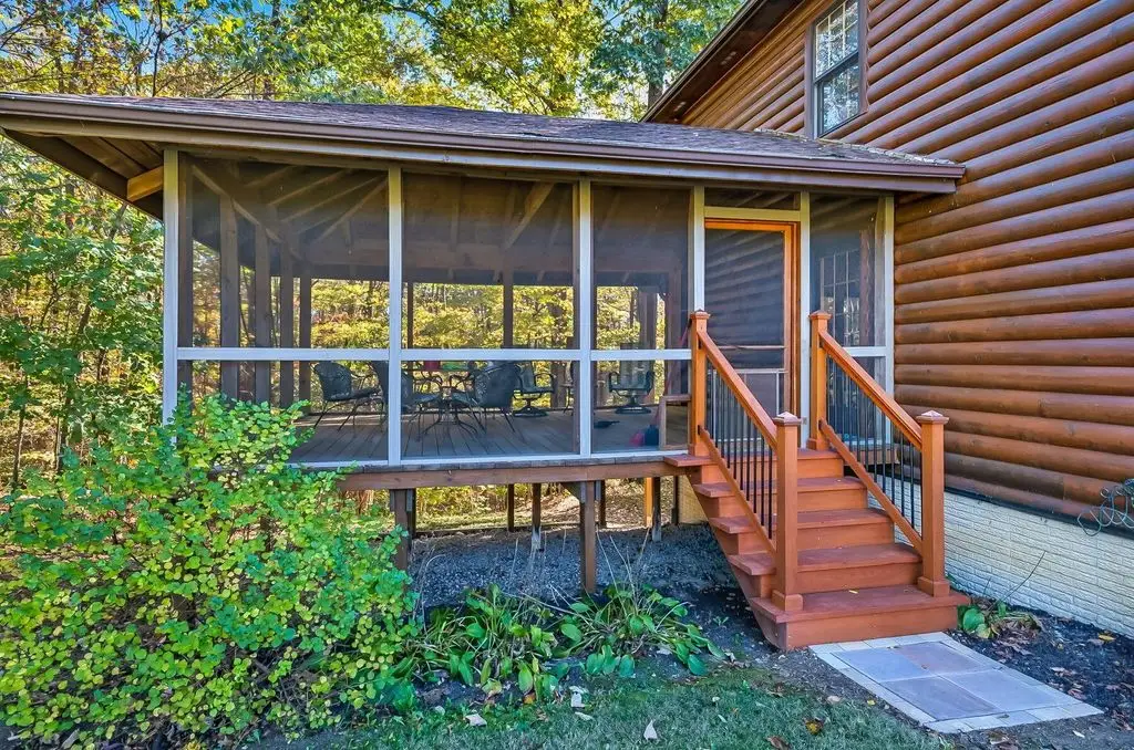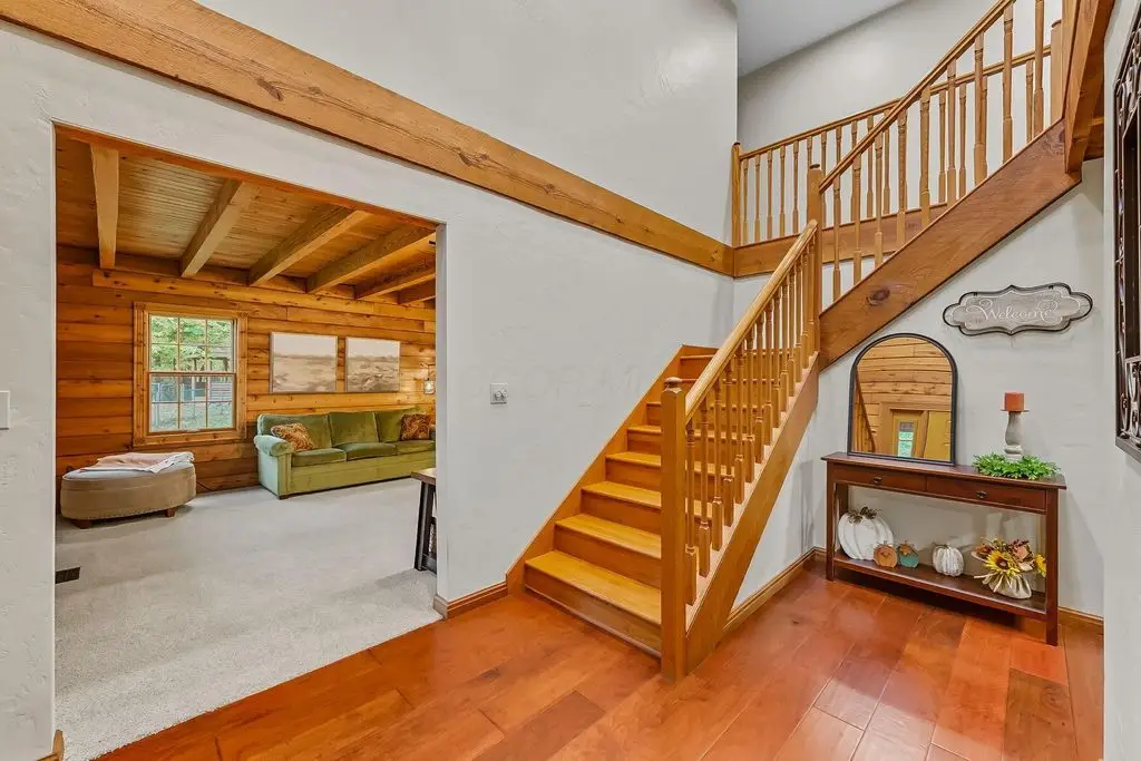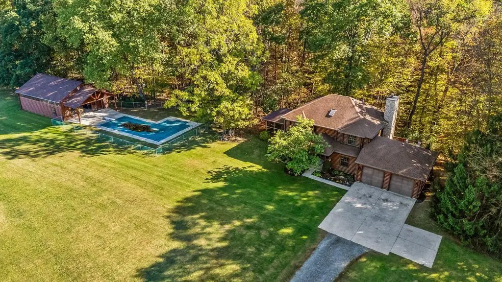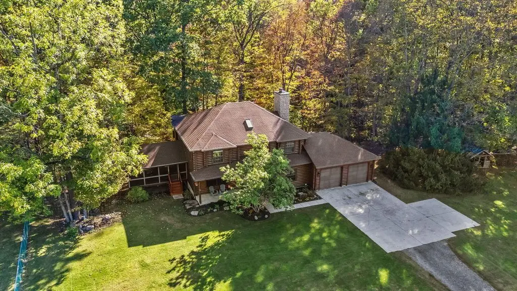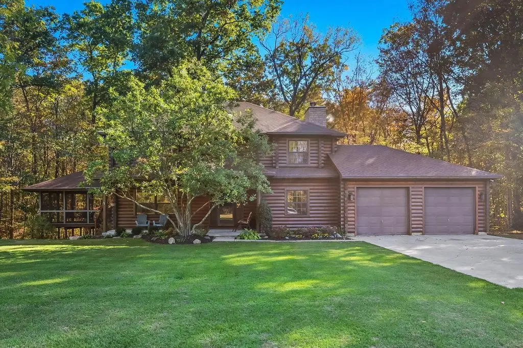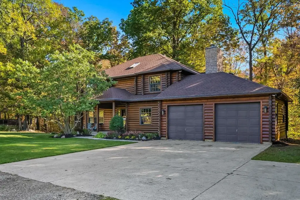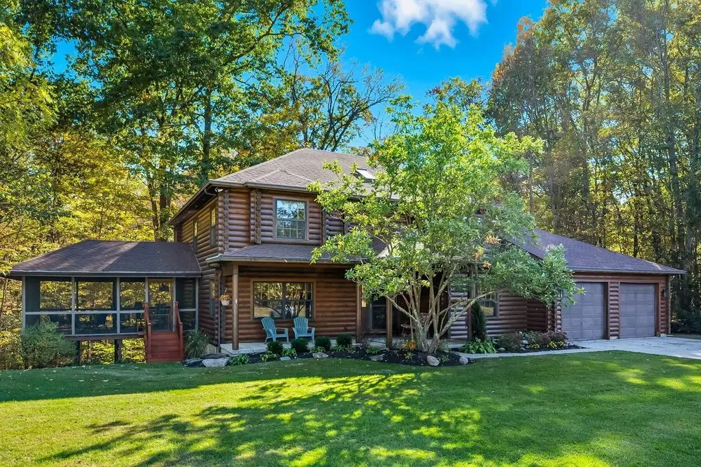 One-of-a-Kind Western Red Cedar log home on 3.5 Acres in Olentangy Schools! Escape to your own private retreat nestled on 3.5 wooded acres and accessed by a secluded driveway beneath a canopy of trees. Surrounded by nature, this unique property offers panoramic views of lush woods, a serene ravine, and a peaceful stream - truly a haven for nature lovers. Inside, you'll find over 3500 sq ft of flexible living space, including: 3 spacious bedrooms upstairs, featuring a deluxe primary suite with a spa-like bath and a private balcony overlooking breathtaking scenery. A main-level bedroom or home office with an adjoining full bath - perfect for guests or remote work space. Inviting living and dining areas, plus a cozy family room with a Century wood-burning fireplace for those chilly Ohio evenings. A finished walk-out basement with a large rec room, wet bar, and a fourth full bathroom - ideal for entertaining or multi-generational living. Outdoor amenities abound with an expansive screened porch for relaxing and enjoying the sights and sounds of nature, an in-ground swimming pool for summer fun, a 30x40 pool house/pole building - great for storage, hobbies, or workshop space, and a peaceful gazebo to enjoy the panoramic scenery. Also featuring a large rear deck overlooking the wooded ravine, perfect for gatherings or quiet mornings with coffee. Recent updates include a new geothermal heating system (2020), new hot water heater (2017), new roof (2022), and Pella windows throughout.All this, just minutes from I-71, Tanger Outlets, and the Polaris area. Don't miss your chance to own this extraordinary property that blends rustic charm with modern comfort!