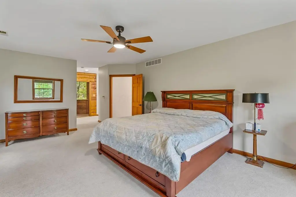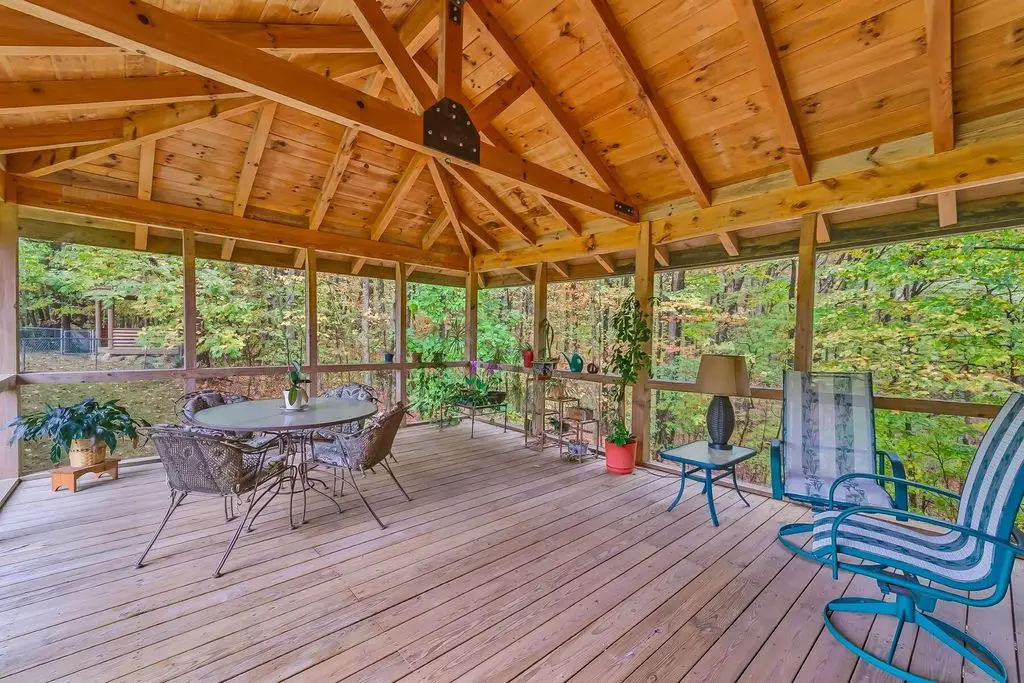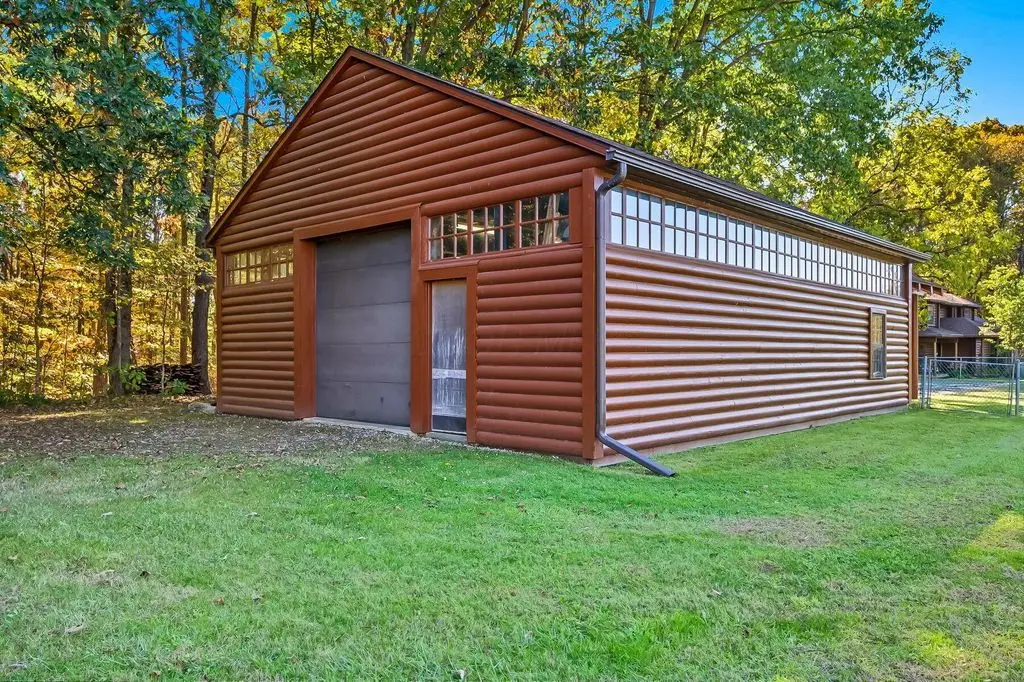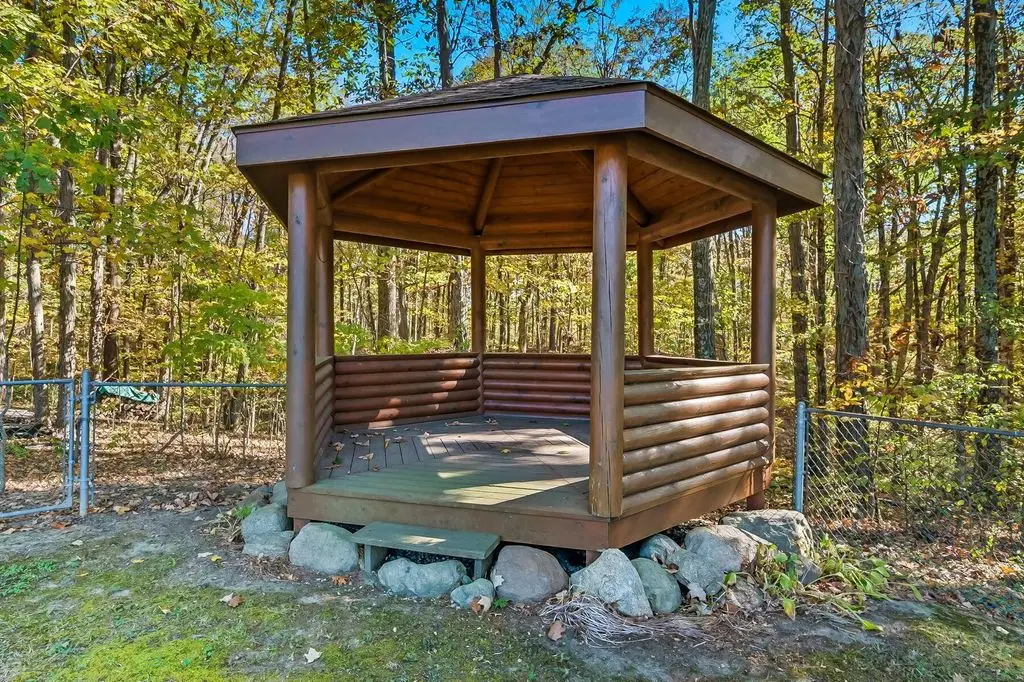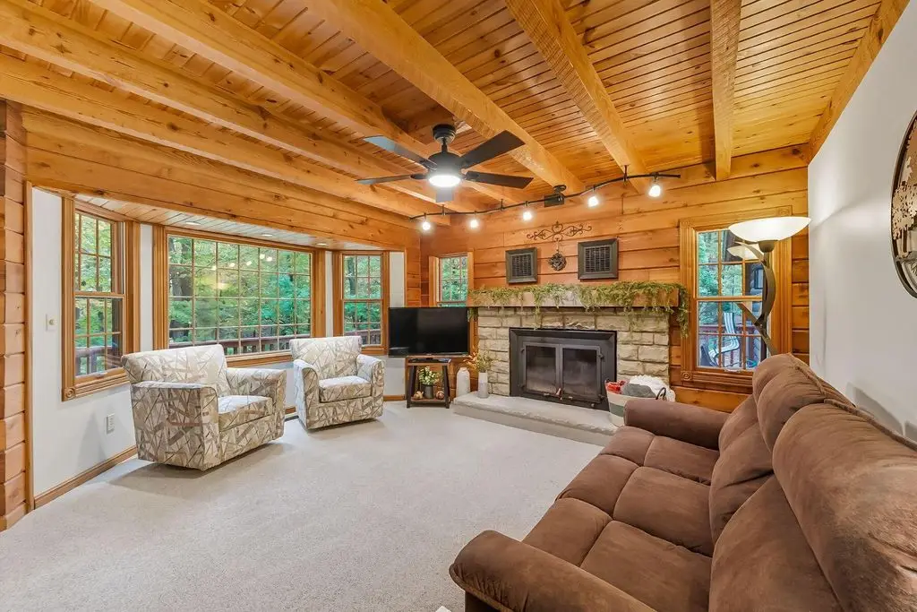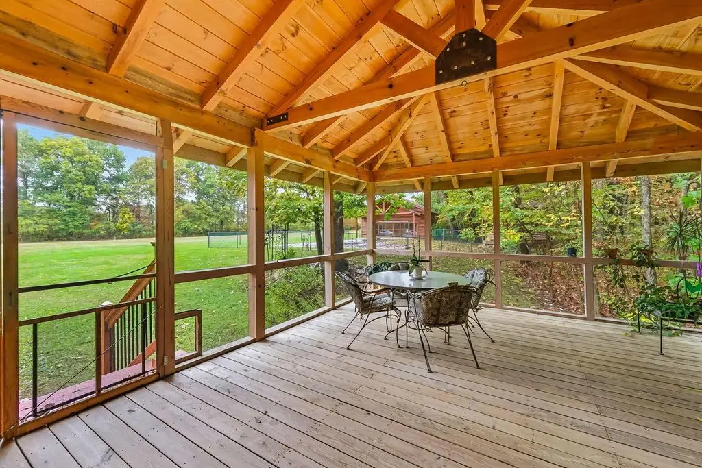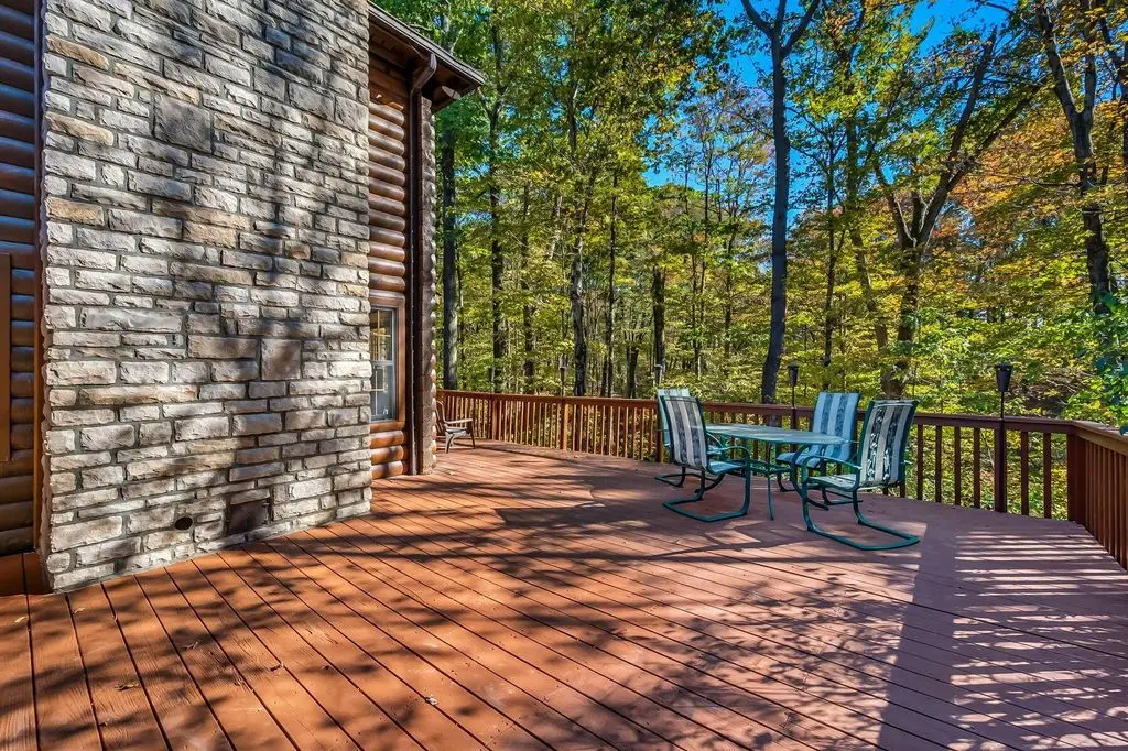 One-of-a-Kind Western Red Cedar log home on 3.5 Acres in Olentangy Schools! Escape to your own private retreat nestled on 3.5 wooded acres and accessed by a secluded driveway beneath a canopy of trees. Surrounded by nature, this unique property offers panoramic views of lush woods, a serene ravine, and a peaceful stream - truly a haven for nature lovers. Inside, you'll find over 3500 sq ft of flexible living space, including: 3 spacious bedrooms upstairs, featuring a deluxe primary suite with a spa-like bath and a private balcony overlooking breathtaking scenery. A main-level bedroom or home office with an adjoining full bath - perfect for guests or remote work space. Inviting living and dining areas, plus a cozy family room with a Century wood-burning fireplace for those chilly Ohio evenings. A finished walk-out basement with a large rec room, wet bar, and a fourth full bathroom - ideal for entertaining or multi-generational living. Outdoor amenities abound with an expansive screened porch for relaxing and enjoying the sights and sounds of nature, an in-ground swimming pool for summer fun, a 30x40 pool house/pole building - great for storage, hobbies, or workshop space, and a peaceful gazebo to enjoy the panoramic scenery. Also featuring a large rear deck overlooking the wooded ravine, perfect for gatherings or quiet mornings with coffee. Recent updates include a new geothermal heating system (2020), new hot water heater (2017), new roof (2022), and Pella windows throughout.All this, just minutes from I-71, Tanger Outlets, and the Polaris area. Don't miss your chance to own this extraordinary property that blends rustic charm with modern comfort!