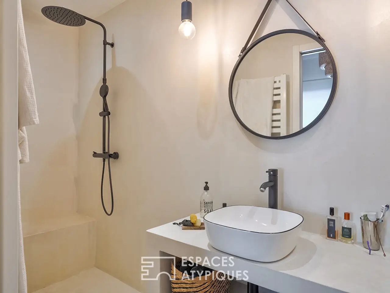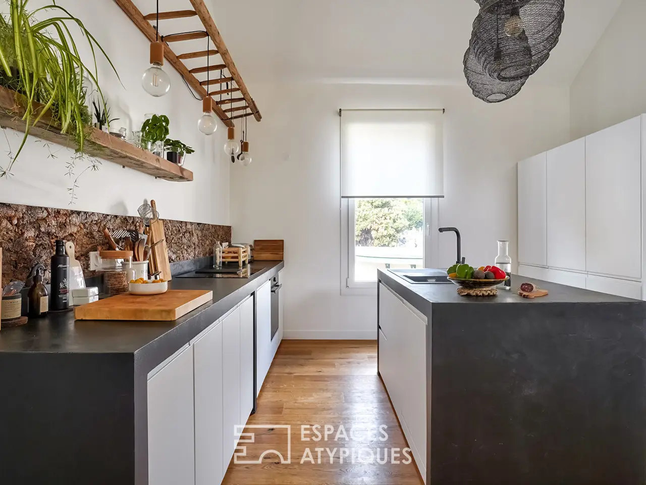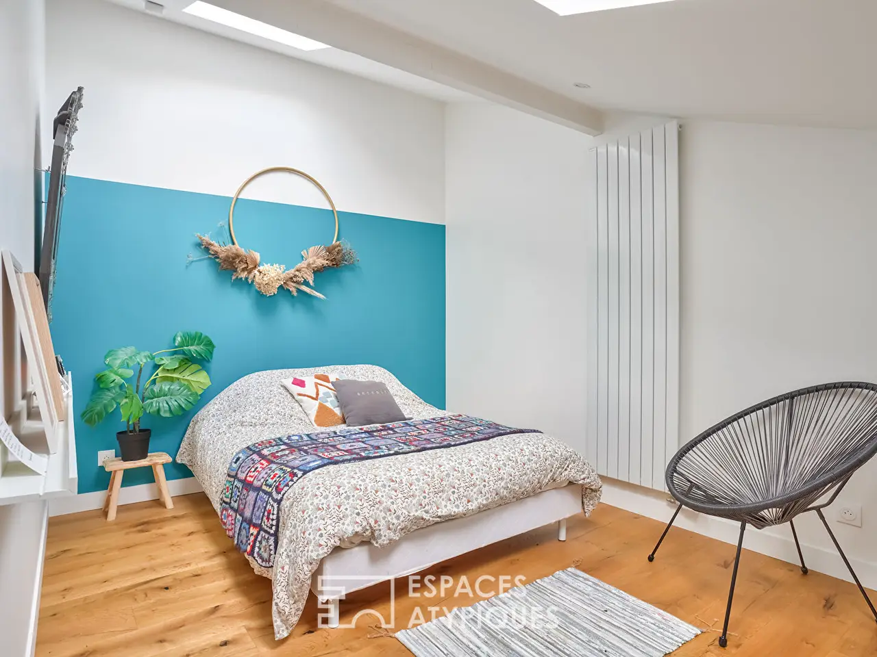 Located on the border with Puteaux, this unique townhouse is the result of the renovation of a former 19th century marble works. It offers 185.33 m2 Carrez (190.46 m2 floor space) of charm and elegance. Perfectly renovated with contemporary materials, it combines the character of the old with modern amenities. The main living space offers 124.83 m2 Carrez (129.96 m2 floor space) in duplex, completed by two independent apartments, making this property a property with great potential, ideal for an investment or a large family. Upon entering, the ground floor welcomes a functional hall, accompanied by a large laundry room and separate toilets. Upstairs, a remarkable living space is bathed in natural light, and seduces with impressive volumes and an incredible ceiling height of 5.50 meters, creating an airy and friendly atmosphere. An open kitchen with a contemporary design completes this space, ideal for moments of sharing with family or friends. On the night side, three bedrooms share the ends of the property. On the living room side, we discover a beautiful master suite with its own bathroom with toilet. On the staircase side, an office space ideal for teleworking or multipurpose use, distributes two bedrooms and a second bathroom, with current decoration. In addition to this main part, the property includes two two-room apartments, respectively 32.06 m2 and 28.44 m2. These accommodations, now successfully used as seasonal rentals, represent a great opportunity for additional income. It is also possible to reintegrate them into the main space, or to keep them for an attractive rental profitability. Located in a quiet and residential area, this house benefits from a location in the immediate vicinity of public transport, shops and the dynamic market of Puteaux. A private garage perfectly completes the services offered. In full ownership, this property skillfully combines history and modern comfort through impressive volumes, brightness and unique charm. This inspiring place to live will be ideal for lovers of unique spaces, a family or an investment with rental possibilities. REF. 7763 Additional information * 10 rooms * 5 bedrooms * 1 bathroom * 3 shower rooms * Property tax : 736 €