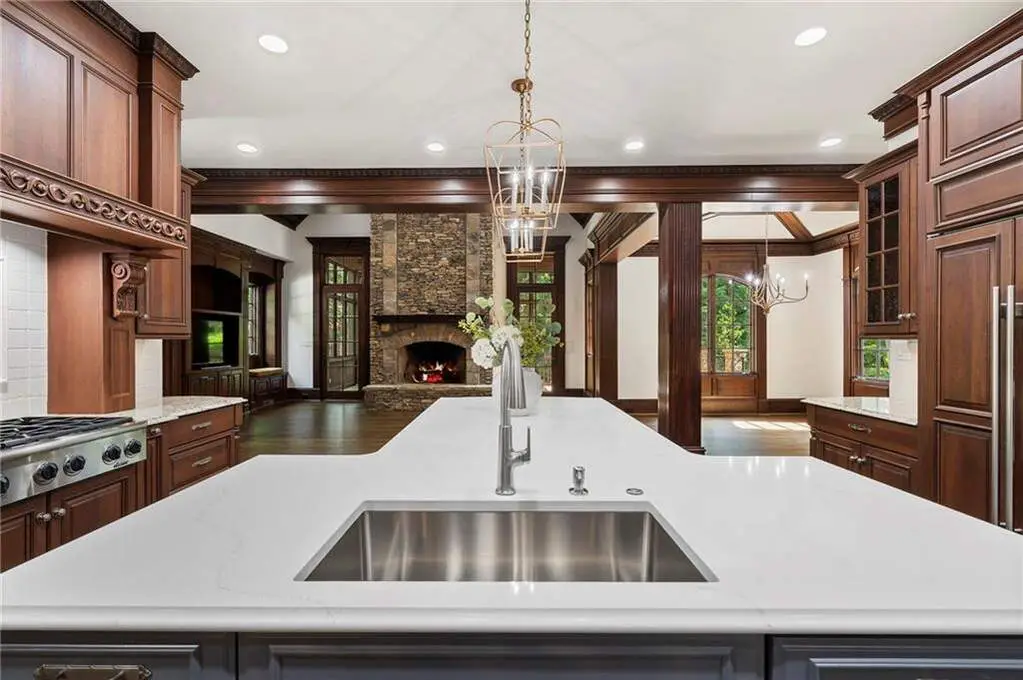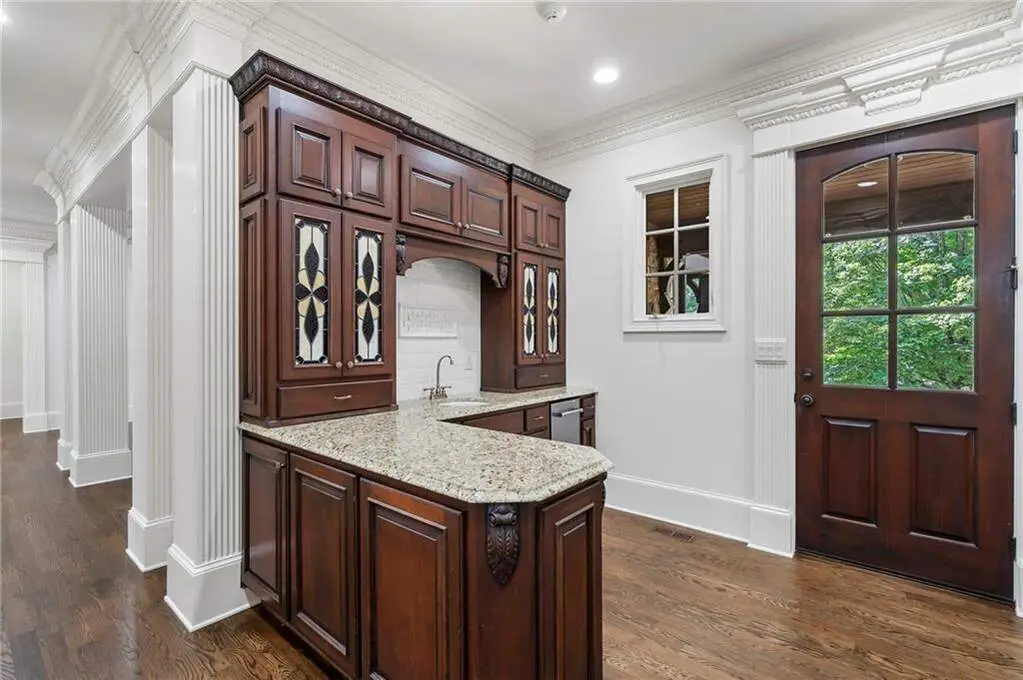 Experience the perfect blend of timeless sophistication and relaxed luxury in this extraordinary residence, nestled within the prestigious gated golf community of The River Club. Ideally located just a short walk from both the clubhouse and the lakeside family center, this home offers effortless access to world-class amenities that define this exclusive enclave. This premium homesite is one-of-a-kind-offering serene privacy and picturesque views from every angle. From its classic architecture to the impeccable finishes found throughout all three levels, every detail of this home exudes enduring quality and thoughtful design. Whether you're hosting elegant dinner parties, casual gatherings with friends, or enjoying quiet moments with family, this home provides the ideal backdrop for every occasion. Tucked away behind lush landscaping, the front porch is where evenings are spent watching the sunset and greeting neighbors walking by in the distance. The warm and welcoming foyer leads to richly appointed living spaces. A handsome study with fireplace, exquisite millwork, and sun-filled window creates the perfect setting for a home office. The formal dining room flows to a gracious great room featuring a limestone fireplace, coffered ceilings, and stunning views of the beautifully landscaped backyard and tranquil waterfall. Unique to this home is the charming friends and family entrance, which opens into a well-appointed service area-ideal for welcoming guests with refreshments upon arrival or serving cocktails adjacent to the dining room when hosting formal parties. The gourmet kitchen, centered around a spacious island, flows effortlessly into the vaulted keeping room with an oversized, striking stone fireplace. Beyond the keeping and breakfast rooms, is one of the areas you will enjoy the most, especially in the fall! The cozy screened porch with beautiful wood burning fireplace opens to the grilling deck and overlooks the waterfall. This lot also offers the coveted best of both worlds in that you walk out the main level to the screened porch, grilling station, and level backyard, with the lower level just outside the terrace level being pool ready. On the terrace level, step into the ultimate haven for hosting and relaxation-where exquisite stonework and rich millwork set an unforgettable tone. The showstopping centerpiece is a stunning, stone-wrapped English-style pub, complete with a private gentleman's room and wine cellar with hidden enclave for storing valuables. Whether you're enjoying fireside conversations, movie nights in your private home theater, or friendly competition in the billiard room, this luxurious terrace level delivers unforgettable moments and endless entertainment. A rare and highly sought-after feature in this home is the inclusion of two luxurious primary suites-one conveniently located on the main level and another upstairs. The home is also elevator-ready for added ease and accessibility. The home offers 7 spacious bedrooms, including 5 ensuite bedrooms, a large bonus room with built-in study/office area, and 2 additional bedrooms on the terrace level. Lovingly maintained by its original owners, this timeless home has recently been refreshed with new paint, new carpet, and refinished hardwood floors, making it truly move-in ready. Set along the iconic Chattahoochee River, The River Club is a certified Audubon Sanctuary and one of the Southeast's premier private communities. Residents enjoy a wealth of amenities including a Greg Norman-designed championship golf course, a lakeside family sports center featuring both clay and hard-surface tennis courts, a junior Olympic lap pool with splash pad and slide, and a state-of-the-art fitness center. Dining options abound, from casual fare to fine dining. With 24/7 gated security, top-rated schools, and close proximity to upscale shopping, dining, and cultural attractions, The River Club offers a lifestyle of unmatched luxury and convenience.