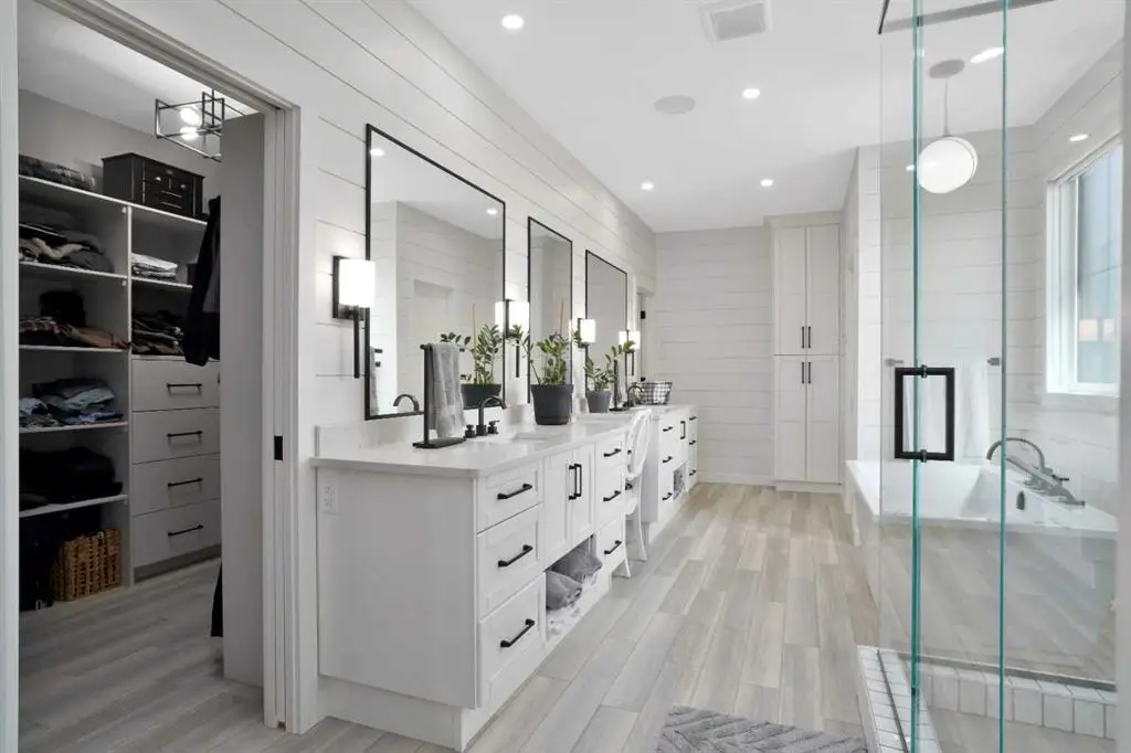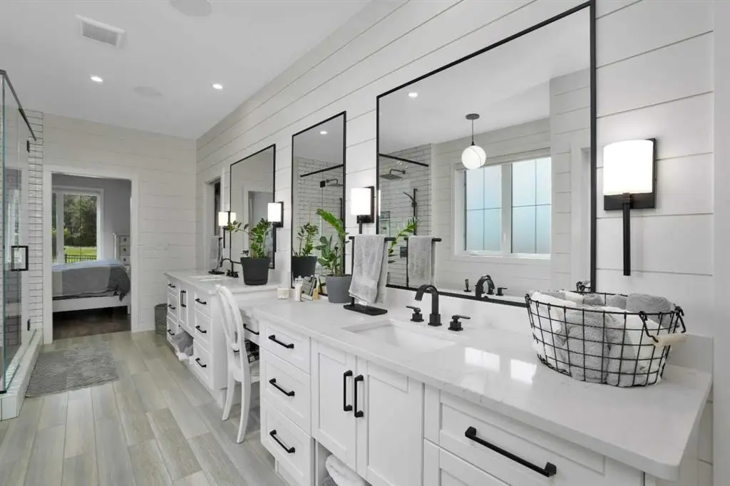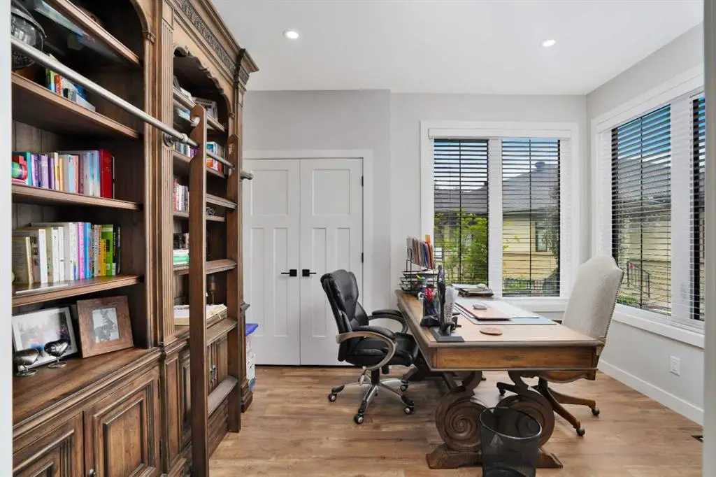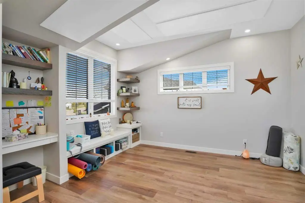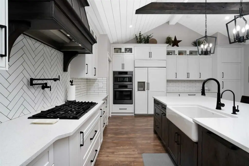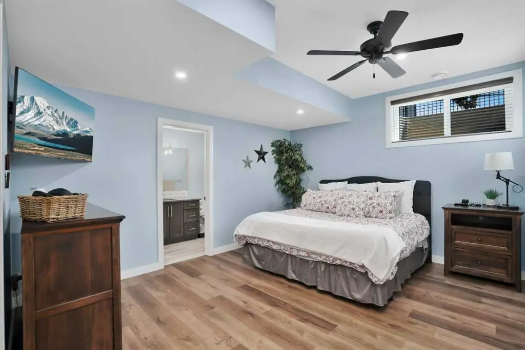 This extraordinary home in Sixty West redefines luxury living with a level of craftsmanship, space, and comfort rarely seen in Central Alberta. With over 3,400 square feet of above-grade living space, it offers a grand yet grounded experience. Soaring ceilings and expansive windows flood the main floor with natural light, framing views of surrounding parkland and walking trails. The expansive layout connects a thoughtfully curated dream kitchen to a warm, welcoming living area. The kitchen is both functional and stunning, with a massive island, premium appliances, and a hidden coffee bar and prep space, perfect for entertaining or everyday ease. Solid wood accents and barn doors add texture and charm throughout, including a quiet main-floor office. Seamlessly integrated into this space is a discreet feature door that opens to the crown jewel: a spacious, private primary retreat that feels more like a luxury spa than a bedroom. The enclosed sunroom with a wood-burning fireplace offers year-round comfort perfect for last-minute get-togethers or quiet mornings with a coffee and a good book. Upstairs, there’s plenty of space to stretch out for yoga, weight training or even host golf nights on your private golf simulator. A wet bar and full bathroom complete the upper floor. The lower level is designed for connection and fun, with a full-sized bar, spacious media room, games areas, and two large bedrooms with private ensuites, perfect for visitors or teenagers. Outside, a fully landscaped, manicured yard with underground sprinklers and multiple decks maximizes outdoor living. The heated three-car garage features a secure dog run and an indoor wash station. Built to an exceptional standard and thoughtfully designed for effortless living, this home offers beauty, comfort, and opportunity in one of Sylvan Lake’s most coveted neighborhoods. This one-of-a-kind home is on a level of its own.