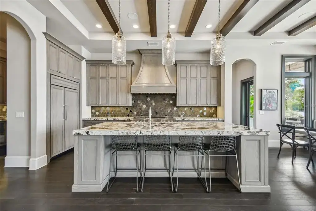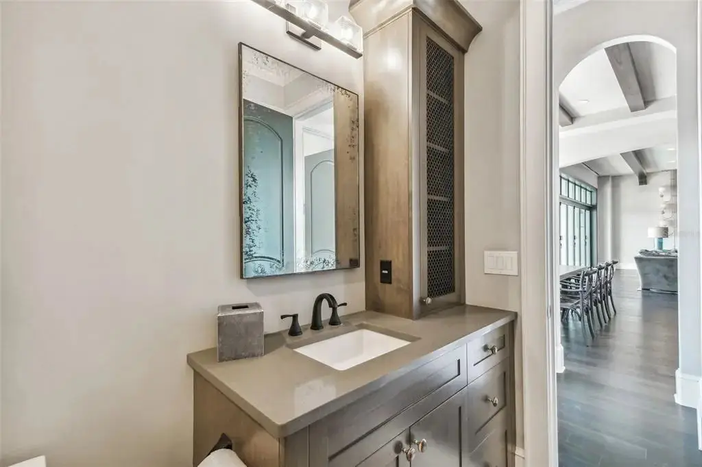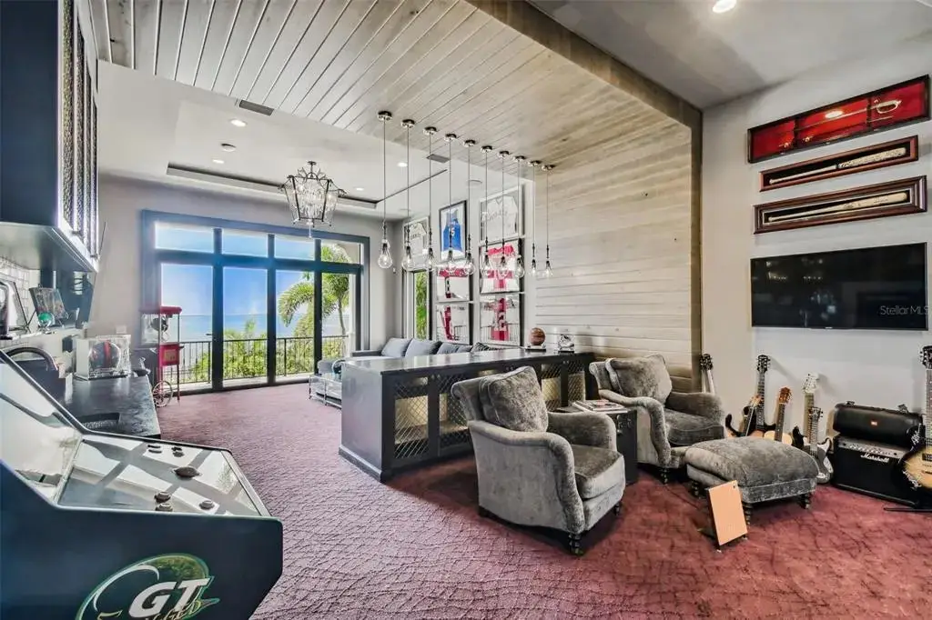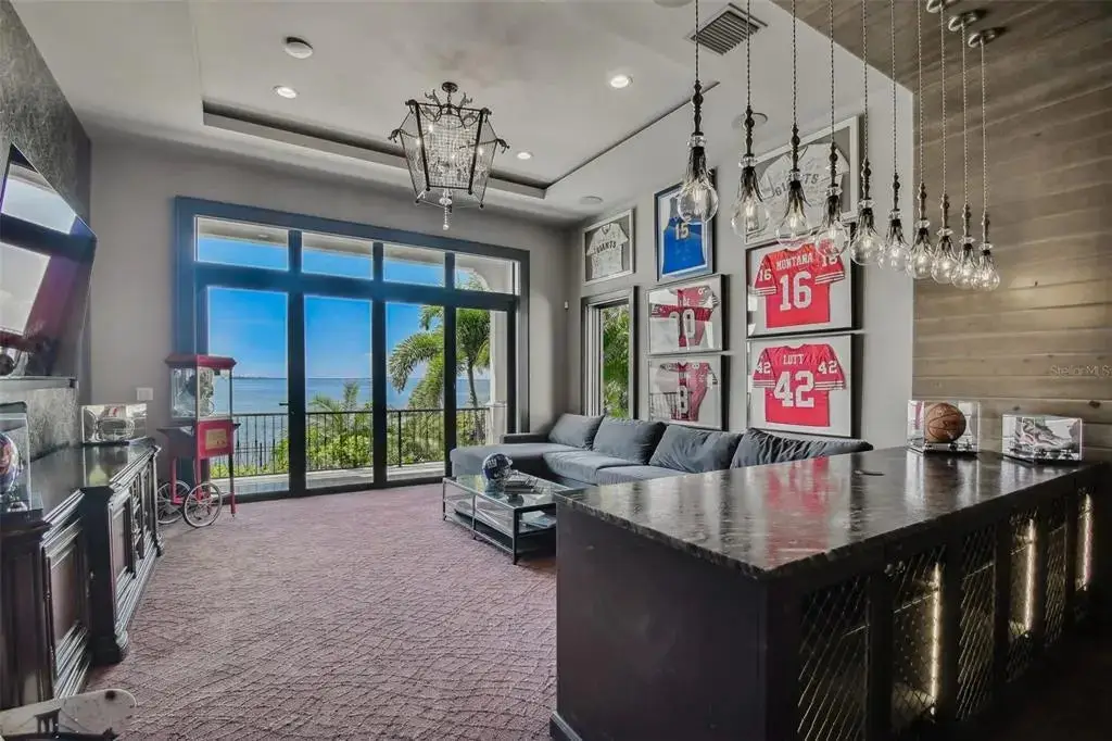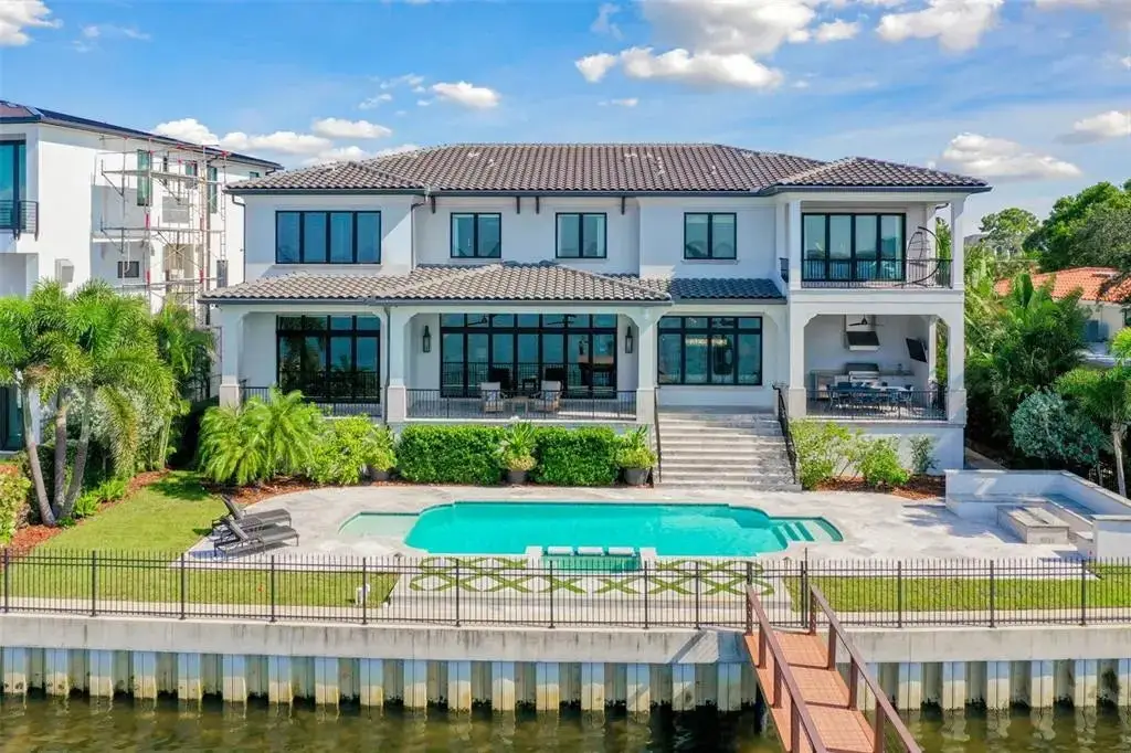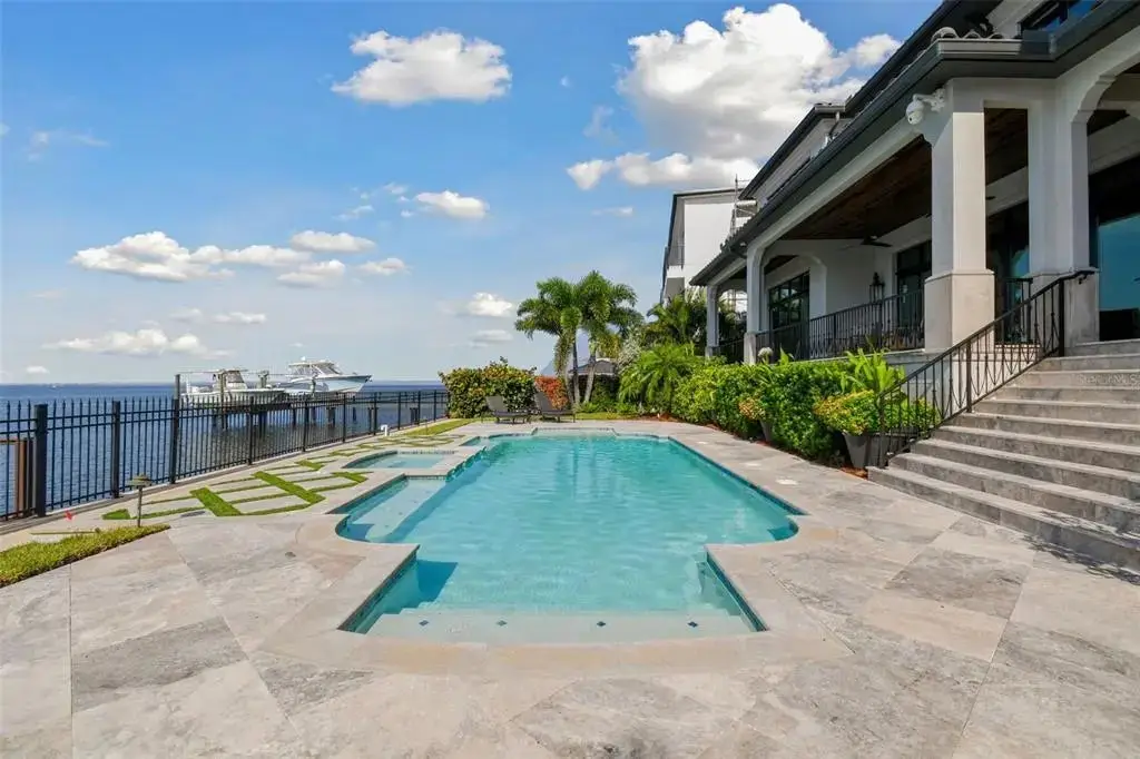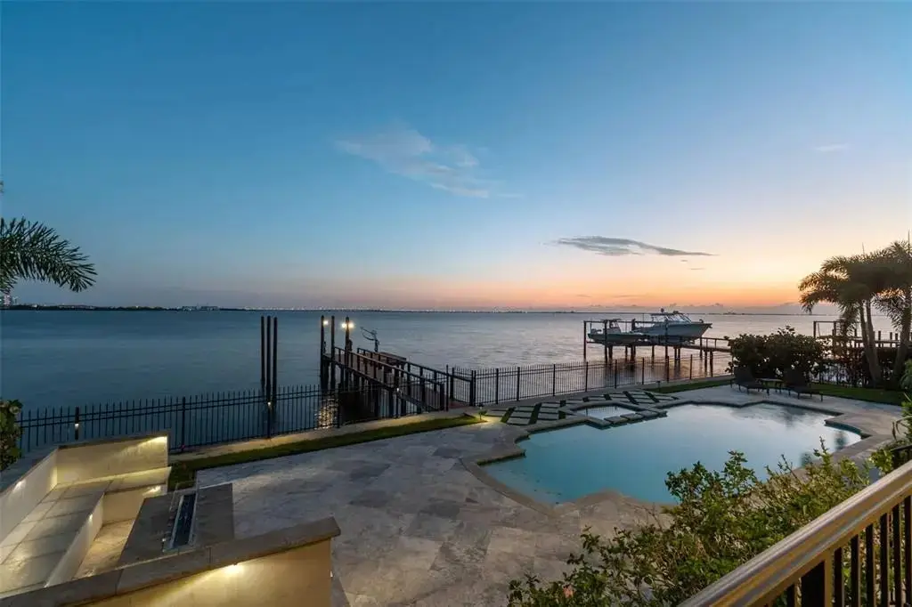 Experience the epitome of luxury in this custom-built waterfront estate by Bayfair, offering unobstructed views of Tampa Bay and beyond to downtown St. Pete and an exceptional blend of modern comfort and timeless elegance. This home is meticulously designed to capture the beauty of its surroundings while providing unparalleled luxury. Grand Entrance: As you step through the front door flanked by copper gas lanterns, you're welcomed by a dramatic two-story foyer featuring a stunning curved stairwell, setting the stage for the exquisite craftsmanship found throughout the home. Open-Concept Layout: The expansive, light-filled living space flows seamlessly, perfect for both grand entertaining and intimate gatherings. A formal dining room offers an elegant setting for hosting, while a nano-wall of windows provide breathtaking views of the water. It really makes you say WOW when you walk inside. Gourmet Kitchen & Casual Dining: The heart of the home, the kitchen, is equipped with Wolf and Sub-Zero appliances, custom stained light grey oak cabinetry, a spacious walk-in pantry, and a butler’s pantry with a wine fridge. The oversized island is perfect for meal prep and casual seating, while the adjacent casual dining area offers a bright, informal space to enjoy everyday meals with stunning views of the bay. Main Level Amenities: The first floor includes a guest bedroom with a full pool bath, a powder bath, and a mudroom/drop zone, offering convenience and practicality. Entertainment Zone: A dedicated entertainment area features a golf simulator, bar, and media room, creating the perfect space for hosting gatherings or enjoying family movie nights. Outdoor Living: The outdoor space is a true oasis, with a resort-style pool, spa, firepit seating area, and a wide covered porch ideal for dining and lounging. The outdoor kitchen, complete with a Alfresco built-in grill, makes outdoor entertaining effortless. Primary Retreat: The upstairs primary suite is a private sanctuary, featuring a sitting area with access to a private balcony offering panoramic views of Tampa Bay. It boasts a walk-in closet for two with a large island for additional storage, a spa-like bath with dual vanities, a steam shower, a jacuzzi tub, and his-and-hers water closets. Upstairs Features: Four additional en-suite bedrooms, each with spacious closets, provide ample space and privacy, a custom office with modern oak paneling and views of the bay offers a tranquil workspace. A large utility and laundry room makes those chores effortless. Garages & Storage: With split garages—a 1-car and a 2-car garage—there's room for car lifts and ample storage for vehicles or other belongings. Additional Features: A whole-house generator ensures you’re always comfortable, while high-end finishes, smart home Elan and Lutron technology systems, and energy-efficient features, such as high-impact windows and tankless water heater along with whole home water filtration system are just a few of the upgrades that make this home special. In summary, this home has it all with a floorplan that meets all the needs of a modern lifestyle as well as the construction quality and durability to make living on the open bay effortless.