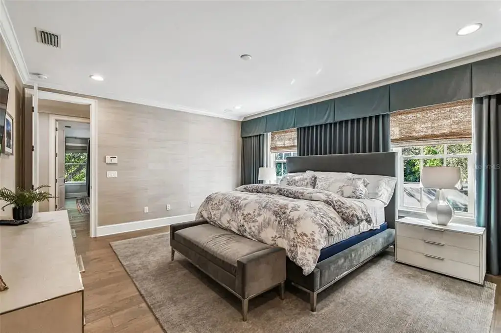 Automated black-out curtains in master suite