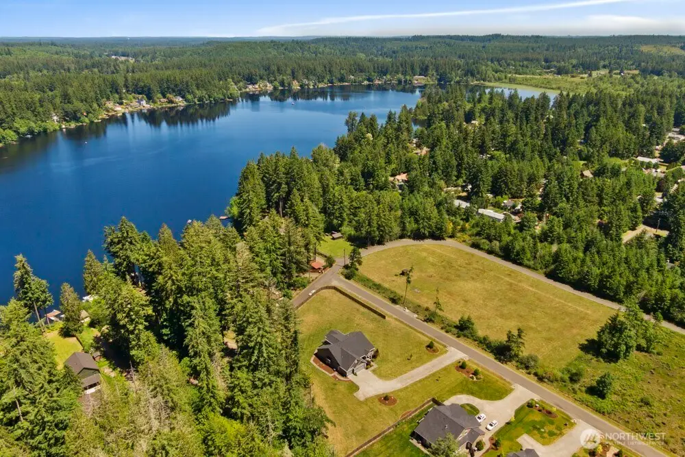 Experience idyllic living on 5 acres that stretch to the shores of Offutt Lake, where neighbors gather to fish and stories are plentiful. Located in an 8-home enclave in Tenino, this timeless home offers main-level living in a tranquil setting. Sip iced tea with guests, relax on the expansive covered patio to watch wild rabbits graze, or head indoors to enjoy a main-level primary suite with dual vanities, a full tile shower, soaking tub, and dual closets. When hungry, grab a bite from a stunning kitchen where daily tasks are never a chore. Office, living spaces, and 2 additional bedrooms on the main. Upstairs a loft, full bathroom, and 4th bedroom or bonus room add capacity for life’s daily pleasures. This home is a lifestyle all its own.