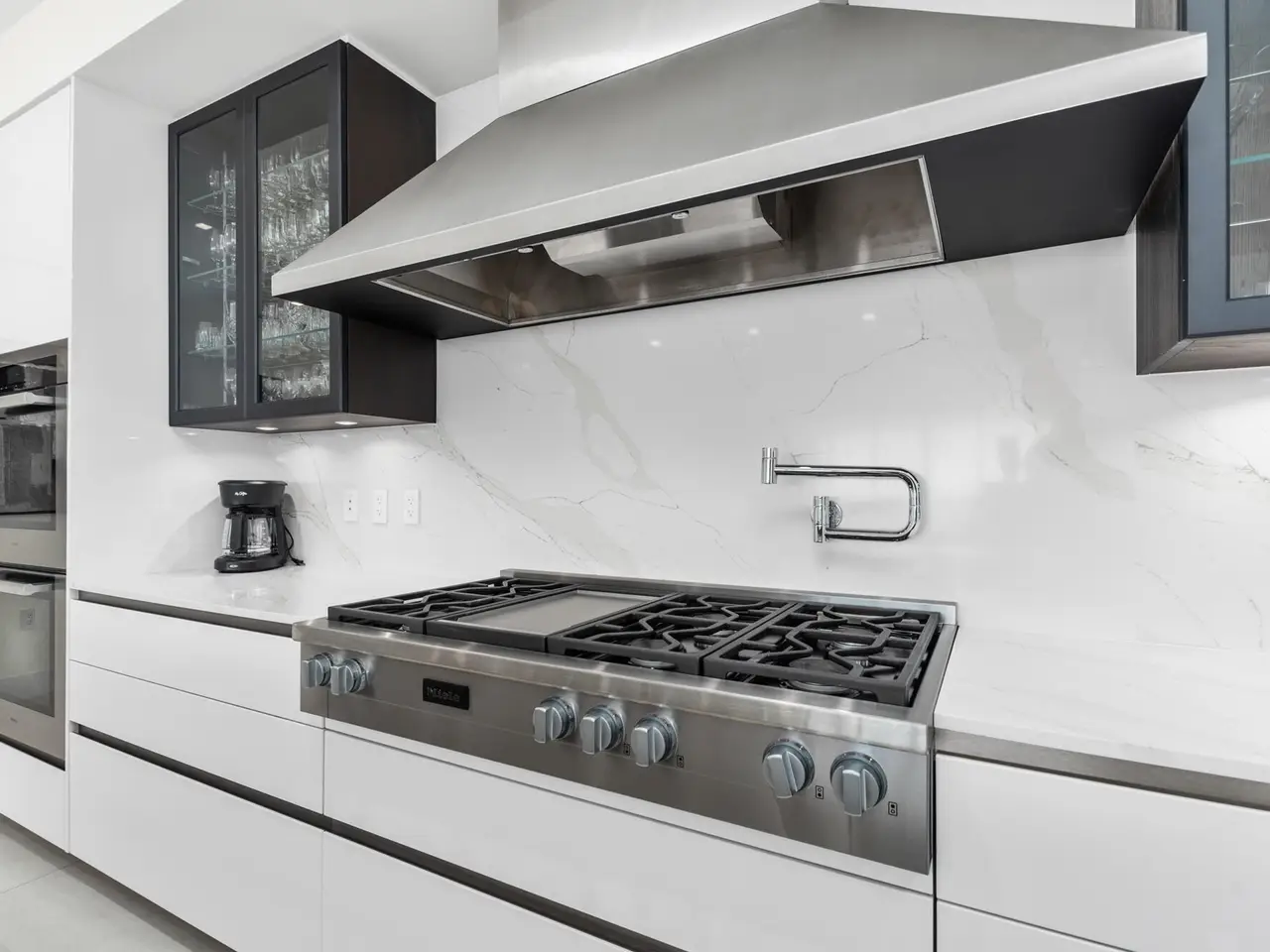 • Professional-grade stainless steel appliances and ventilation hood