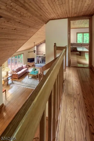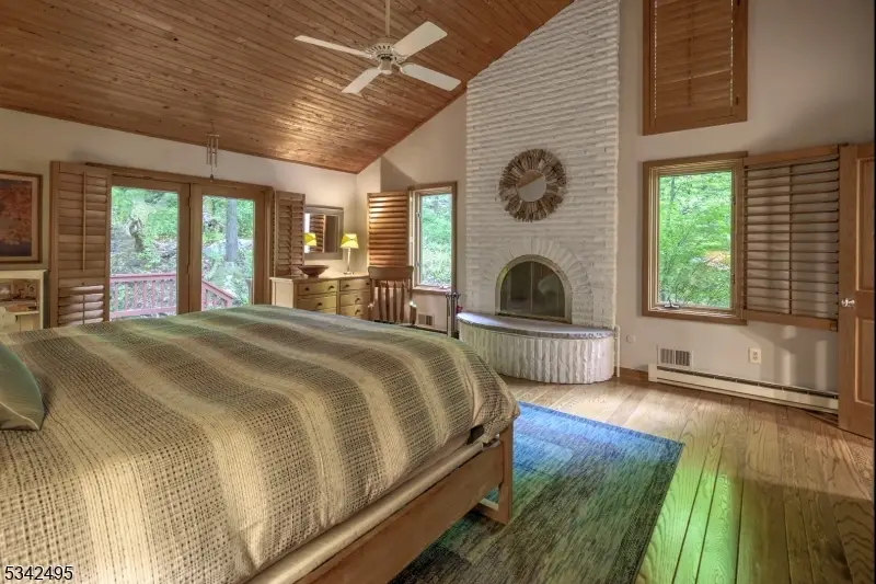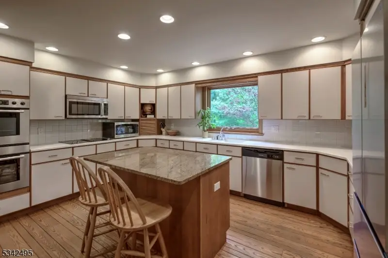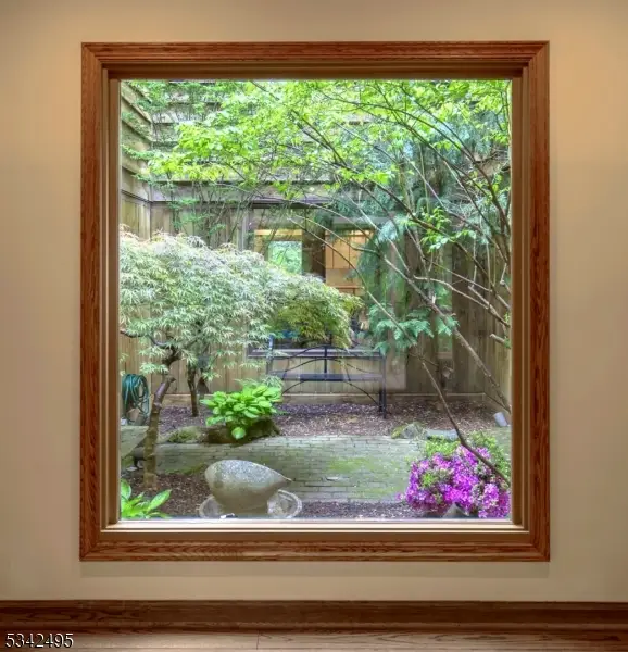 Unique custom-built Contemporary Residence w/modernist viewpoint set on 3 + private, wooded acs, surrounded by mature tree lines. Approx- 4,000 sq ft of stylish living space w/4 bedrms and 4.5 baths, W-O low lvl and 2 car built-in garage. Tranquil cul-de-sac w/striking mountain views, resort-style heated gunite pool w/sep circular spa, paver walkways and several intimate patios. This unique property is characterized by lush landscapes, (2000 built) 2-story artist's studio/home office w/built-in wall unit, hardwd flrs, marble-tiled powder rm w/low level providing storage rm, office, intimate patio,+ 2 car attached garage. Fine craftsmanship highlight open 12-rm flr plan. Unique design element is a serene Japanese Zen Garden tucked into interior courtyard, showcased by large windows thru-out home. Amenities incl window walls, wide plank hardwd flrs, soaring tongue-in-groove wd panel ceilings, 2 fireplaces and wood stove. Remodeled LR w/wet bar steps up to DR, Great Rm anchored by stone, wood burning FRPLC, tree top deck overlooks pool area and mountain views. Chef's kitch w/granite top center isle, top grade s/s appliances and 2 story breakfast area. 2-story first floor primary bedrm w/ flr to ceil stone, gas-log frplc, and en-suite bath. A bedrm/office, full bath, 3rd bedrm complete 1st lvl. Spiral staircase opens to remodel 2nd bedrm suite w/spa bath and entertainment rm. Walk-out, daylight low lvl opens to pool area, rec rm w/wd burning stove and wet bar, steam spa bath w/exercise area.