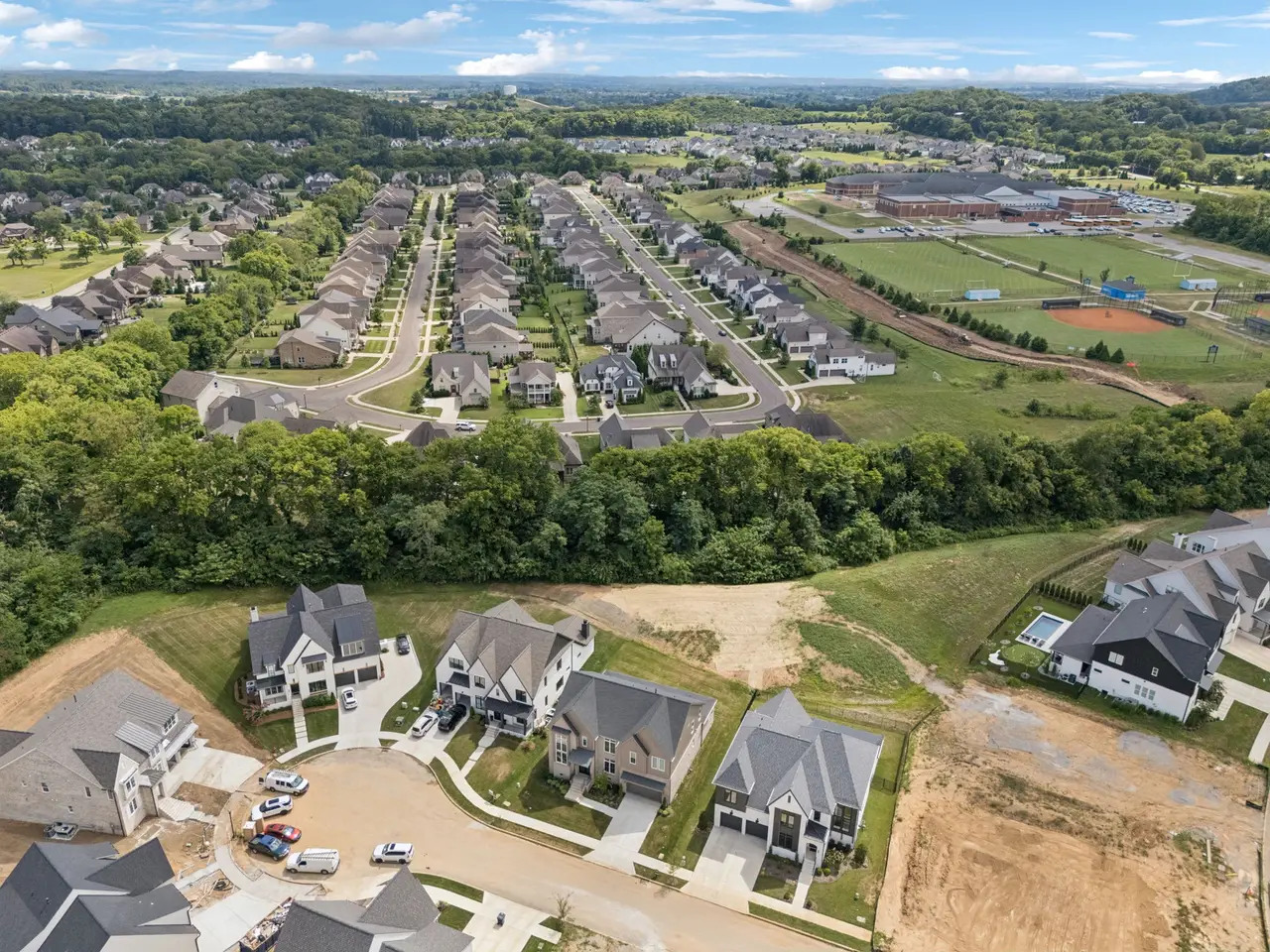 Welcome to this breathtaking masterpiece built by Hidden Valley Homes, with exceptional craftsmanship, thoughtful design, and luxurious finishes throughout. From the moment you arrive, the brick exterior, sleek metal roof accents, and carefully selected trim details set the tone for the quality found inside. Step through the front door into a light-filled two-story foyer, where hardwood flooring flows throughout the main level, guiding you into a stunning open-concept living space that seamlessly connects the dining area, living room, and chef's kitchen. The living room is a showstopper with its coffered ceiling, gas fireplace with a brick surround, and a natural wood mantle--a perfect blend of warmth and sophistication. The kitchen is equally impressive, offering ceiling-height cabinetry, a spacious center island, built-in double ovens, gas cooktop, under-cabinet microwave, and a pantry with open shelving. Tucked just off the foyer is a private office or creative room with French doors--ideal for working from home or inspiring productivity. A drop zone conveniently located off the spacious 2-car garage adds everyday functionality. The main-level primary retreat offers elevated design with a tray ceiling, custom accent wall, and a spa-like en suite featuring double vanities, a freestanding soaking tub, a floor-to-ceiling tiled shower, and a huge walk-in closet that connects directly to the laundry room for added convenience. Upstairs, a large bonus room with wainscoting sets the stage for casual living or entertaining, complete with a sleek, modern wet bar. 4 additional bedrooms, each with accent walls, walk-in closets, and 3 full bathrooms, complete the second floor. Step outside to a covered back porch that opens to a spacious, level backyard--perfect for outdoor entertaining or quiet evenings at home. This is a rare opportunity to own a move-in-ready home that backs up to Thompson's Station Elementary and Middle School and is just minutes from I-65 and I-840.