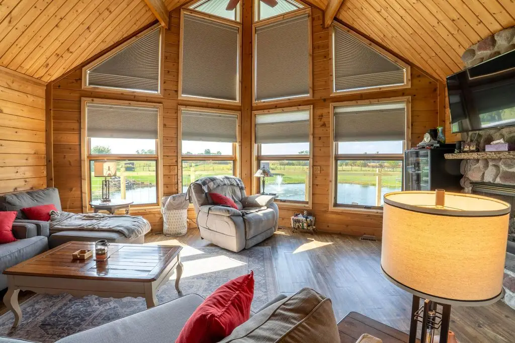 OVER 11 ACRES! New siding and roof, 2025! New windows and doors, 2024! Remodeled gorgeous kitchen 2023! New AC 2022! Whole house generator! If you want peace and quiet, country living at it's finest but still close to everything, a spread of over 11 acres of beautiful land (most can get UAV tax credit) with a gorgeous 3140 sq. ft. A-frame type Cape Cod with cedar ceilings, this home is for you! Barns (one is 84 x 64 with 200 amp service), sheds, outbuildings, beehives, waterfalls, huge pond, and fences also make up this two parcel property where you can raise lots of farm animals if desired! Beautiful Fish Ohio stocked pond with automatic fish feeder, and a stunning rock waterfall! There is also 4 acres of underground dog fence for 3 dog collars if needed! HUGE owner suite bedroom with skylights, large bathroom with both claw type tub and a separate shower and even double sinks, and access to a back deck make for a true dream owner main bedroom! There is also a gazebo by an old pool deck area that just needs you to insert a new pool in that spot if desired, and could also be easily heated by an outside wood boiler! A loft area off the living room could also be easily made into a 4th bedroom or could serve as a den or office space! Lower level has wall of windows, too, and has two bedrooms, a nice sized family room with a wet bar, a recreation area (pool table stays), full bath, and walk-out to back yard areas. Chicken coop, beehives, firepit area, walk in cooler 10x20 in barn and much, much more! Plenty of room to make your own personal retreat of any kind! This is a rare find, so call today for a showing!