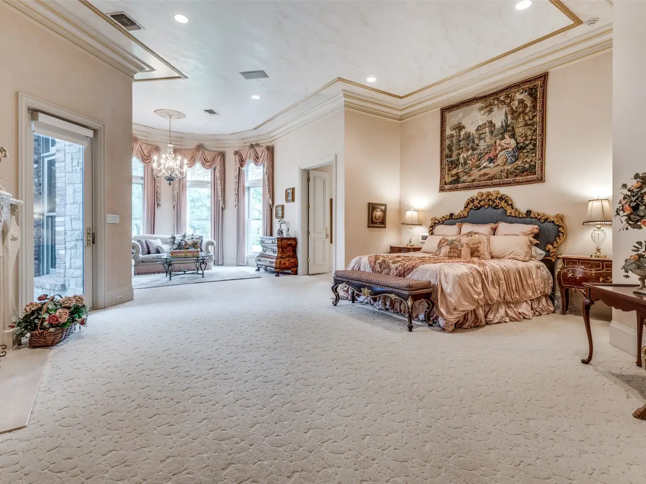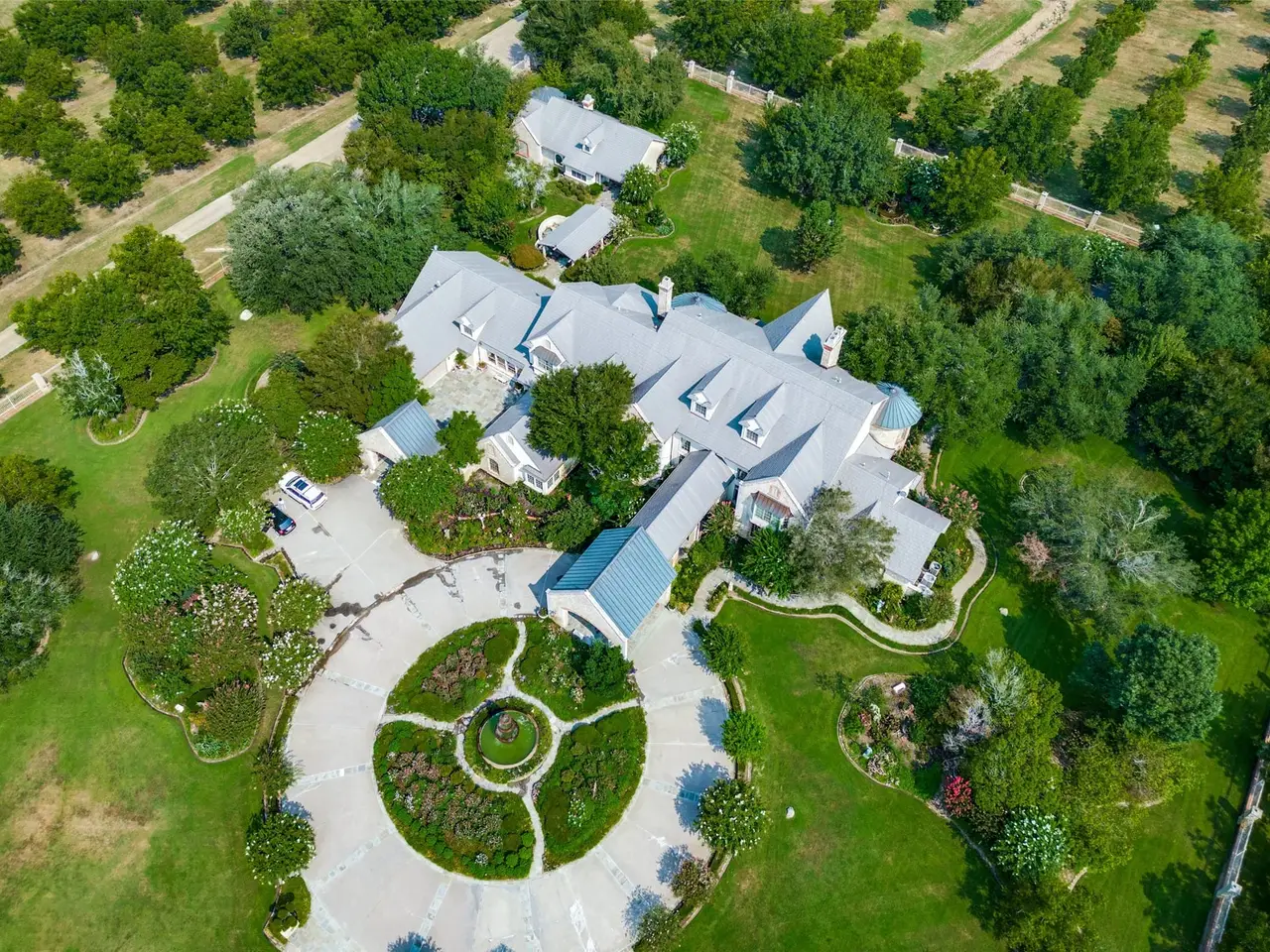 Discover Villa Maria Ranch, a luxurious French-style estate on 681 acres. Surrounded by a pecan plantation, this meticulously designed home is the epitome of elegance and grandeur. The moment you enter the two-story foyer with its sweeping double staircase you will be captivated by the attention to detail and craftsmanship. Flanked by the library w floor-to-ceiling rich wood bookcases and the elegant dining room perfect for hosting formal dinners. The open kitchen is designed for both casual dining and large events. A grand first floor primary suite with opulent bathroom is a spa like retreat and the enormous closet is a dream. The 2nd floor has a add primary suite with fireplace and beautiful sitting area. Four additional bedrooms, a home theater, billiards room, an elevator and an indoor swimming pool with a spa. A covered dining pavilion leads to a charming Country French guest house. This estate offers the perfect blend of comfort and sophistication. The home is being sold fully furnished.