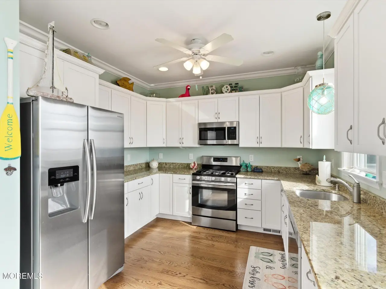 Experience coastal luxury in this beach-chic home built in 2016, located in the highly sought-after Green Island waterfront community. This spectacular Bayfront property offers breathtaking views that you'll fall in love with from both inside and out. The bright and inviting interior features sun-filled rooms, gleaming hardwood floors, and a cozy gas fireplace. The gourmet kitchen is fully equipped with granite countertops and quality finishes, while each of the three pristine bathrooms includes granite-topped vanities. Andersen 400 Series windows and motorized shades enhance both comfort and style. Step out onto the front balcony to enjoy tranquil bay breezes or relax on the rear deck just off the kitchen, perfect for watching sunrises and sunsets. The large pier is complete with two jetski lifts, a boat lift, water, and electric, offering everything you need for waterfront living at its best. Enjoy two nearby beaches and parks, plus an unbeatable location close to shopping, restaurants, and all the Shore has to offer. This vibrant Bayfront home is a must see come experience the lifestyle you deserve!