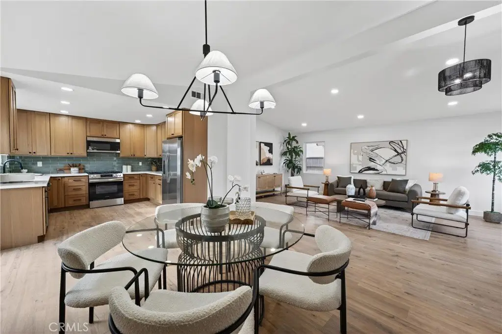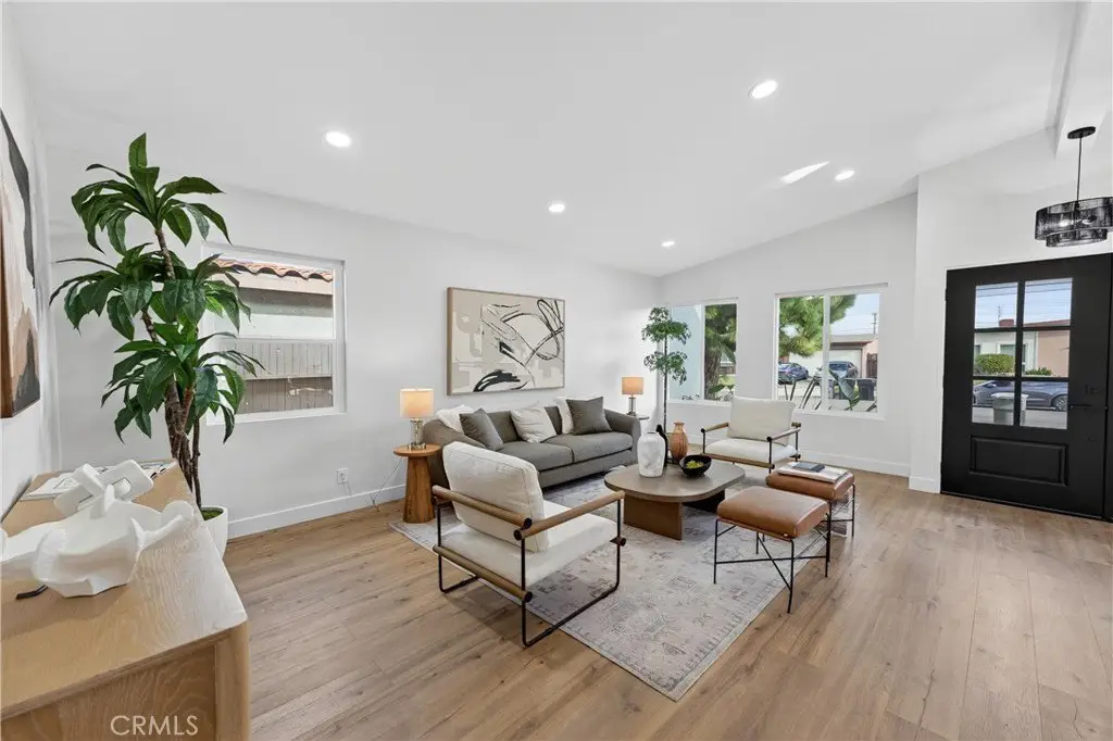 Tucked away on a quiet street in the heart of West Torrance, this fully reimagined Mid-Century Modern home blends timeless design with upscale contemporary finishes to create a sophisticated family retreat. Inside, the open-concept layout is bathed in natural light, highlighted by vaulted ceilings and clean architectural lines. Wide-plank luxury wood flooring flows throughout, leading to the chef’s kitchen with quartz countertops, custom cabinetry, an oversized sink, and brand-new stainless steel appliances. Both bathrooms exude spa-like elegance, featuring modern fixtures and designer touches. Down the hall, four spacious bedrooms provide comfort and versatility, including a serene primary suite with a dual-sink vanity and oversized frameless shower. Step outside to your private backyard oasis—complete with a grassy lawn, mature fruit trees, and a patio ideal for al fresco dining and entertaining. Perfectly positioned, this home is just a short walk to Victor Elementary and West Torrance High, two blocks from Victor Park and Henderson Library, and just over a mile to Redondo Pier and the beach. In one of Torrance’s most desirable neighborhoods, this home truly offers it all—style, function, and location.