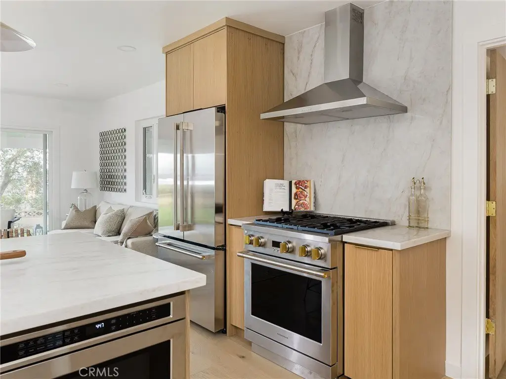 Perched above the street on a sprawling 21,500 sq. ft. lot, this fully remodeled single-level Hollywood Riviera home offers privacy, tranquility, and beautiful city lights & ocean views. A long private driveway leads to the residence, where you’ll enjoy peace of mind with no through traffic and exclusive access to the eucalyptus-lined Palos Verdes bridle trail. This 4-bedroom, 3.5-bath home has been thoughtfully reimagined with modern design and convenience. Three bedrooms feature en-suite baths, including two luxurious primary suites—each with its own stunning perspective, so you can choose which view to wake up to. The entertainer’s kitchen showcases a dramatic waterfall quartz island, custom cabinetry and state-of-the-art Monogram appliances, all opening seamlessly to the living and dining spaces. White oak engineered floors run throughout, creating warmth and elegance at every turn. With over 2,550 sq. ft. of expansive, single-level living, the home’s interiors and outdoor spaces are designed to maximize the views and invite indoor-outdoor living while entertaining guests. Though tucked away in its own serene world, the property is just minutes from Riviera Elementary, Rocketship Park, and the boutiques and dining of Riviera Village. Come experience the rare blend of seclusion, sophistication, and sweeping views that make this one-of-a-kind Hollywood Riviera property so special.