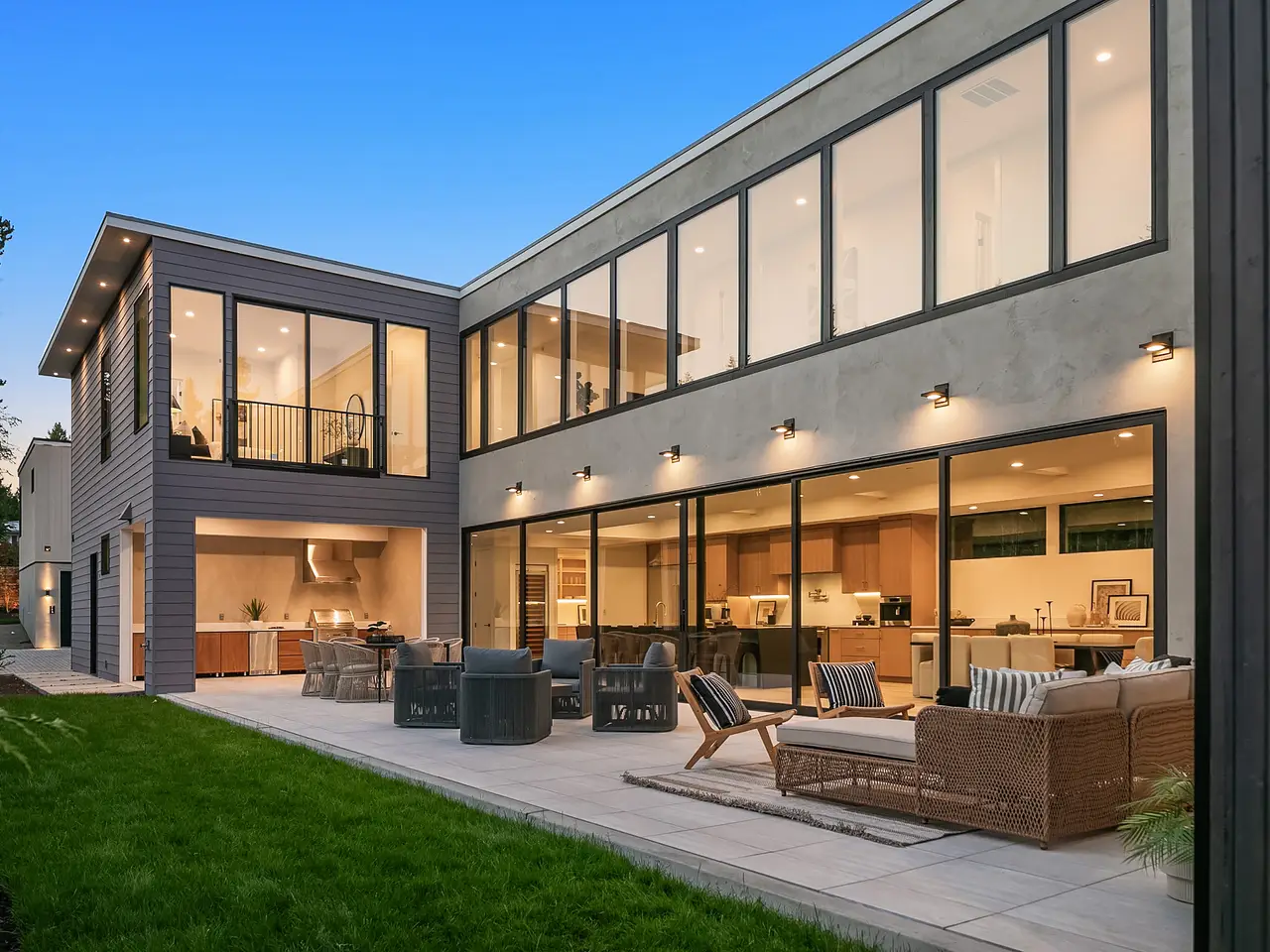 Introducing an extraordinary new build showcasing cutting-edge technology & sophisticated design. Blending luxury & innovation, this architectural masterpiece features 6 beds, bonus room & office + 935sf 1 bedroom ADU. Sited on a private lot on one of Medina's favorite streets w gated driveway. Designed for energy efficiency and convenience with 100% Electric functionality, elevator, solar, dual zero-emission fireplaces, Control4 home automation, built-in speakers, security and surveillance. Gourmet kitchen outfitted with an array of Wolf and SubZero appliances + stunning 18-ft island. Dramatic 40-ft motorized multi-slide door seamlessly connects to private courtyard. 5 beds on upper level including 2 luxurious primary suites & spa baths.