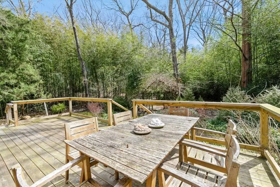 Privacy privacy privacy! Set on a quiet, wooded full-acre lot just two miles from East Hampton Village, this charming John Conner-built saltbox offers privacy and potential. The 3-bed, 2-bath home features rustic touches like exposed beams, a European wood-burning stove, along with a brand new kitchen with quartz countertops and updated appliances. Large bay windows and glass doors let in plenty of natural light, and a south-facing deck provides a private outdoor space to relax. The grounds feature a variety of beautiful specimen trees, including Hinoki Cypress, European Beech, Deodar Cedar, and Japanese Maple. With 25% of the lot (nearly 20,000 sq. ft.) still available to clear, there's room to add a pool, pool house, tennis/pickleball court, or expand the home. Surrounded by high-end properties, this is a rare opportunity to create your East Hampton dream.