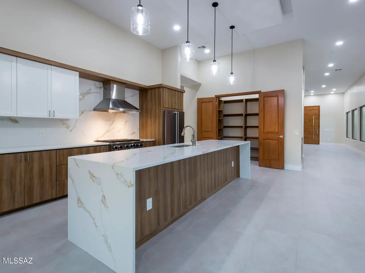 • Chef's kitchen with quartz waterfall counters