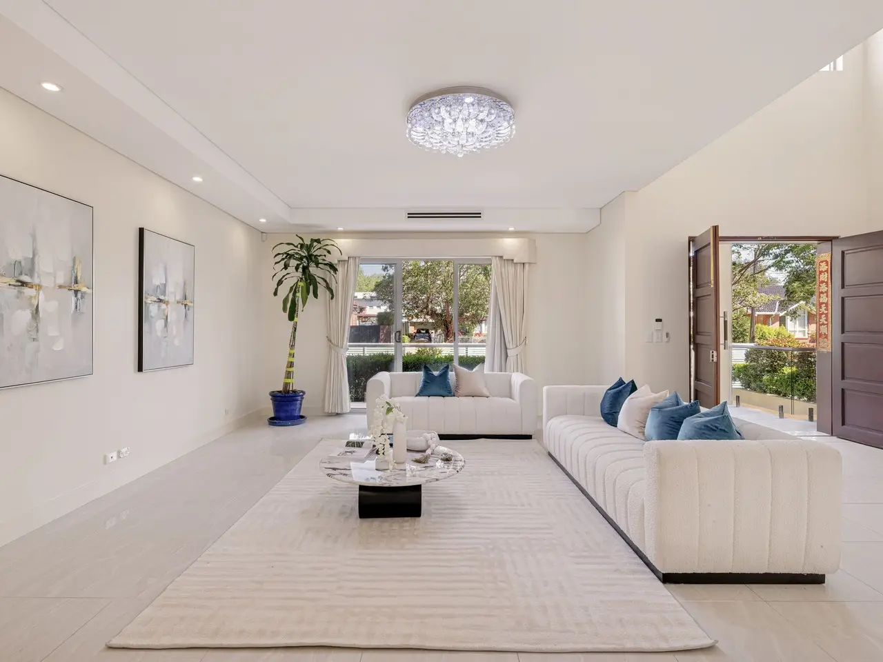 Set on a leafy, tree-lined street just footsteps from Edwards Park, this immaculate three-story residence exudes timeless appeal, space and exceptional adaptability. Framed by manicured hedges and a private north-to-rear orientation, it features multiple living zones and seven generous bedrooms, including three master suites. Open interiors flow seamlessly to an alfresco pavilion, ideal for entertaining, while a modern kitchen and dining space anchor the home. The basement garage comfortably accommodates four vehicles, and features include polished tiles, ducted air-conditioning and grand double-height entry doors. With space to utilise as a theatre, games room or additional retreat, this landmark home is set within a prized Strathfield location. - Custom built double brick and concrete construction with an exceptional basement level - Elegant collection of lounge and dining spaces flow effortlessly across three levels - Versatile space for daily living and entertaining, utilise a theatre, study and retreat - Outdoor zones include a private alfresco pavilion, welcoming a north-to-rear aspect - Landscaped grounds and manicured hedges frame the yard, creating a leafy retreat - Contemporary kitchen with stainless steel appliances, a dishwasher and yard views - Seven well-appointed bedrooms including three master suites with private ensuites - Modern bathrooms showcase full-height tiling, dual basins and frameless showers - Ducted air-conditioning, downlights, polished tiles and a striking double-height entry - Excellent potential for multi-generational living, home-based offices or family estate - Basement accommodates four vehicles with internal access, off-street parking - Situated within easy reach of schools, transport links and Strathfield's vibrant dining