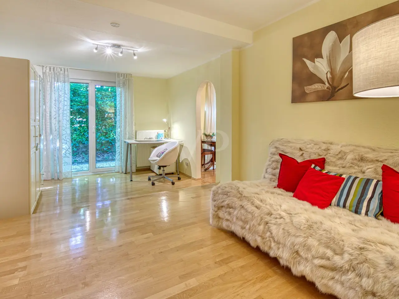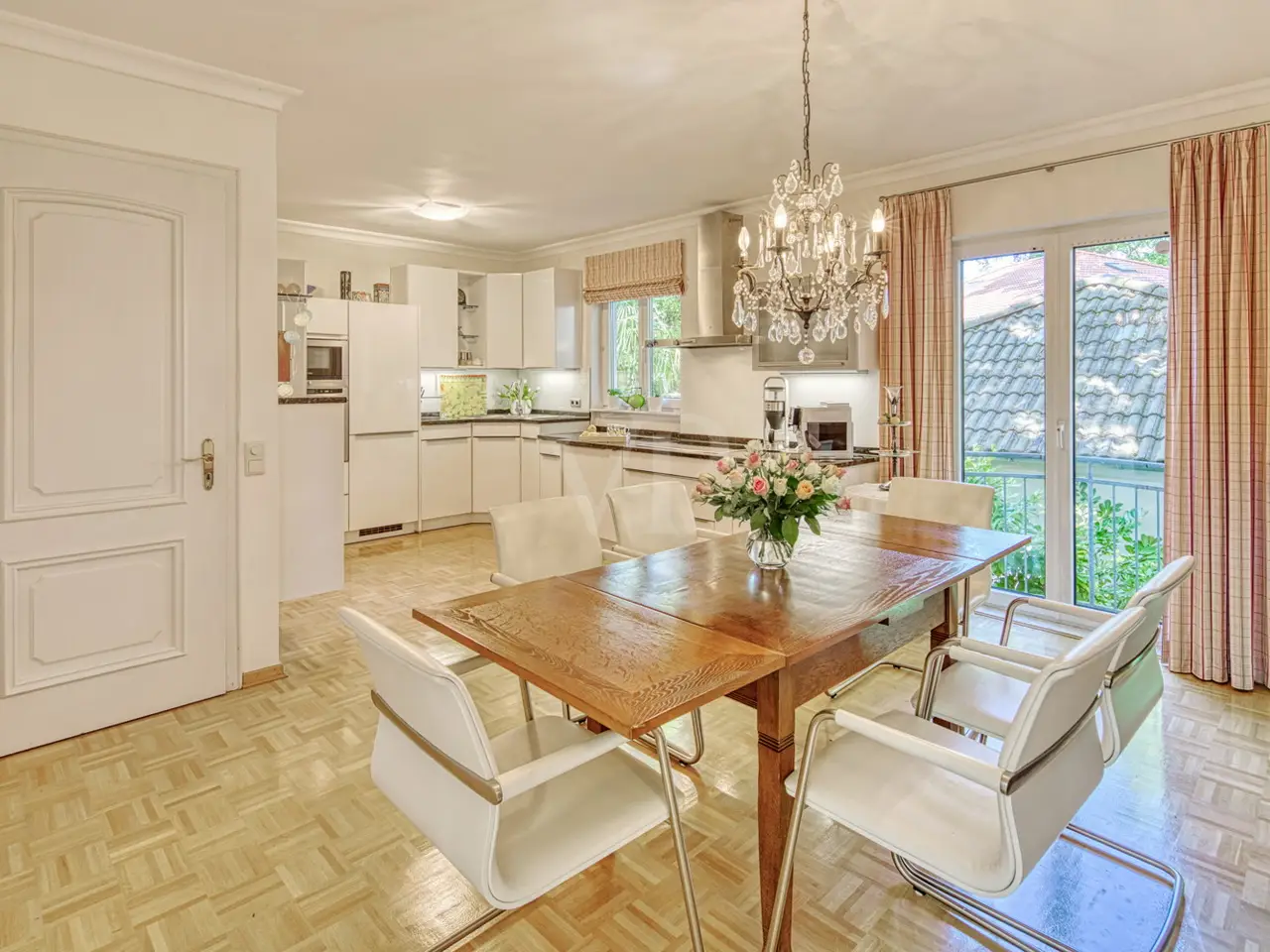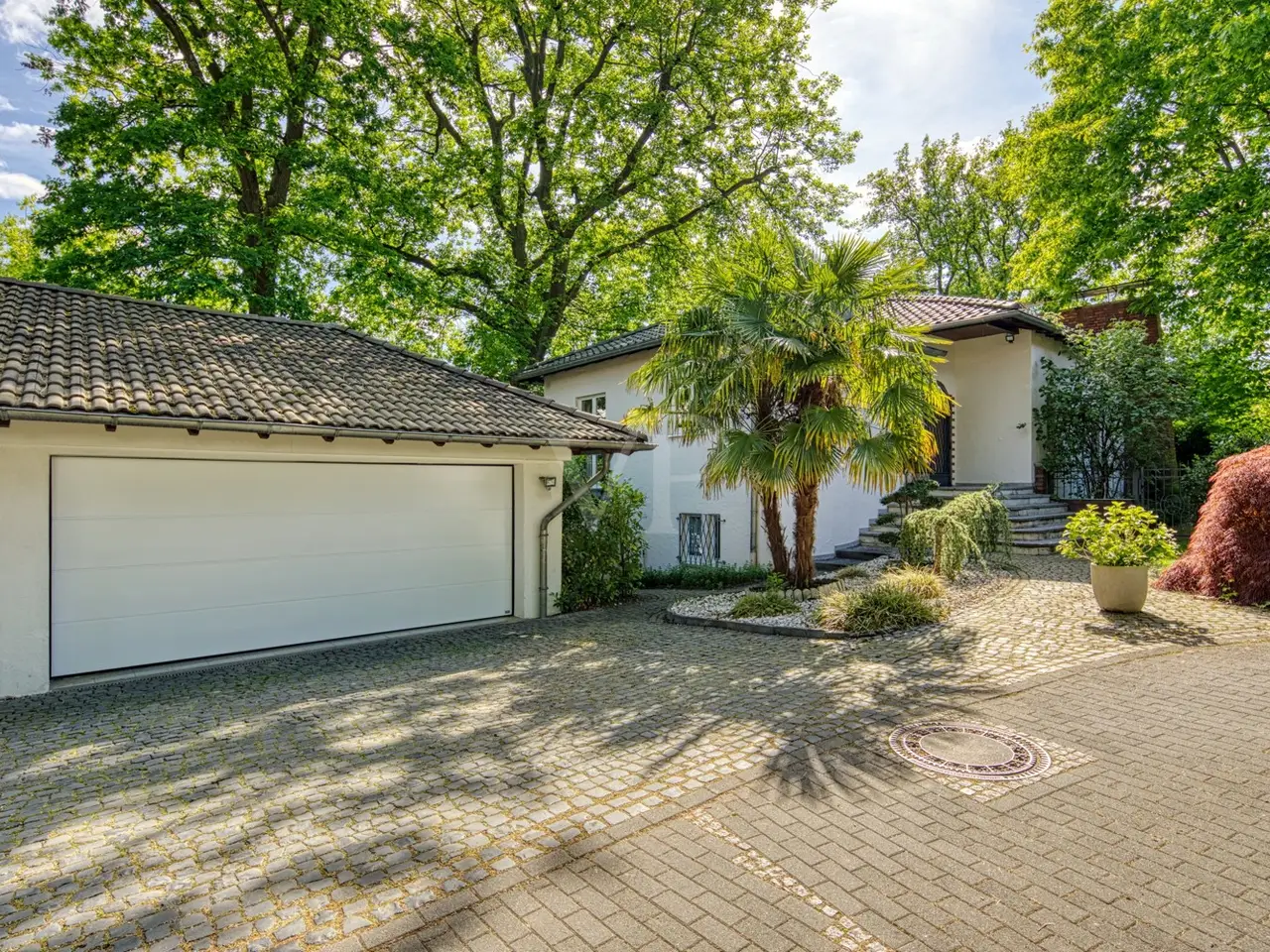 They say that a picture is worth a thousand words - in this case it could hardly be more apt. In an exclusive neighborhood of Bonn-Schweinheim, at the quiet end of a discreet private road and directly adjacent to the Kottenforst nature reserve, an impressive retreat awaits you, combining stylish elegance, scenic security and maximum privacy at the highest level. With a generous living space of around 323 m² and a beautifully landscaped plot of approx. 1,227 m², this property combines living close to nature with exclusive living comfort. Surrounded by mature trees and virtually secluded, you can enjoy the highest quality of life in one of Bad Godesberg's most sought-after residential areas. Since its original construction in 1962, today's detached house with granny apartment has grown harmoniously and bears a historical signature that remains impressively alive to this day thanks to the Drachenburg monument in the garden. The exquisite architecture is reflected in every detail: floor-to-ceiling windows flood the six rooms of the main house with natural light and open up wide, peaceful views of the greenery. Mediterranean round arches set elegant accents and lend the interior a gentle, flowing dynamic. Three bathrooms reflect the high standards of comfort with their high-quality materials and meticulous furnishings. Fine Italian marble tiles in the entrance and staircase area meet equally high-quality parquet flooring in the living areas - a stylish combination that underlines the exclusive character of the house. For culinary enthusiasts, the charming dining room with elegant French semi-circular balcony and the first-class kitchen offer a perfect symbiosis of functionality and aesthetics. The outdoor area is in no way inferior to the interior: the lovingly landscaped garden nestles gently around the house and reveals a paradisiacal idyll that promises peace and relaxation. Two terraces facing south-east and south-west create a harmonious connection between the living space and the surrounding nature and invite you to enjoy the quiet splendor of the seasons over a coffee in the morning sun or a glass of wine in the evening. As soon as the days get shorter, the fireplace corner in the living area of the house becomes the atmospheric center for cozy moments. The offer is complemented by the fully furnished granny apartment of around 32 m² with a separate room and modern shower room. This opens up a wide range of possible uses - for example as a charming guest suite, cozy accommodation for an au pair or an independent living area for adult children. A spacious double garage and several parking spaces in front are available for your fleet of vehicles. If desired and required, there is also the option of establishing a gated community together with the six other villas on the private road. We look forward to presenting this unique and exclusive property to you in person.