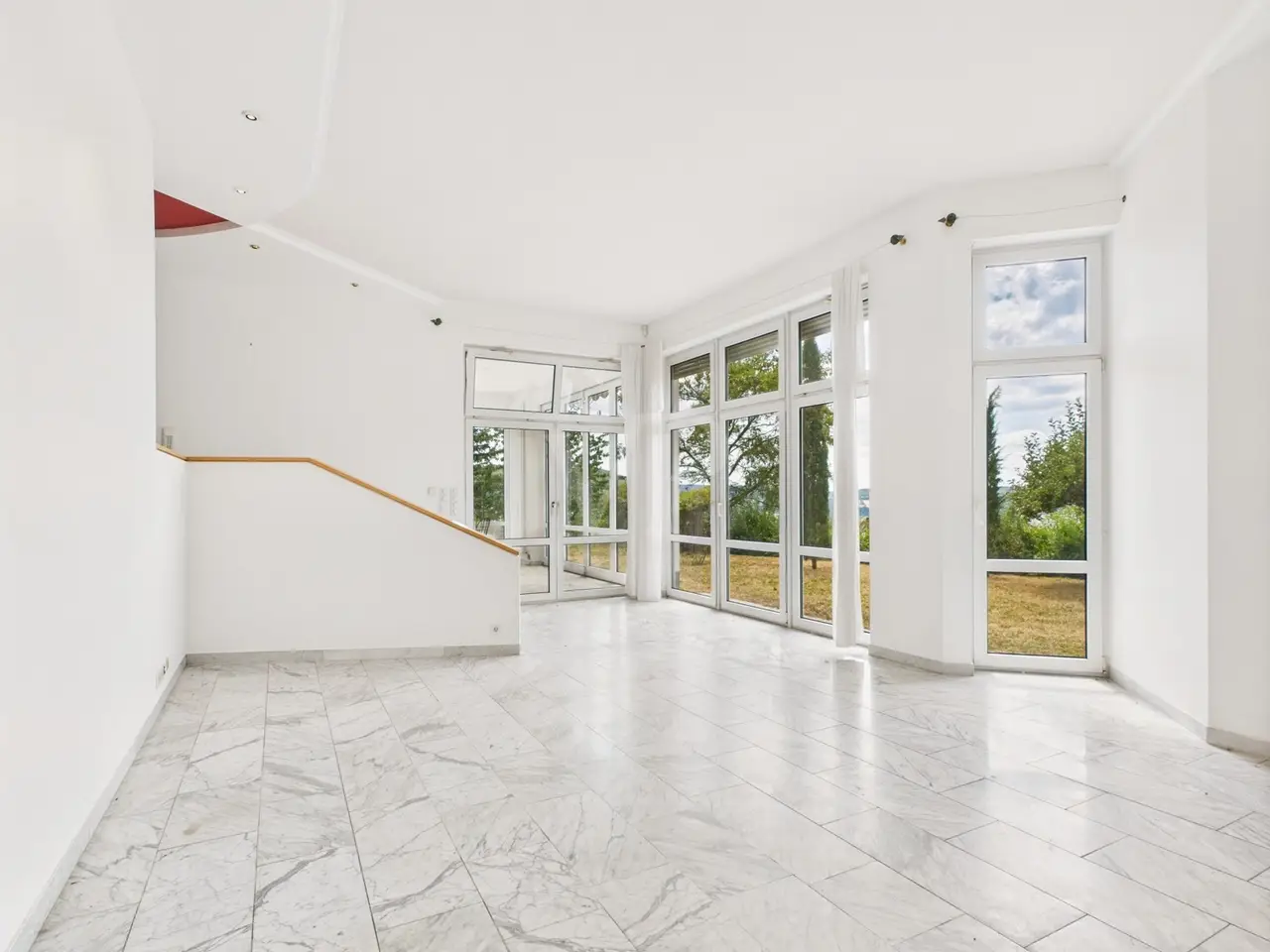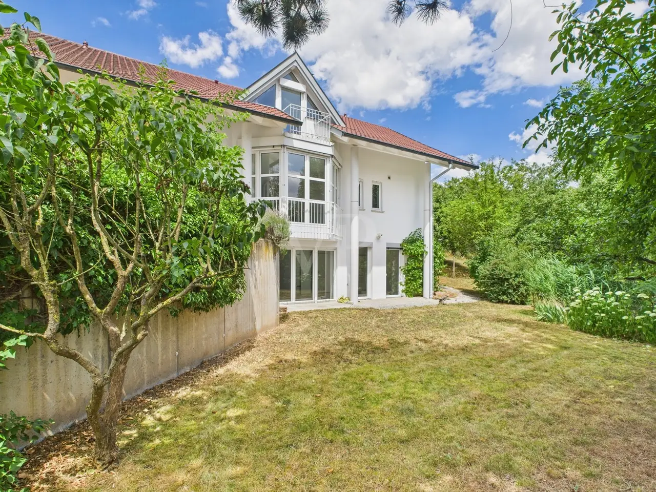 A home with a panoramic view over Bad Kissingen. A place to arrive. To breathe deeply. To put down roots. In a quiet, peripheral location with a stunning view over Bad Kissingen, this special property presents itself as an ideal home for families – with space for children, grandparents, guests, and for working from home. The house was custom-designed by an architect, lived in by the owner, and designed with a keen sense of functionality and comfort. The layout is thought through down to the last detail, combining spacious rooms with a harmonious flow. Spread over three levels, this house unfolds full of possibilities. The heart of the home is the open-plan living and dining area with a conservatory and fireplace – perfect for evenings spent together, perhaps with a view of the sunset. The kitchen, with its adjoining cold storage room and dining area, is perfect for a lively family life. The attic features the master bedroom, three additional bedrooms or children's rooms, and two bathrooms – plenty of space for all ages. All rooms – except for the children's bathroom – have a small balcony overlooking the natural surroundings. The basement offers additional possibilities: a separate home office, a studio, a guest or grandparents' area. A fitness room with a special flooring that provides elasticity, a wine cellar, and ample storage space. Here, there's room for ideas and individual lifestyle concepts. Outside, a lovingly landscaped garden with its own pond invites you to linger – a paradise for children and an oasis of peace for adults. Particularly charming: the "apple tree parasol," grown for relaxing breaks in the shade. Several terraces offer sun or shade at any time of day – as you wish. Here, life can be enjoyed in all seasons. The offer is rounded out by a large garage with two parking spaces and ample space for bicycles, garden tools, and more. This house isn't just for living – it's made for living. We would be happy to tell you more about this exceptional property in person.