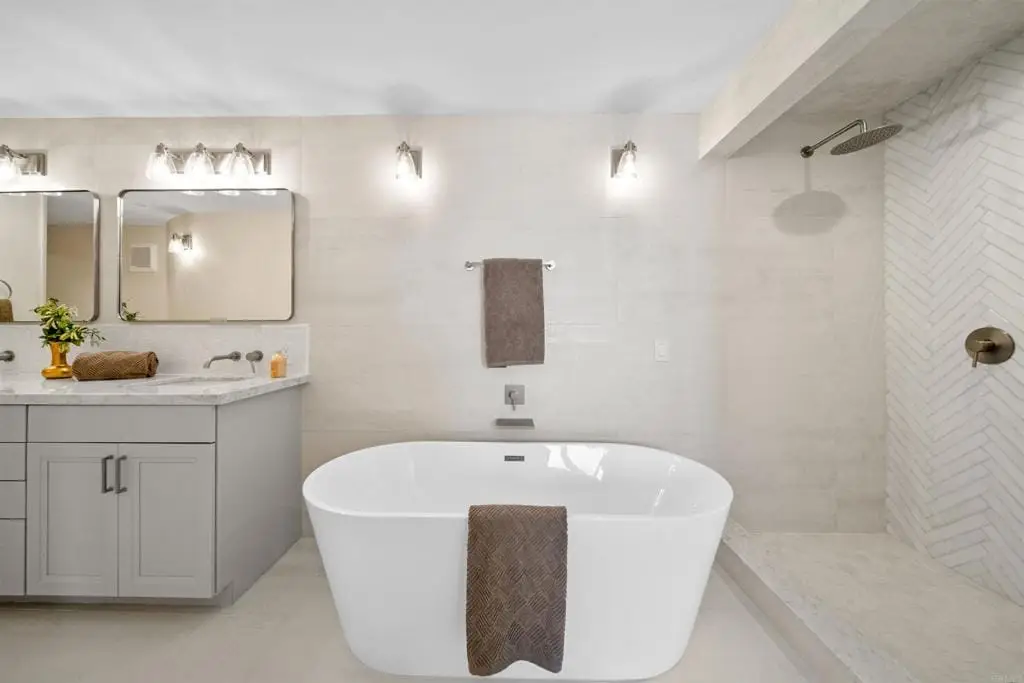 Opportunity Knocks, Fabulous New Construction Marina Vista Villas - One of three units in the building: 3,200+ square feet of luxury appointments with 3+ Bedrooms & 4 1/2 Baths, lock-off unit w/kitchenette oversized 2 car garage (with extra room for a gym), private elevator to three primary floors, designer finishes including custom tile, iron work, marble and granite countertops, multiple mini-split heating and A/C units and custom cabinetry. So many features and touches you will absolutely LOVE. Add in a PRIVATE 500sf Oceanview rooftop deck with six person spa and phenomenal walkability to beach, downtown, harbor and train station! Daily life will feel like a permanent vacation. Ocean Views and glorious sunsets.