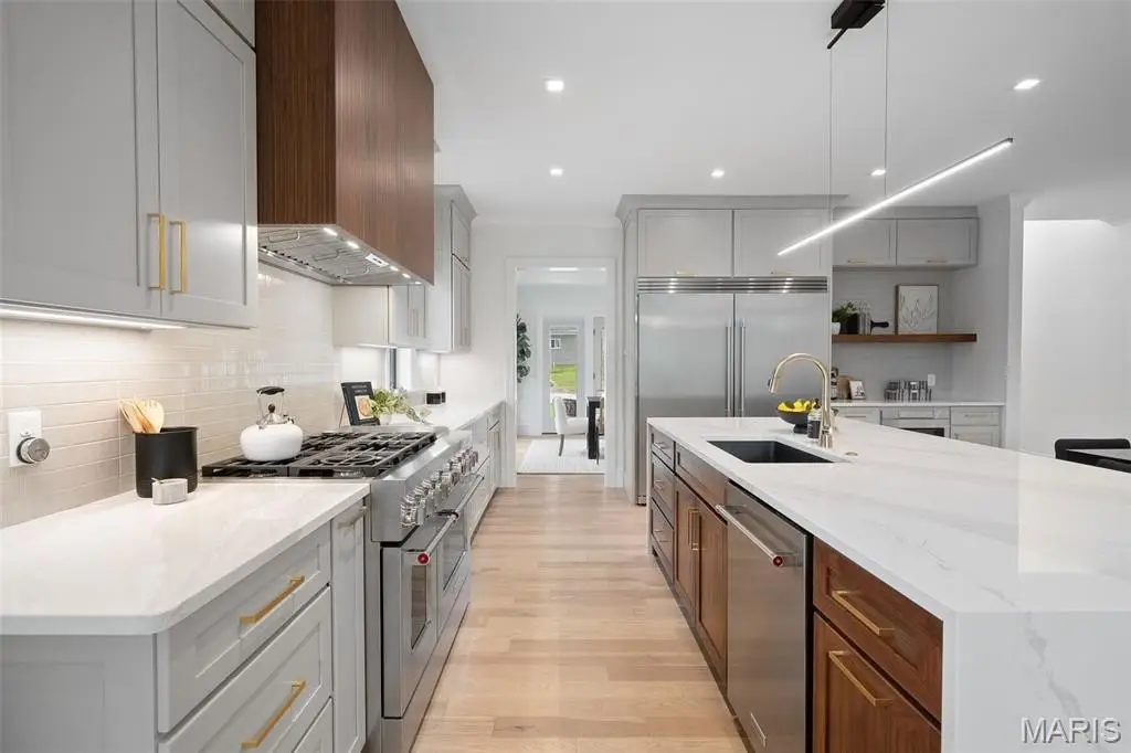 A MUST SEE! 532 South Fillmore is not your typical new build. Offering all of the space & modern conveniences you expect, it goes a step further, pushing a fresh, clean style. This 5-bedroom, 4.5-bath new build by Molner Homes offers EXCEPTIONAL craftsmanship. From sleek, clean lines to warm, refined wood finishes, thoughtful design is evident in every detail. The incredible chef’s kitchen features a large center island, quartz countertops, custom cabinetry, 6-burner gas range, & a spacious walk-in pantry. The kitchen flows seamlessly into the great room, where 12-foot ceilings, gas fireplace, & access to a large covered outdoor living area make it perfect for entertaining. The main-floor primary suite offers a private retreat w/ dual walk-in closets & a spa-like en suite bath complete w a soaking tub, walk-in shower, & dual vanities. Upstairs, bedrooms 2, 3, and 4 each have walk-in closets. One includes a private en suite, while the other two share a spacious bath. The finished lower level adds nearly 1,500 sq ft of finished living space, including a 5th bedroom, full bath, & convenient kitchenette—ideal for convenience or entertaining. Additional highlights include main-floor laundry/mudroom w/ custom built-ins, rich hardwood floors, Hardie board siding, zoned HVAC, attached 2-car garage, & huge, flat backyard perfect for a pool. Just blocks from the heart of Kirkwood including farmers market, shops, & restaurants, this home is made to impress.